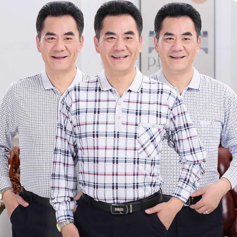 春秋必备男装长袖T恤衫男式翻领Polo衫爸爸长袖尾货批发清仓货源