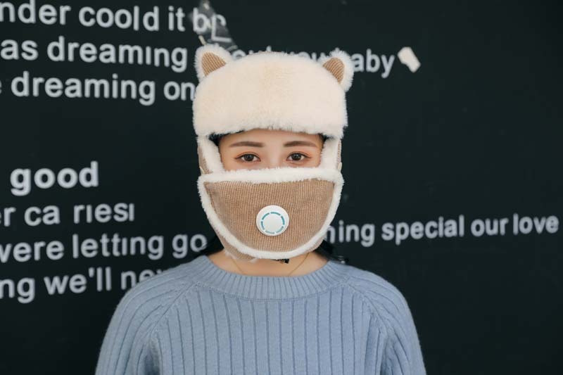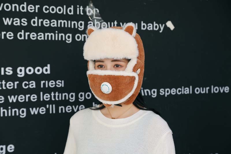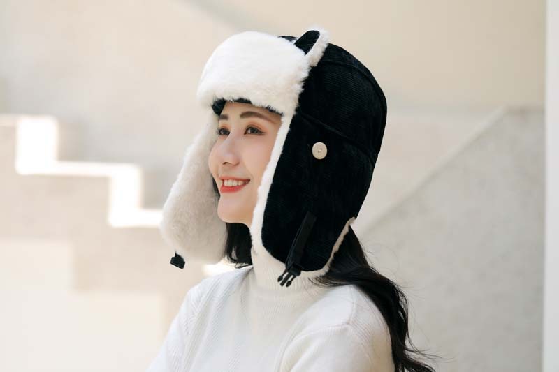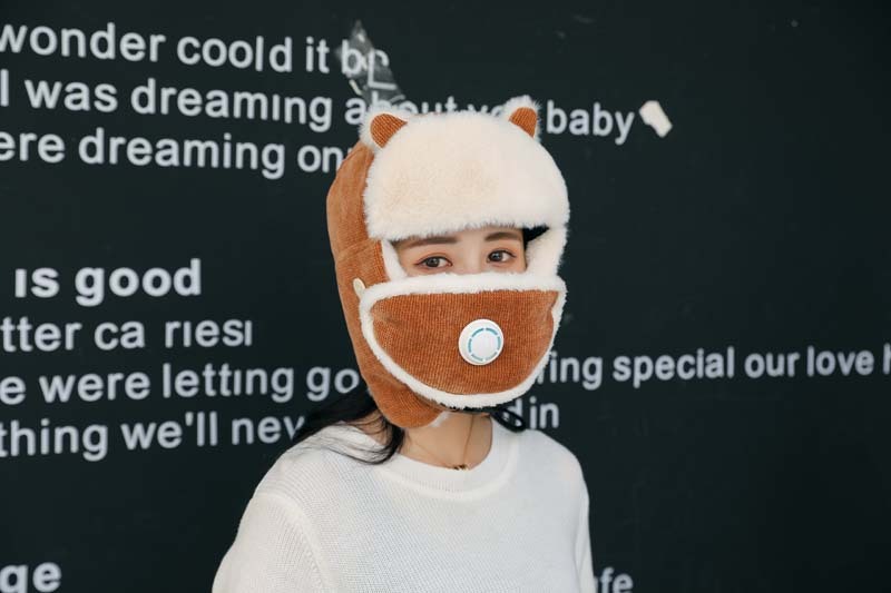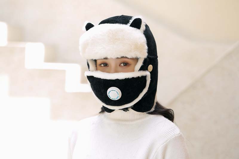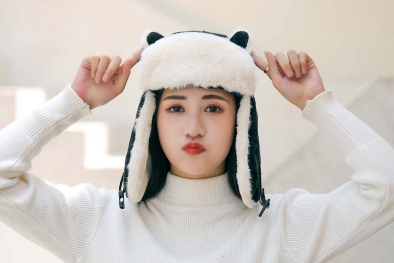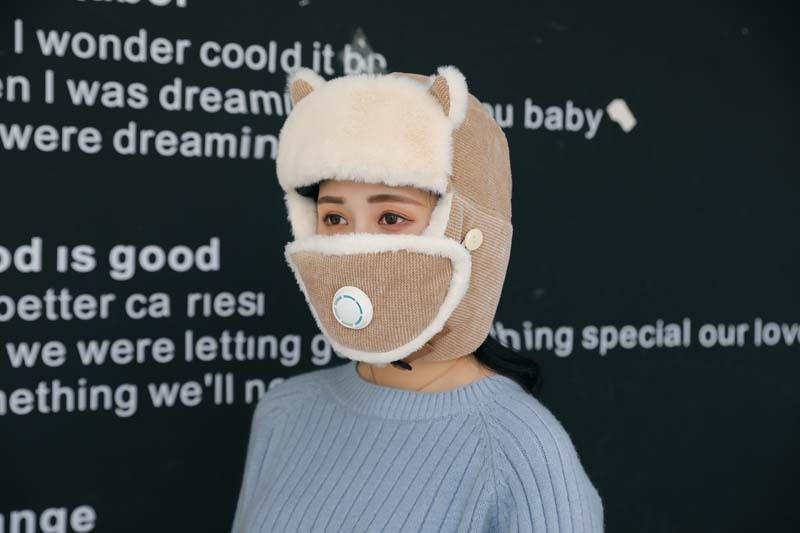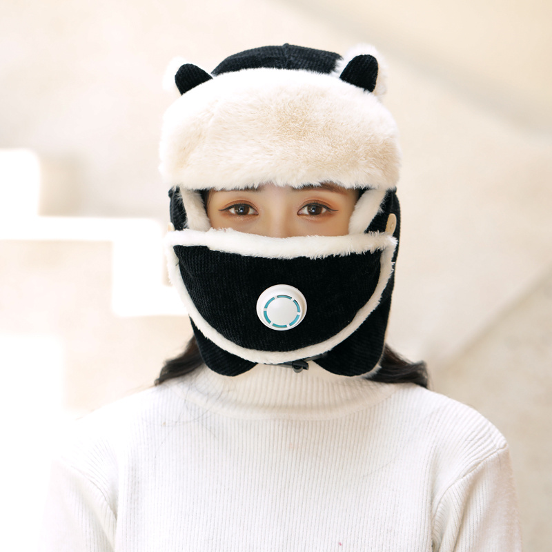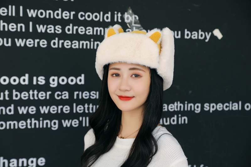 新款冬季卡通猫耳朵毛绒帽外出保暖防风护耳帽户外山骑行雷锋帽