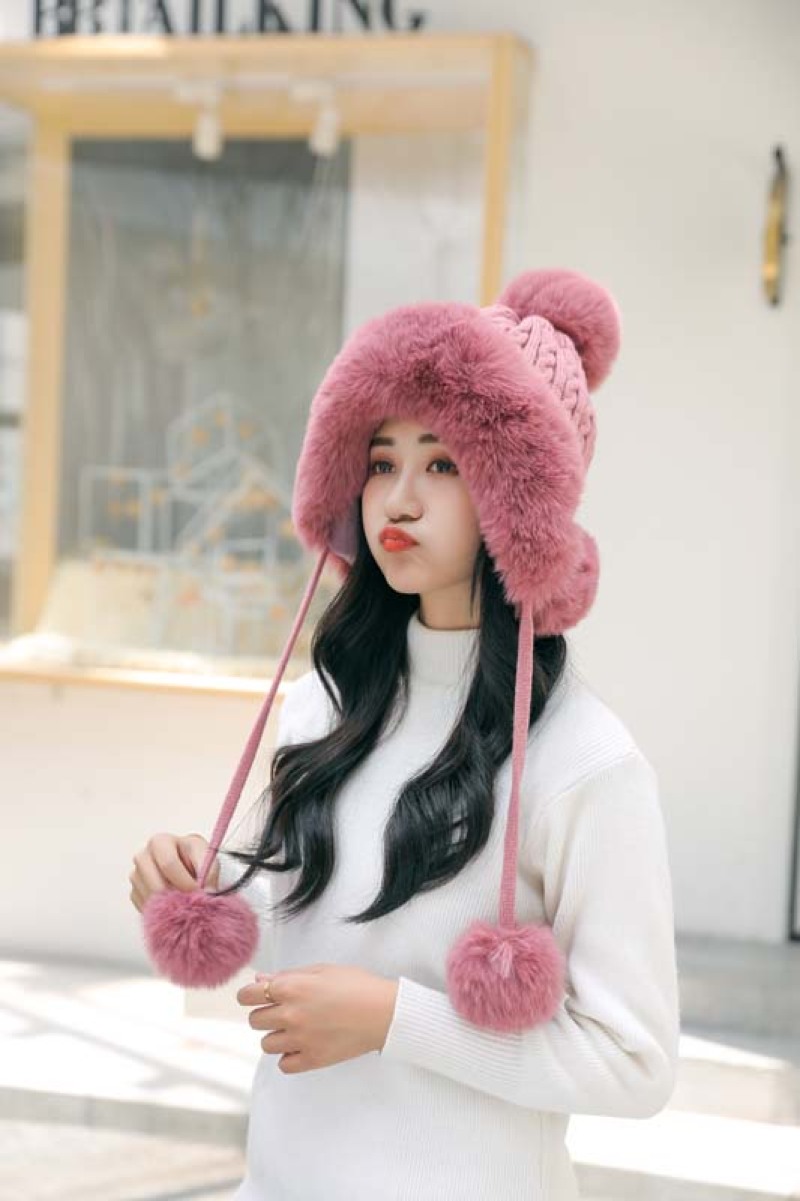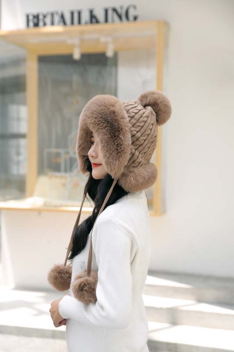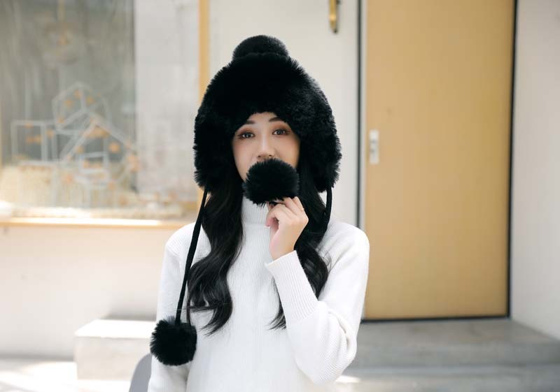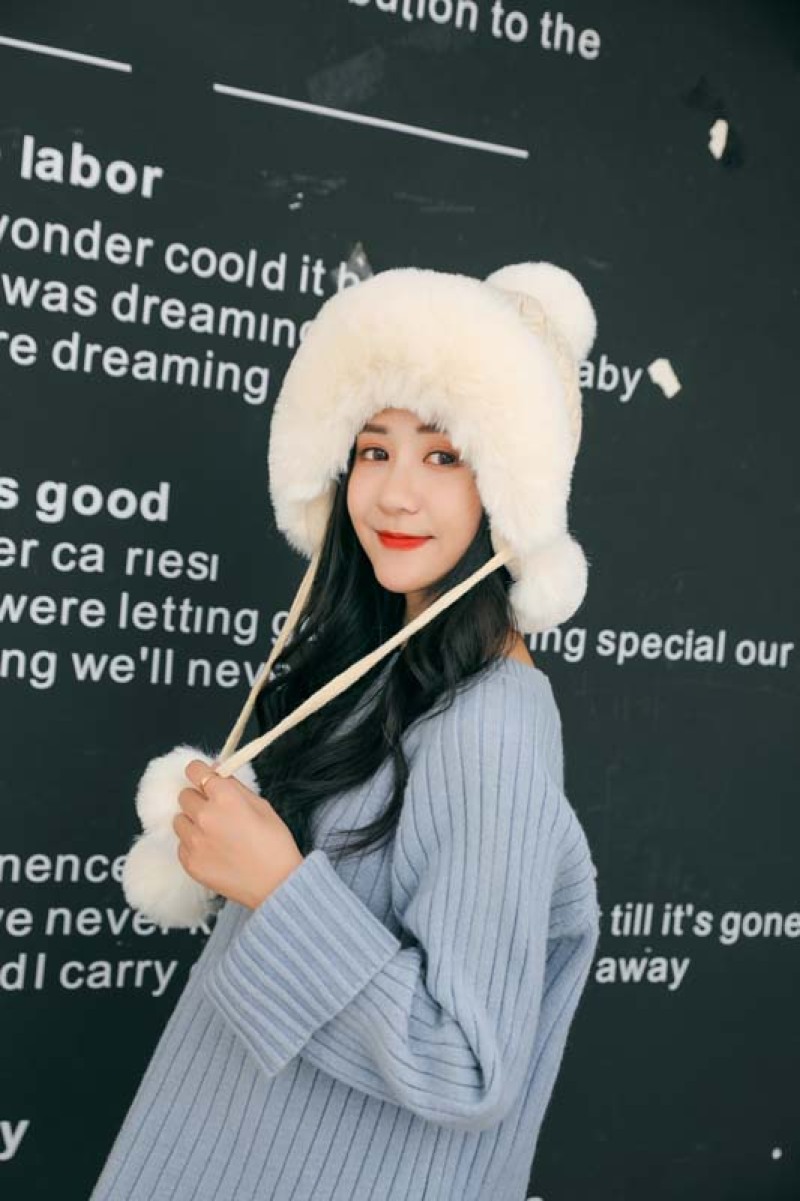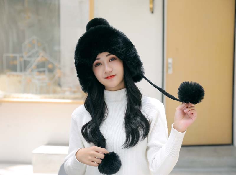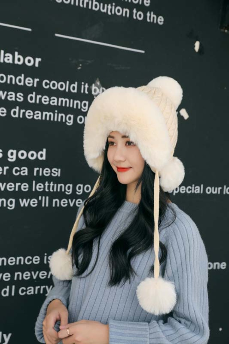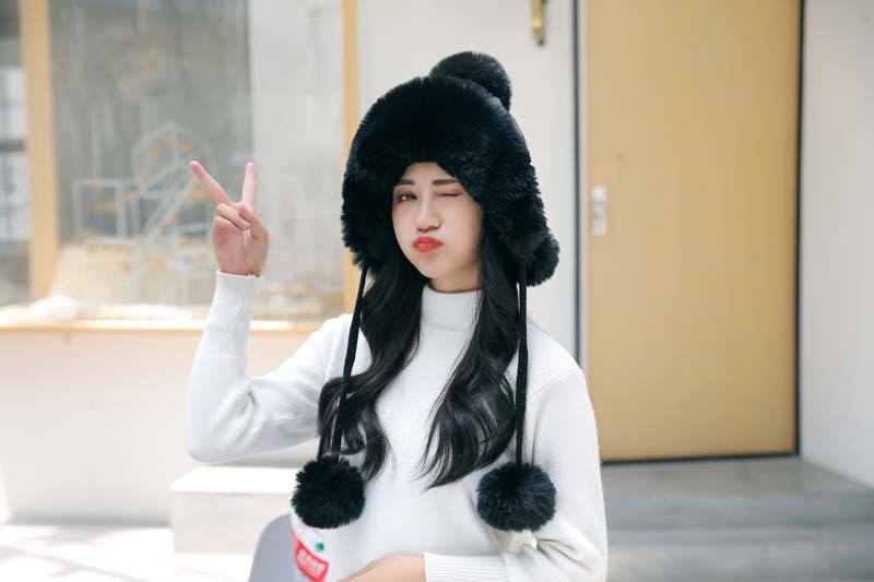 帽子毛球加绒雷锋帽毛线帽韩版甜美可爱女士户外保暖秋冬针织帽