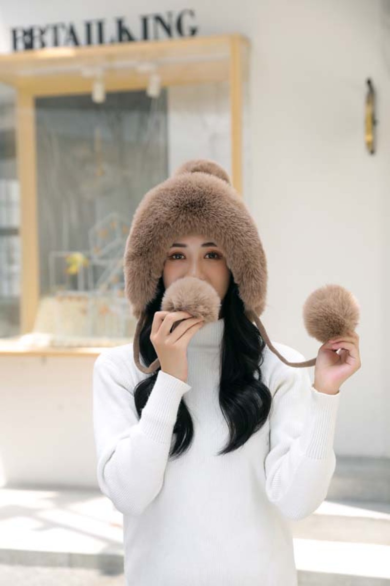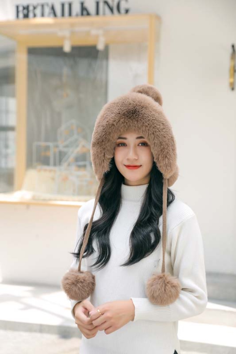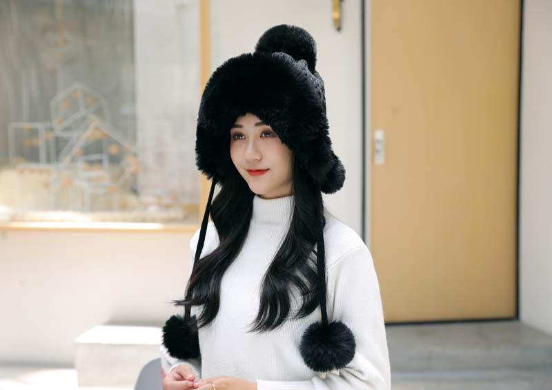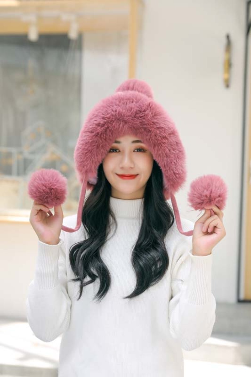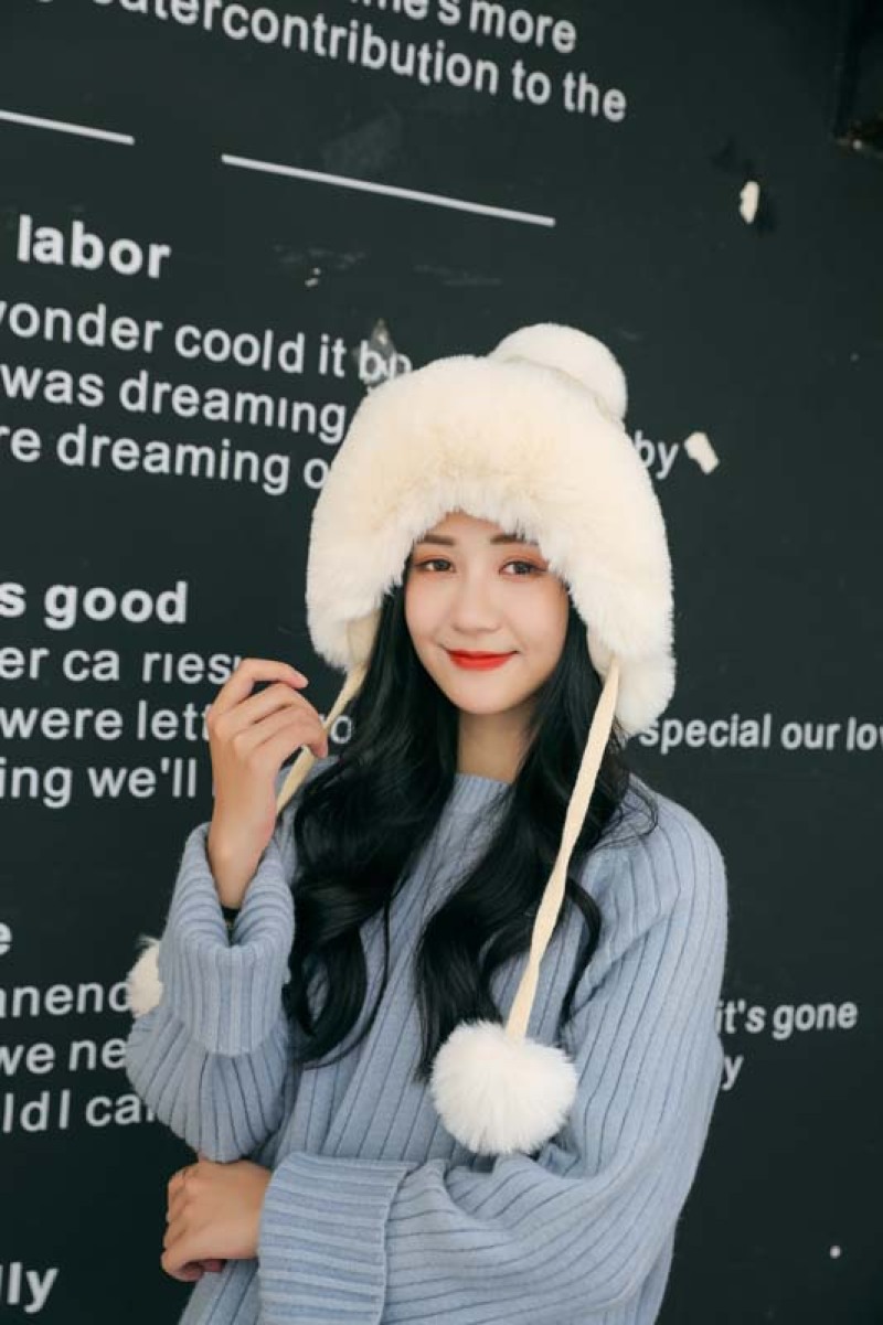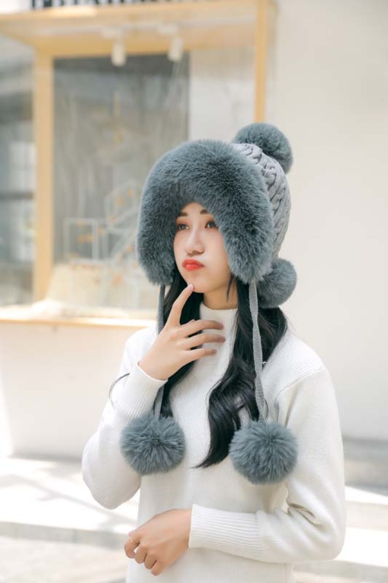 帽子毛球加绒雷锋帽毛线帽韩版甜美可爱女士户外保暖秋冬针织帽