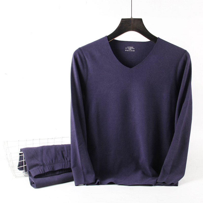 男士无痕保暖内衣套装加绒德V领秋衣秋裤双面磨毛打底棉毛衫修身