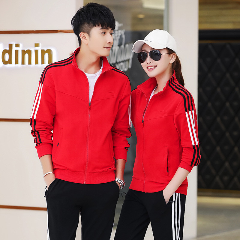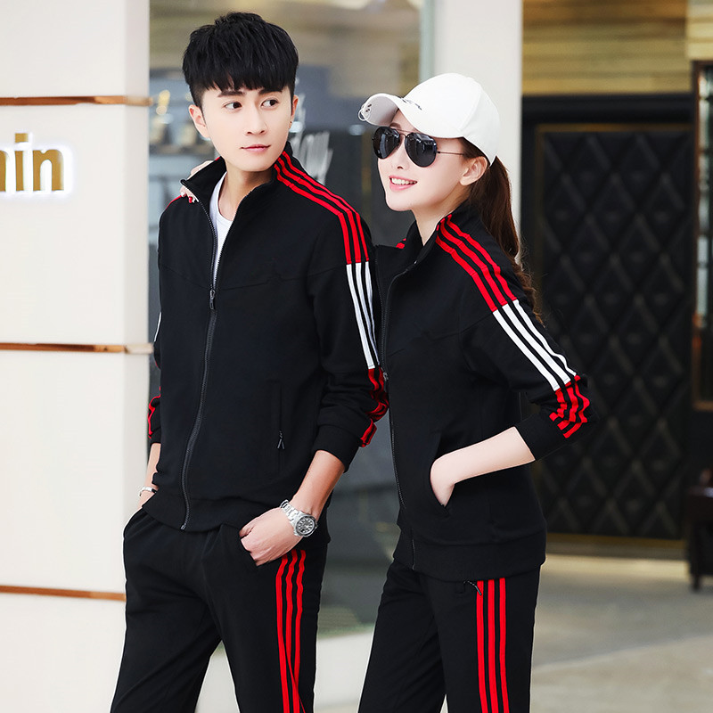 2020秋季新款两件套套装女士长袖立领外套男士休闲长裤情侣运动服