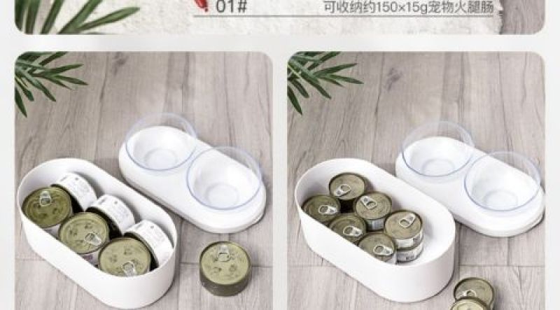 储物式宠物碗加高护颈猫碗架中小型犬幼犬猫咪碗狗狗食盆喝水双碗