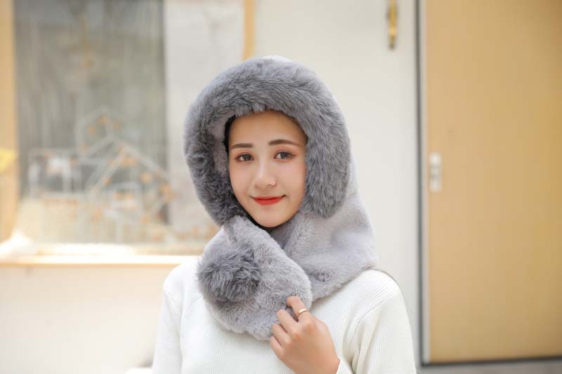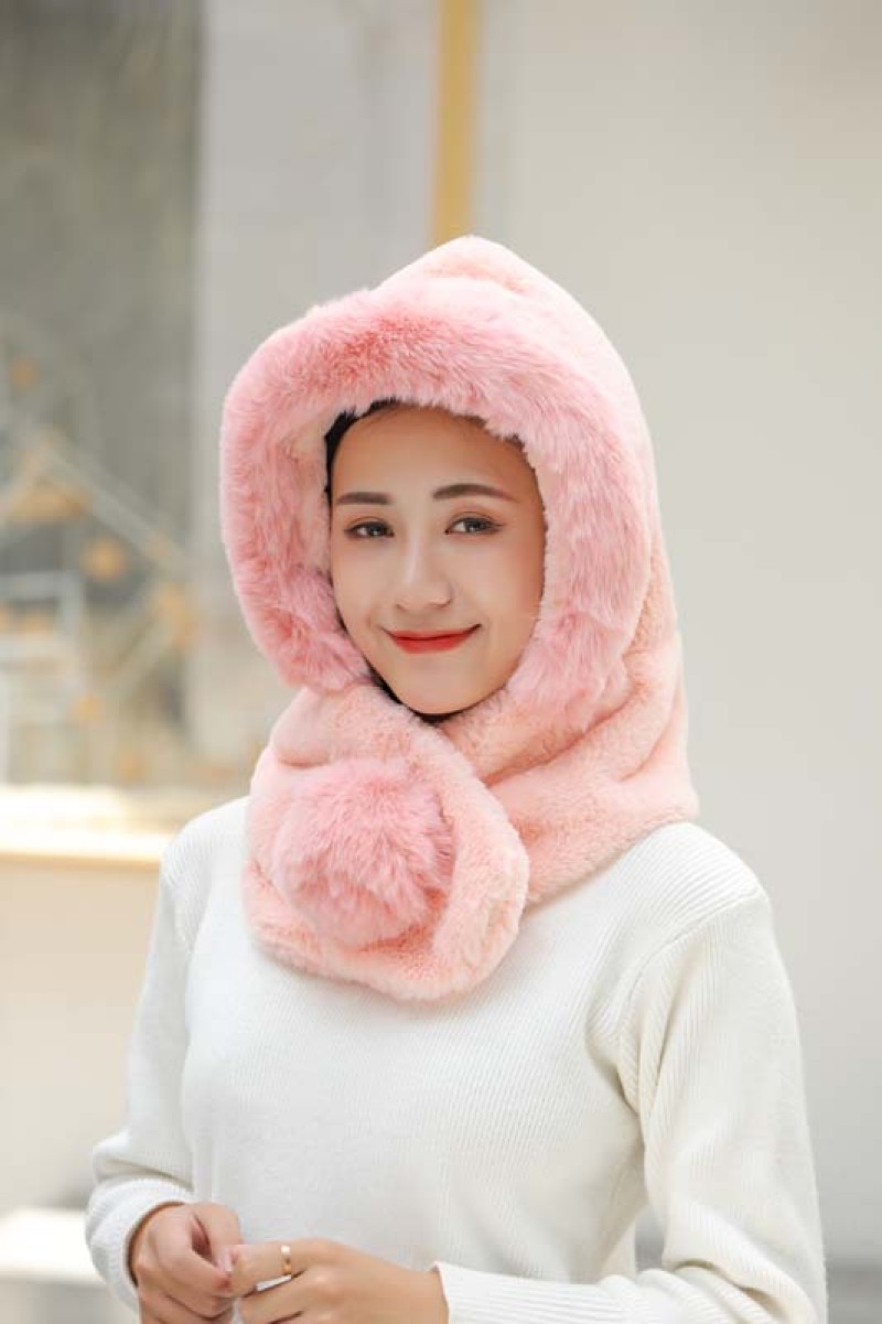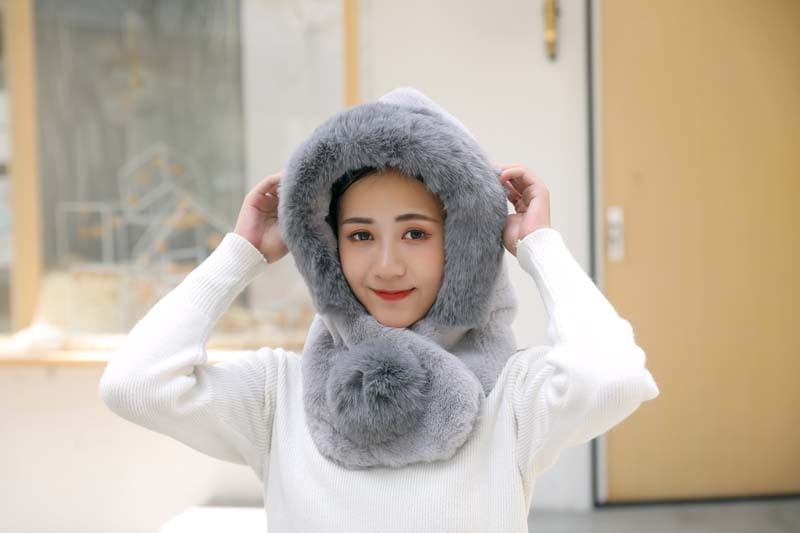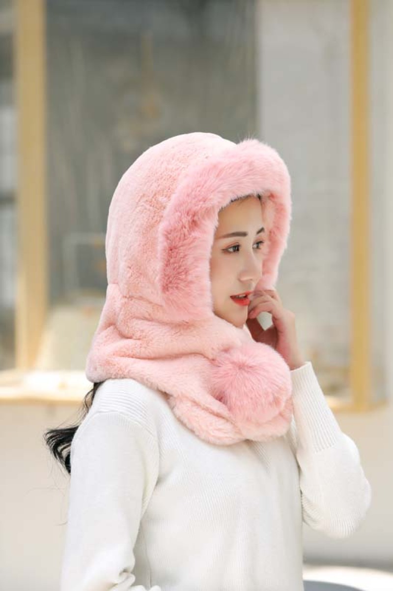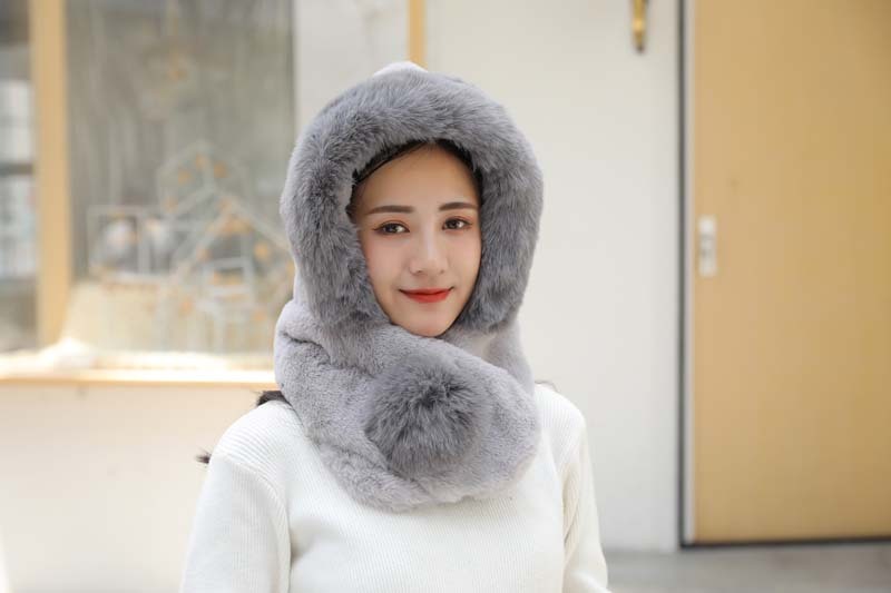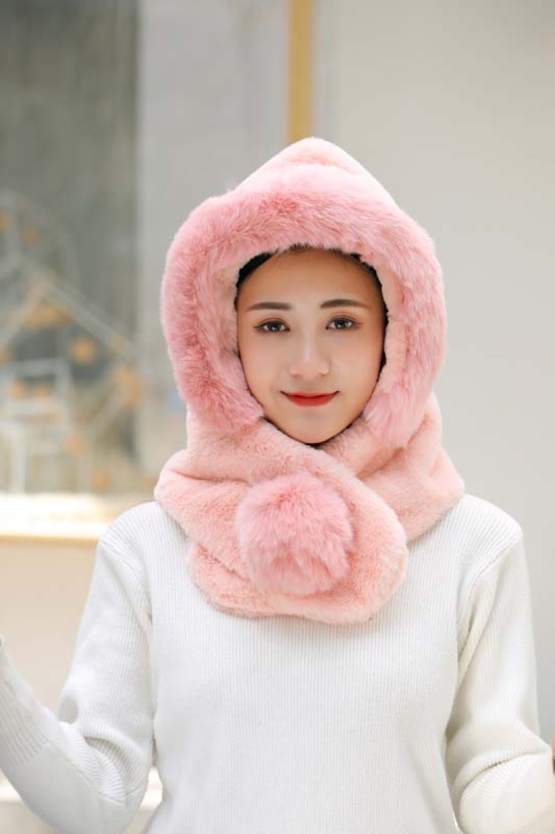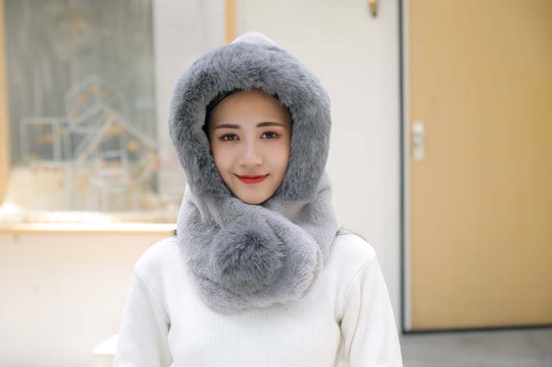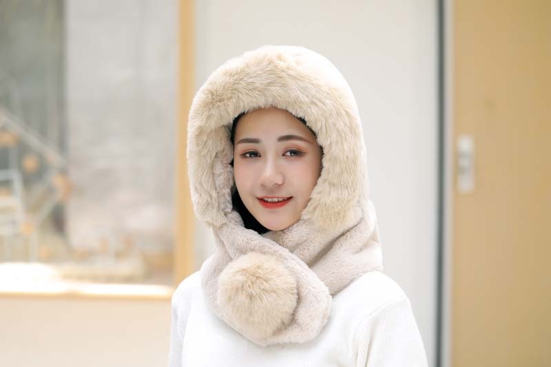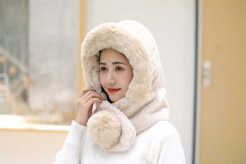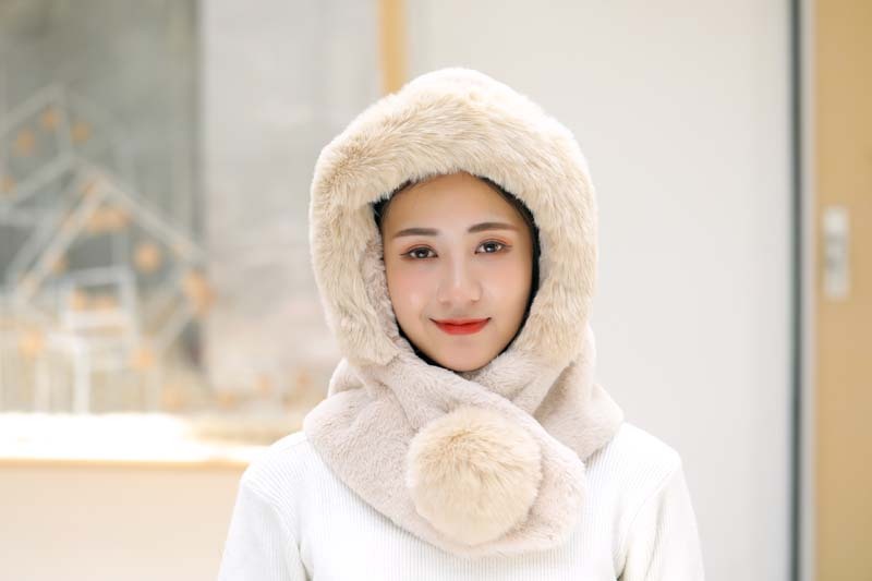 围巾帽子一体女保暖加厚毛毛皮草围脖帽子冬季百搭毛球围巾帽子