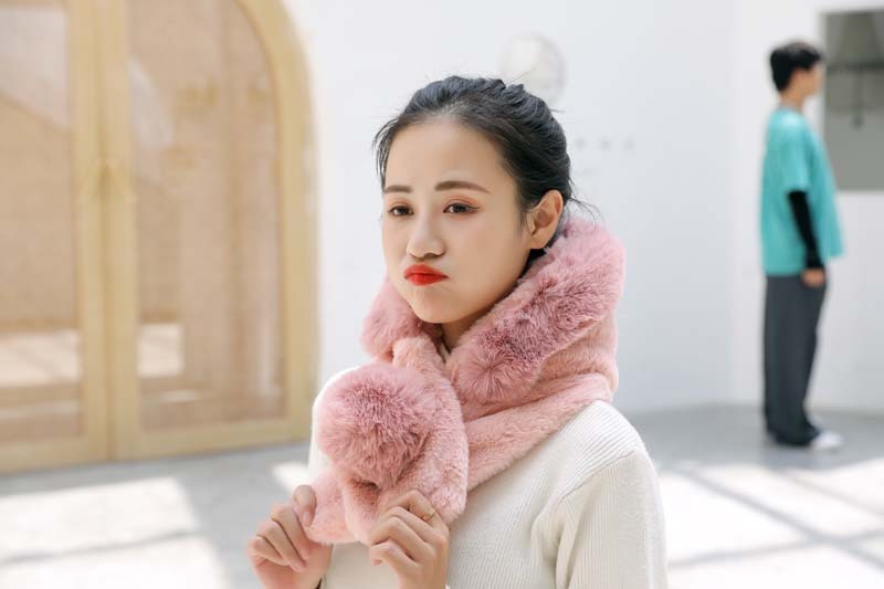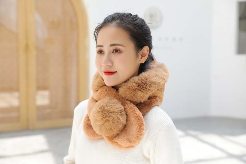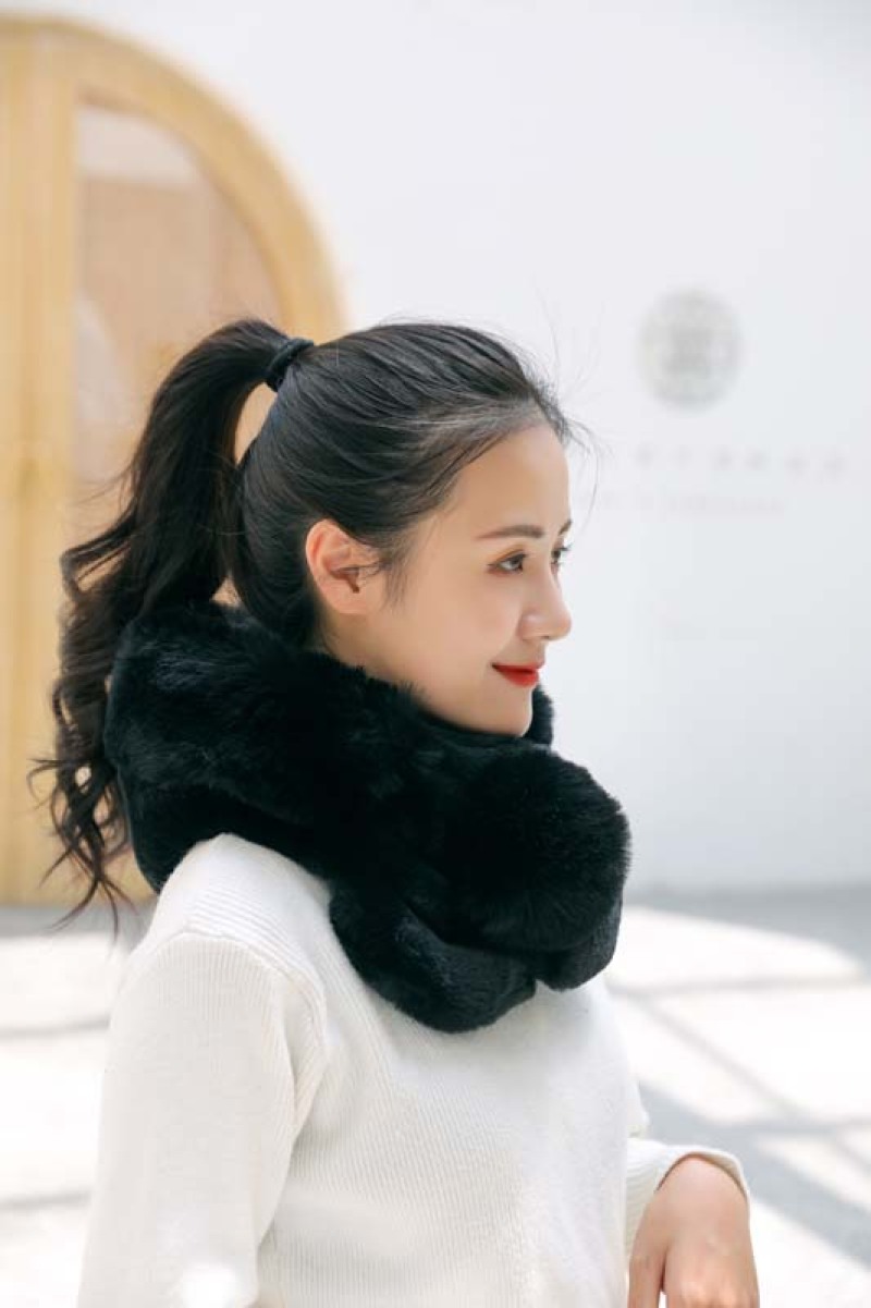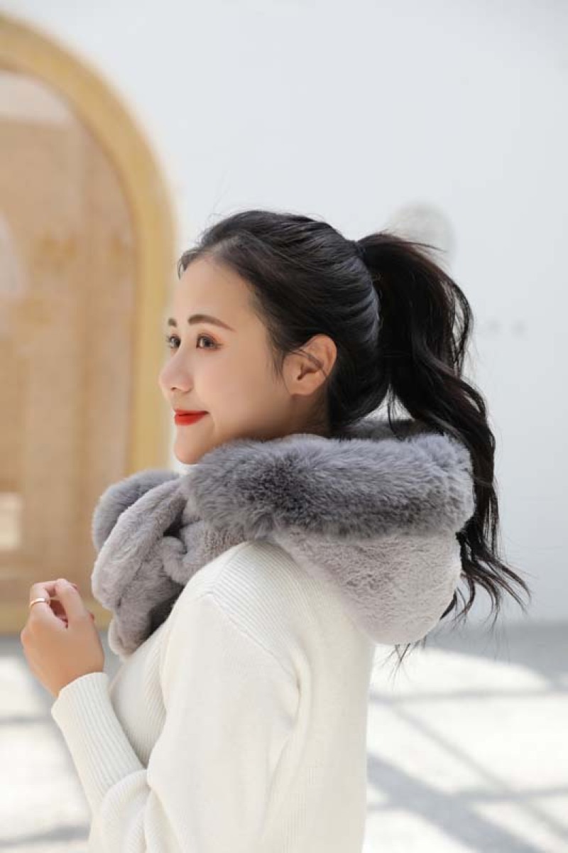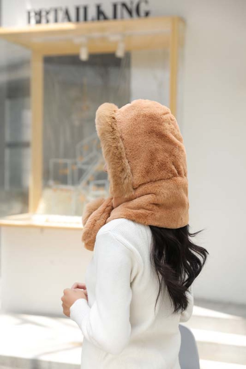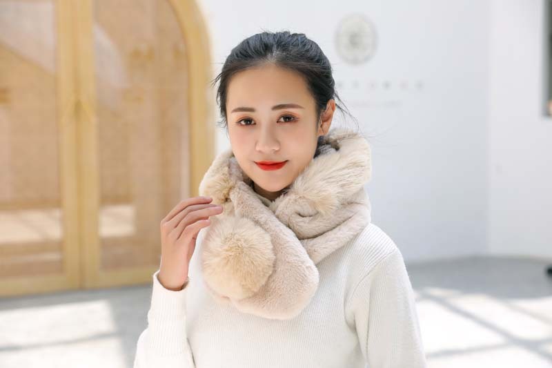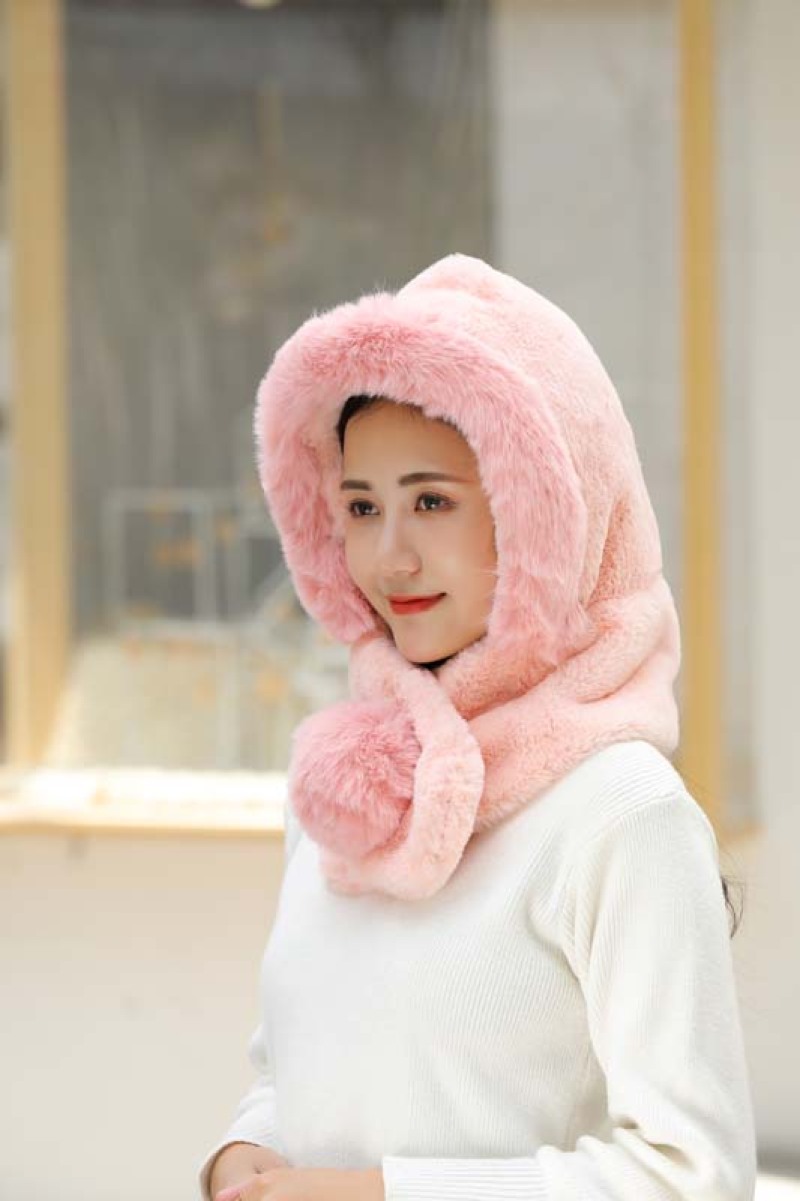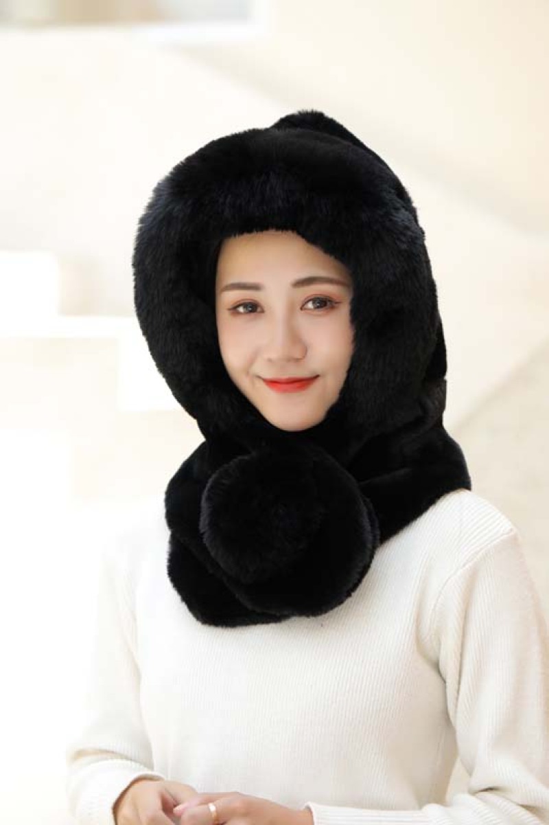 围巾帽子一体女保暖加厚毛毛皮草围脖帽子冬季百搭毛球围巾帽子