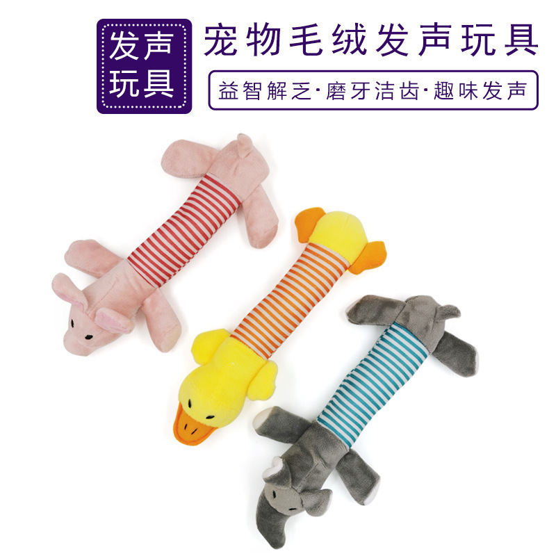 新款宠物长条鸭动物毛绒发声玩具 狗狗卡通粉猪灰象玩具 宠物用品