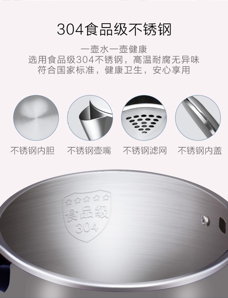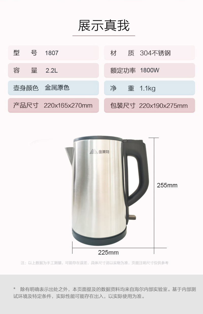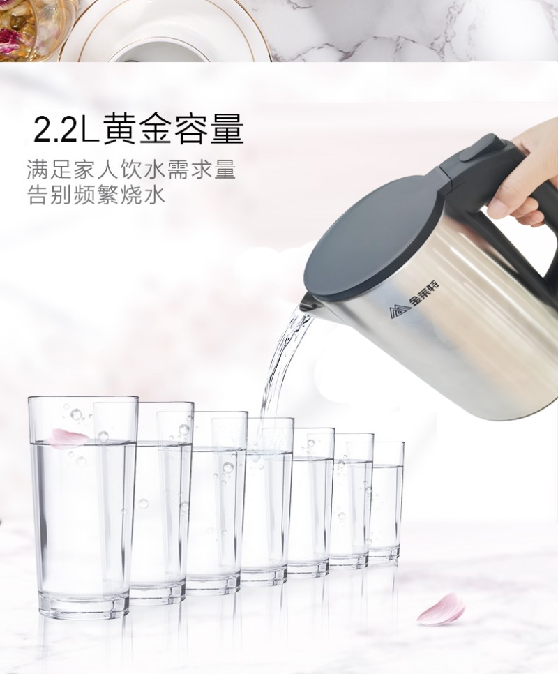 2.2L大容量不锈钢电烧水壶自动断电防干烧金莱特