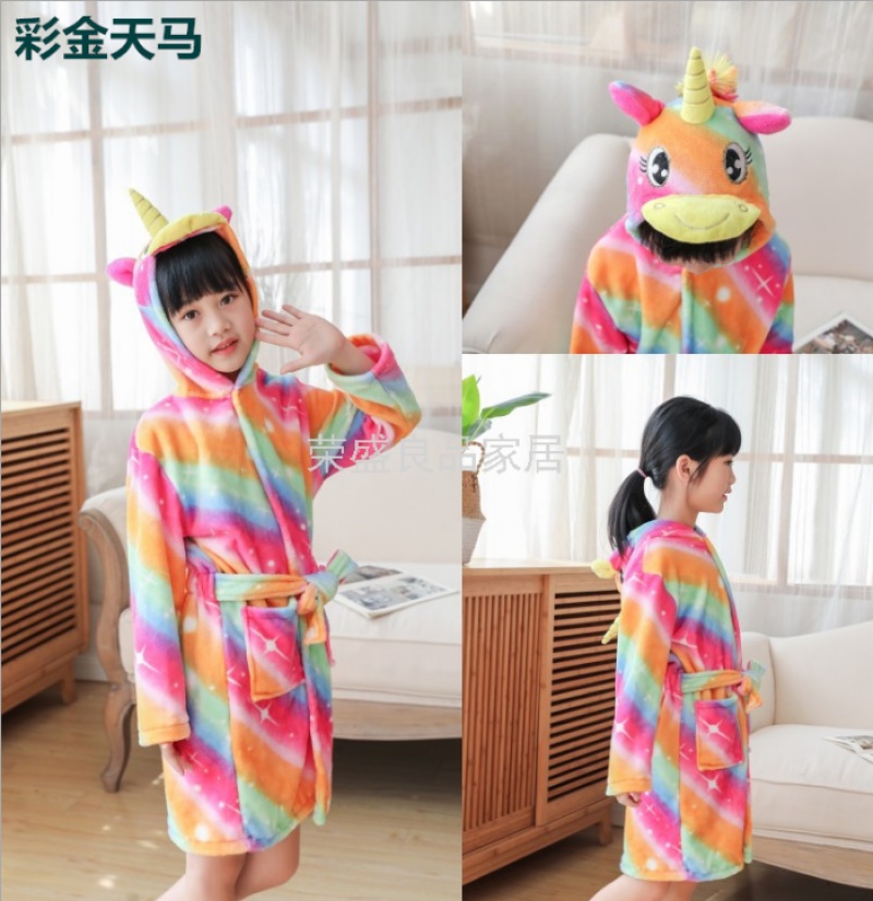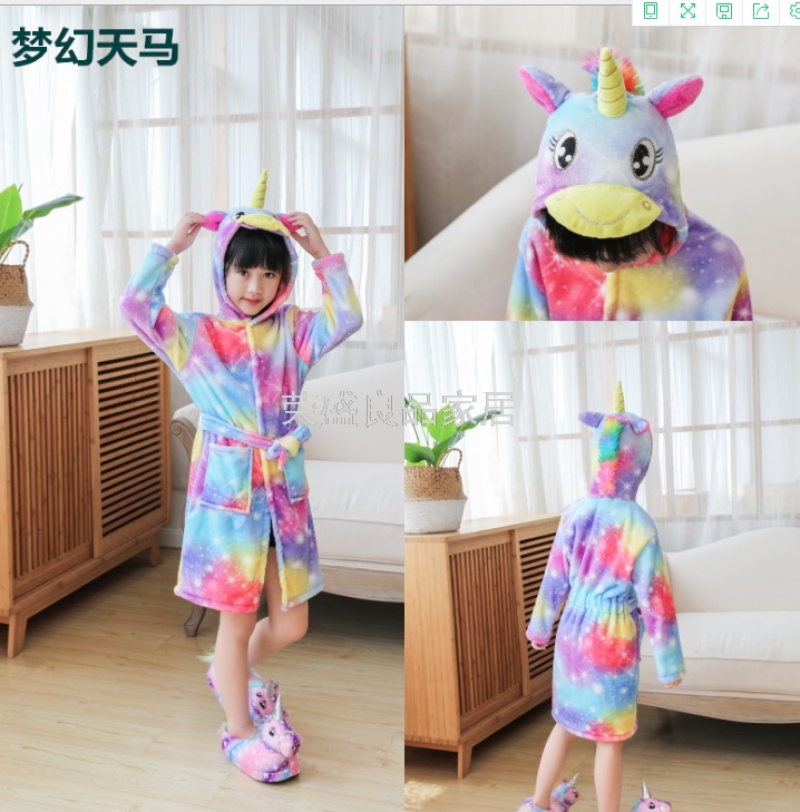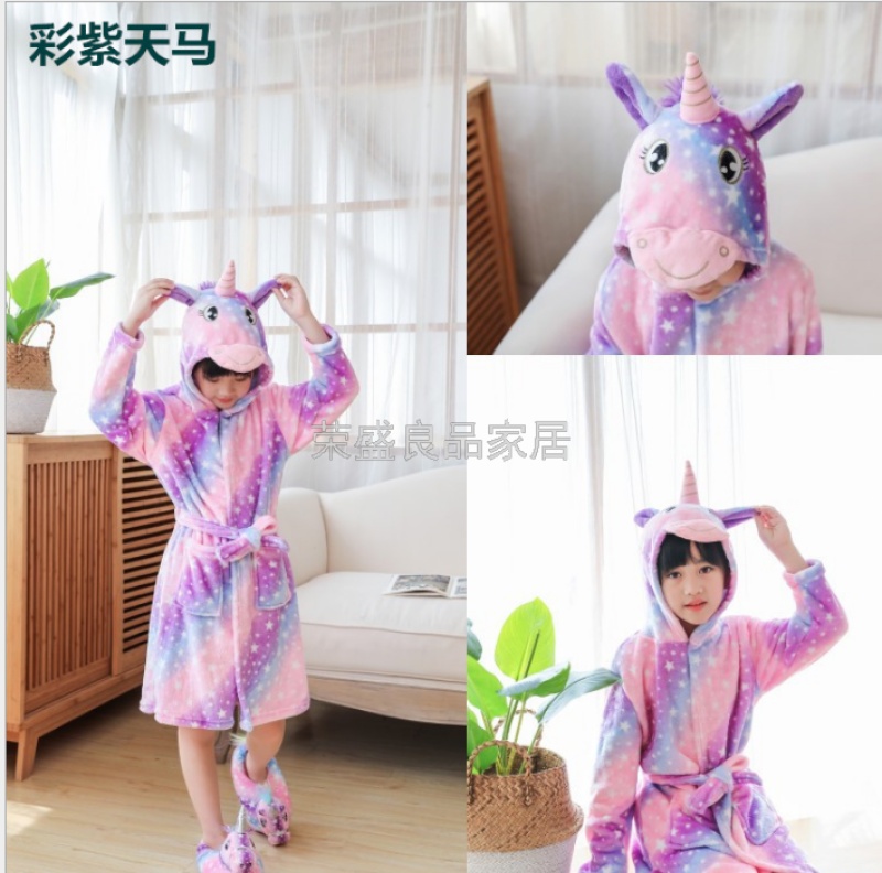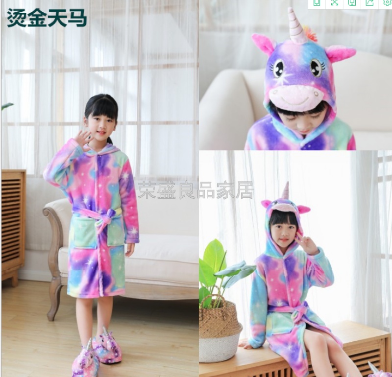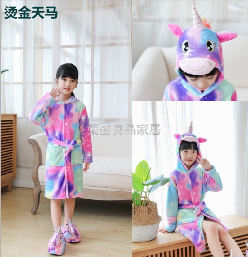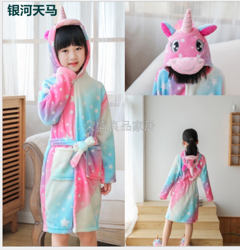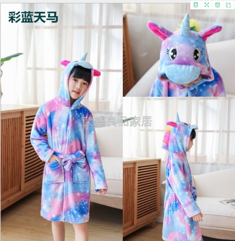 新款星空天马儿童浴袍法兰绒中款卡通儿童家居服睡袍动物睡衣浴袍