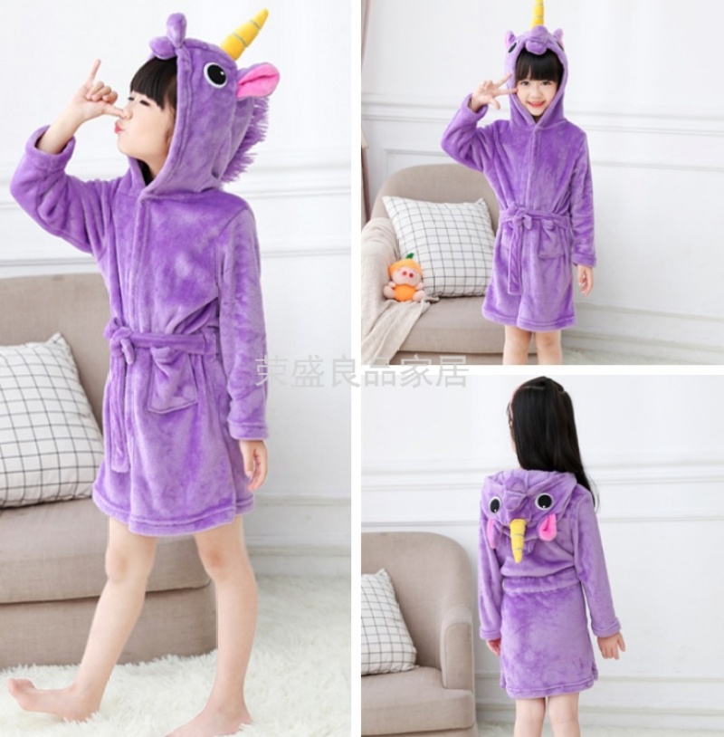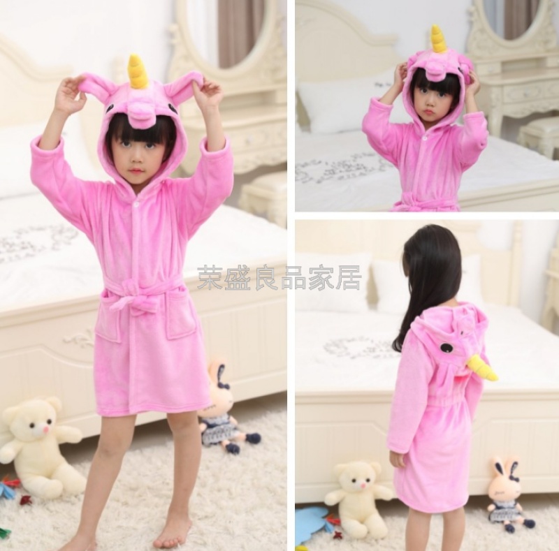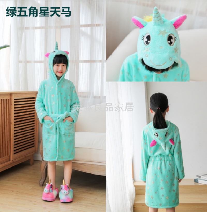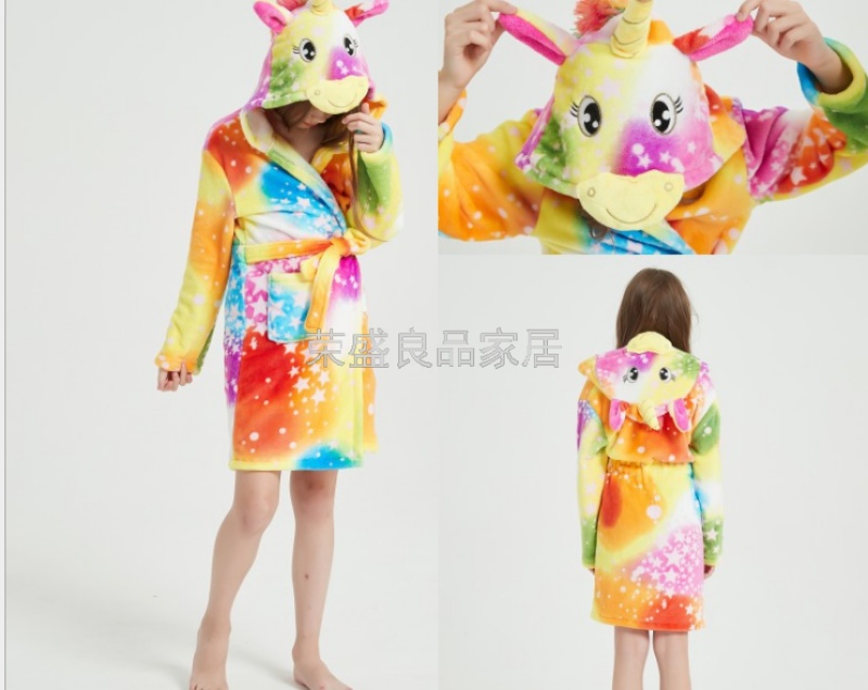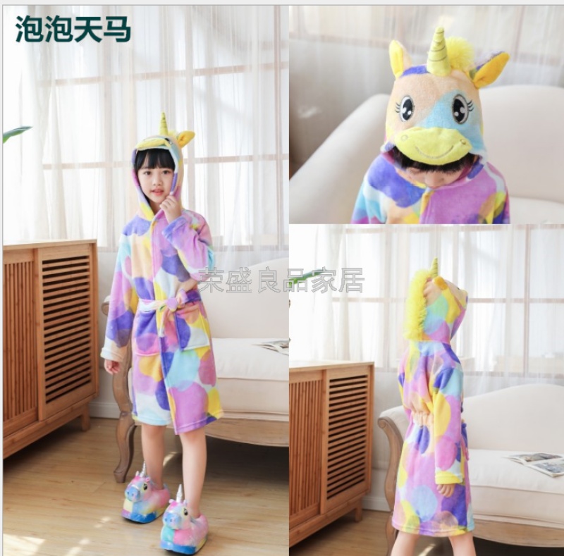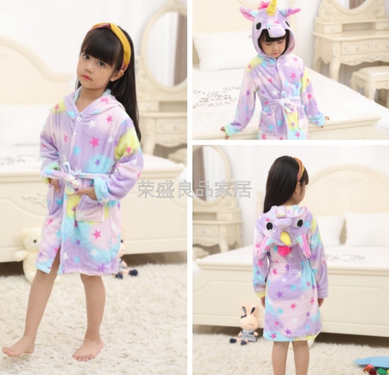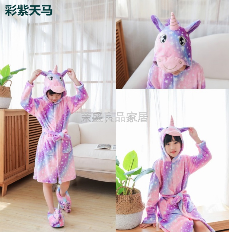 新款星空天马儿童浴袍法兰绒中款卡通儿童家居服睡袍动物睡衣浴袍