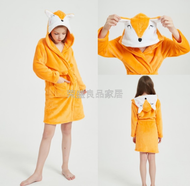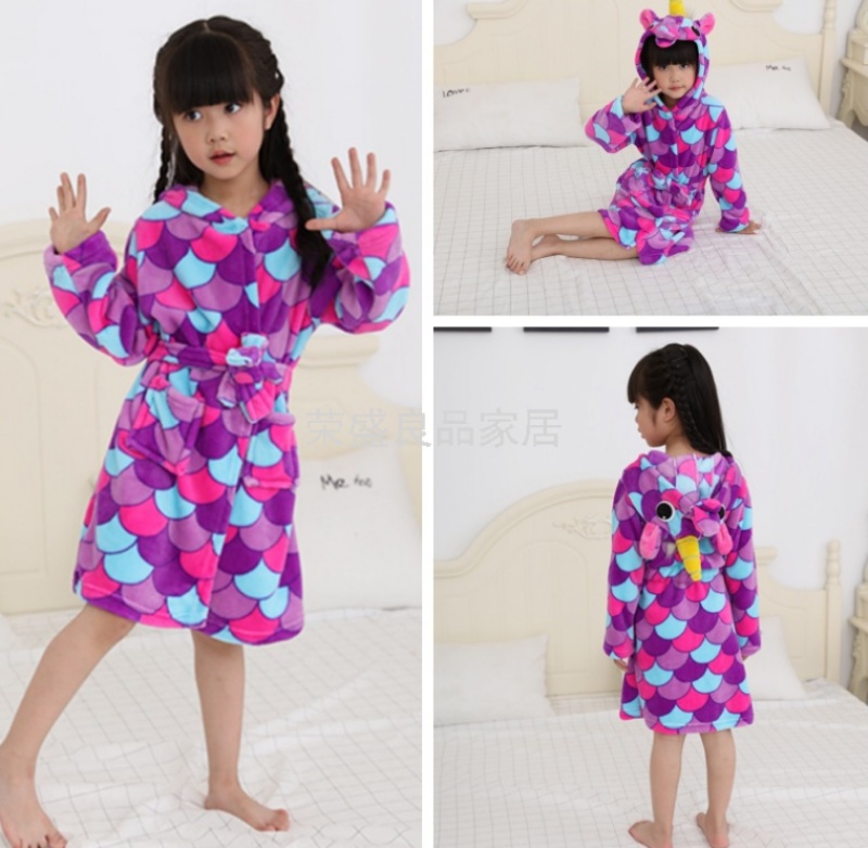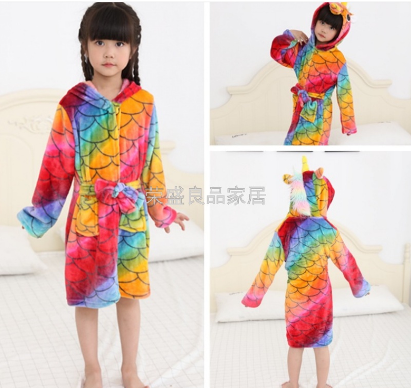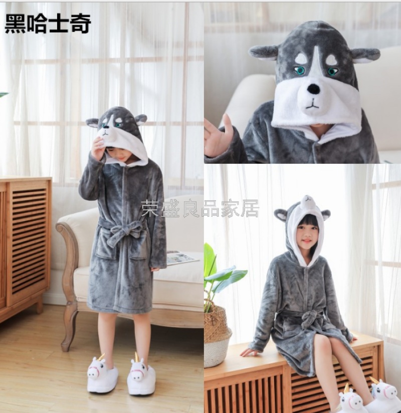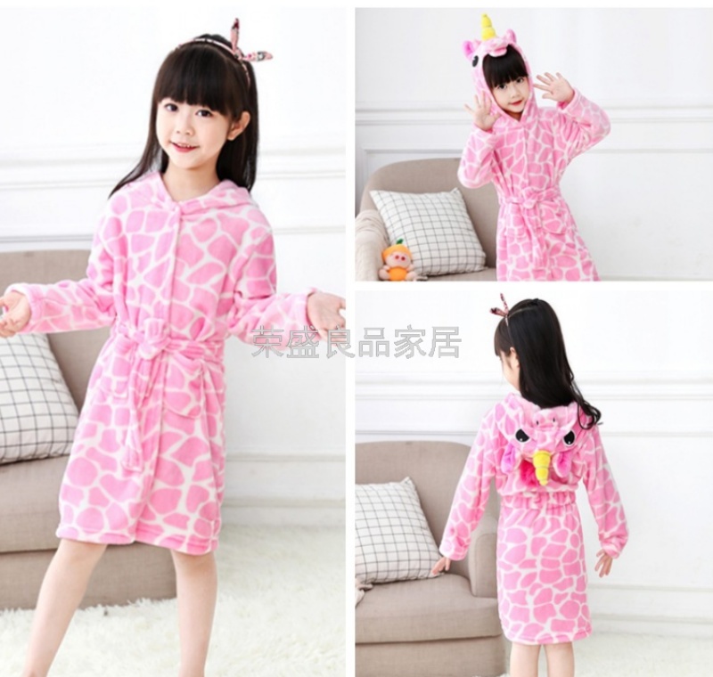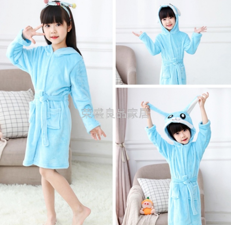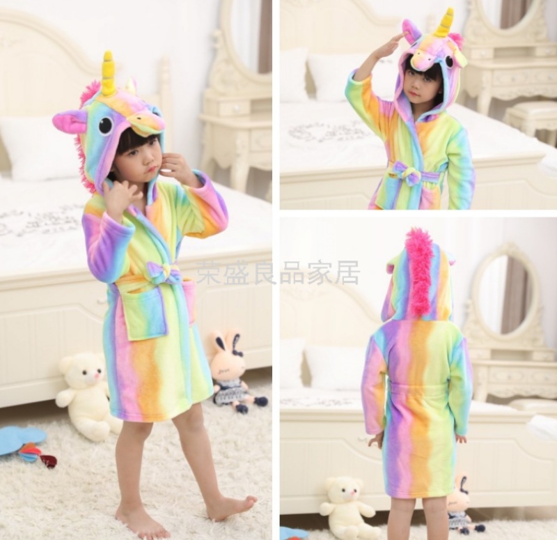 新款星空天马儿童浴袍法兰绒中款卡通儿童家居服睡袍动物睡衣浴袍