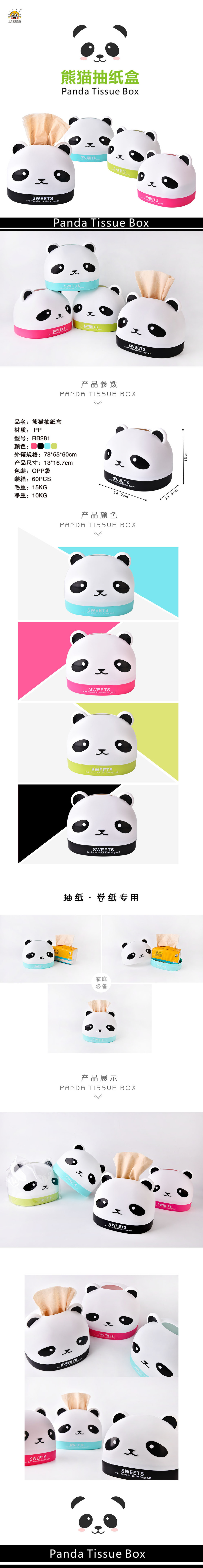 可爱熊猫抽纸盒 塑料餐厅抽取式餐纸收纳盒 创意纸巾盒