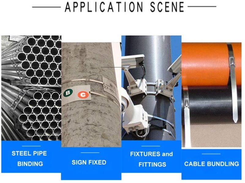 不锈钢扎带是一种主要用于工业捆绑固定作用的不锈钢制品,因其采用不锈钢材料,所以拥有不锈钢耐化学腐蚀介质(酸、碱、盐等化学浸蚀)腐蚀的特性。 同时不锈钢扎带产品不受被捆扎物体形状和尺寸的限制,简单的扎扣结构简化了传统抱箍的复杂性,良好的紧固性能保证了被捆扎物体的安全,不锈钢扎带防腐并且耐高温的材料,保证了环境的美观及防火要求;
