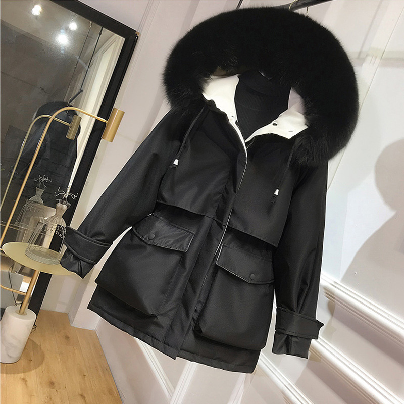 羽绒服女中长款2020冬季新款韩版时尚狐狸毛大毛领宽松羽绒衣外套