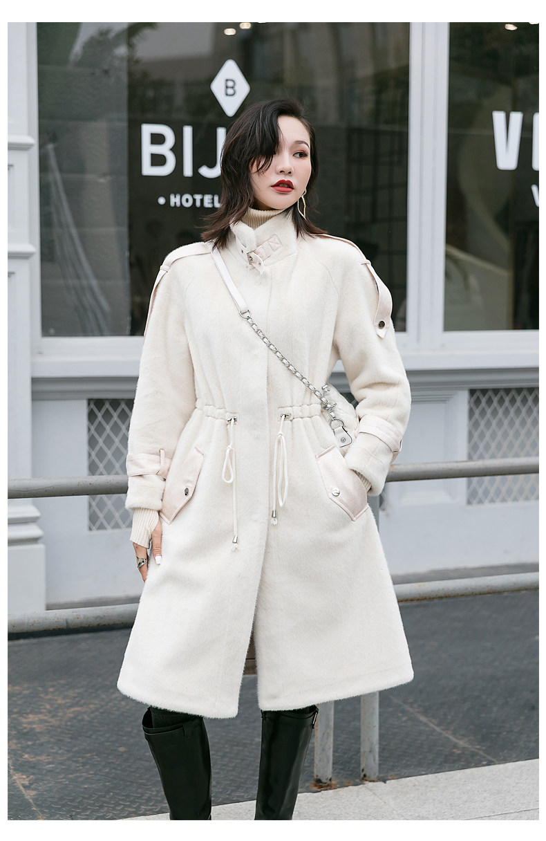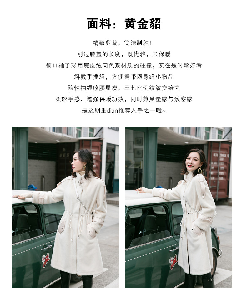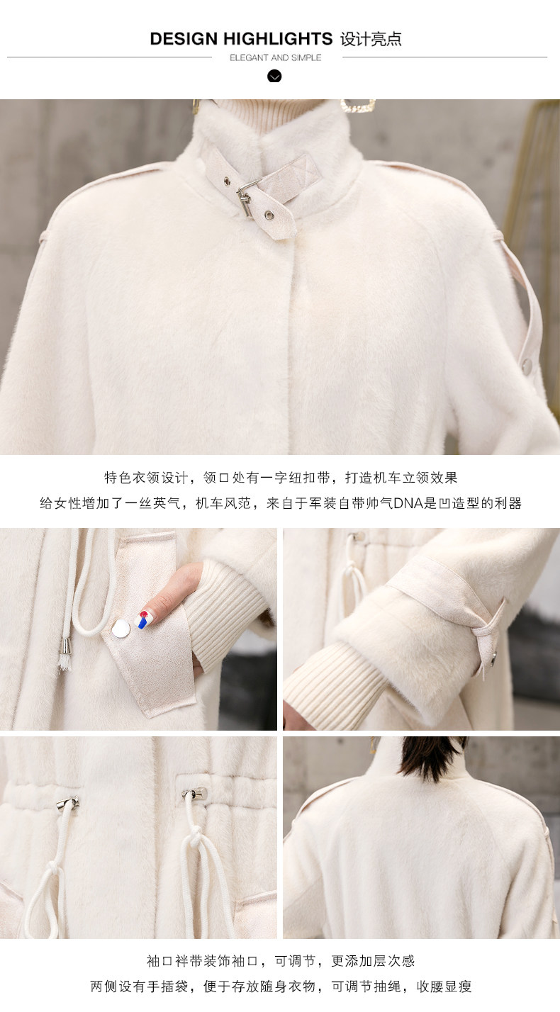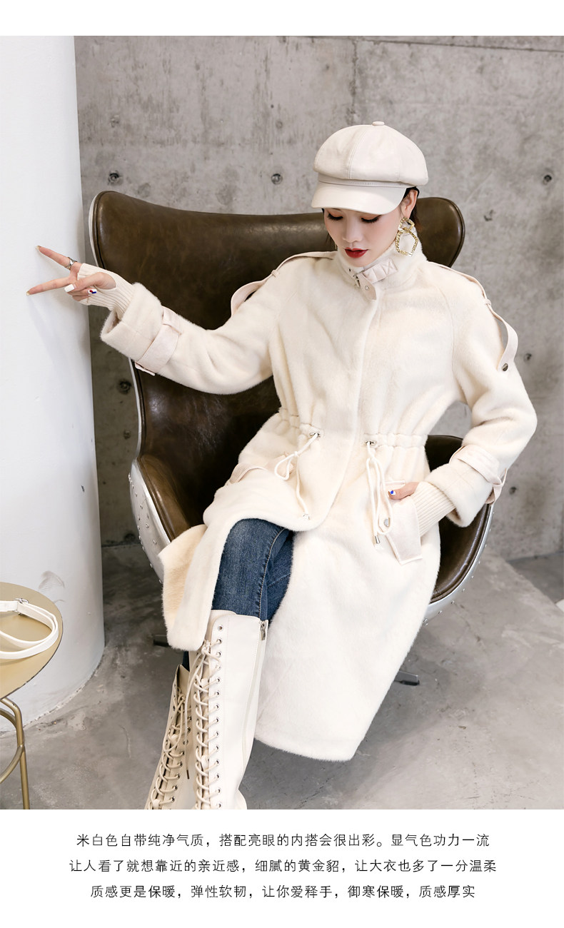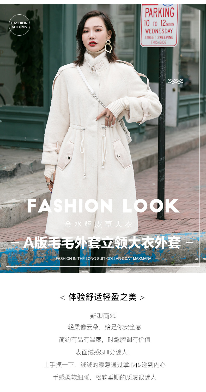 2020冬金水貂收腰立领复合皮毛一体中长款貂绒皮草大衣外套风衣女