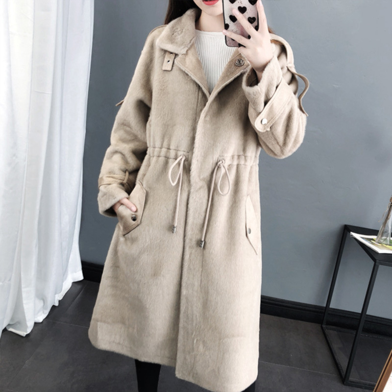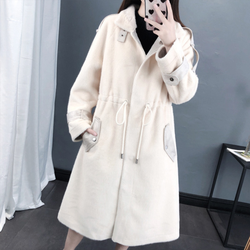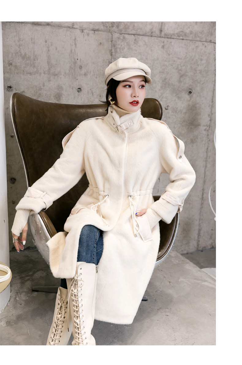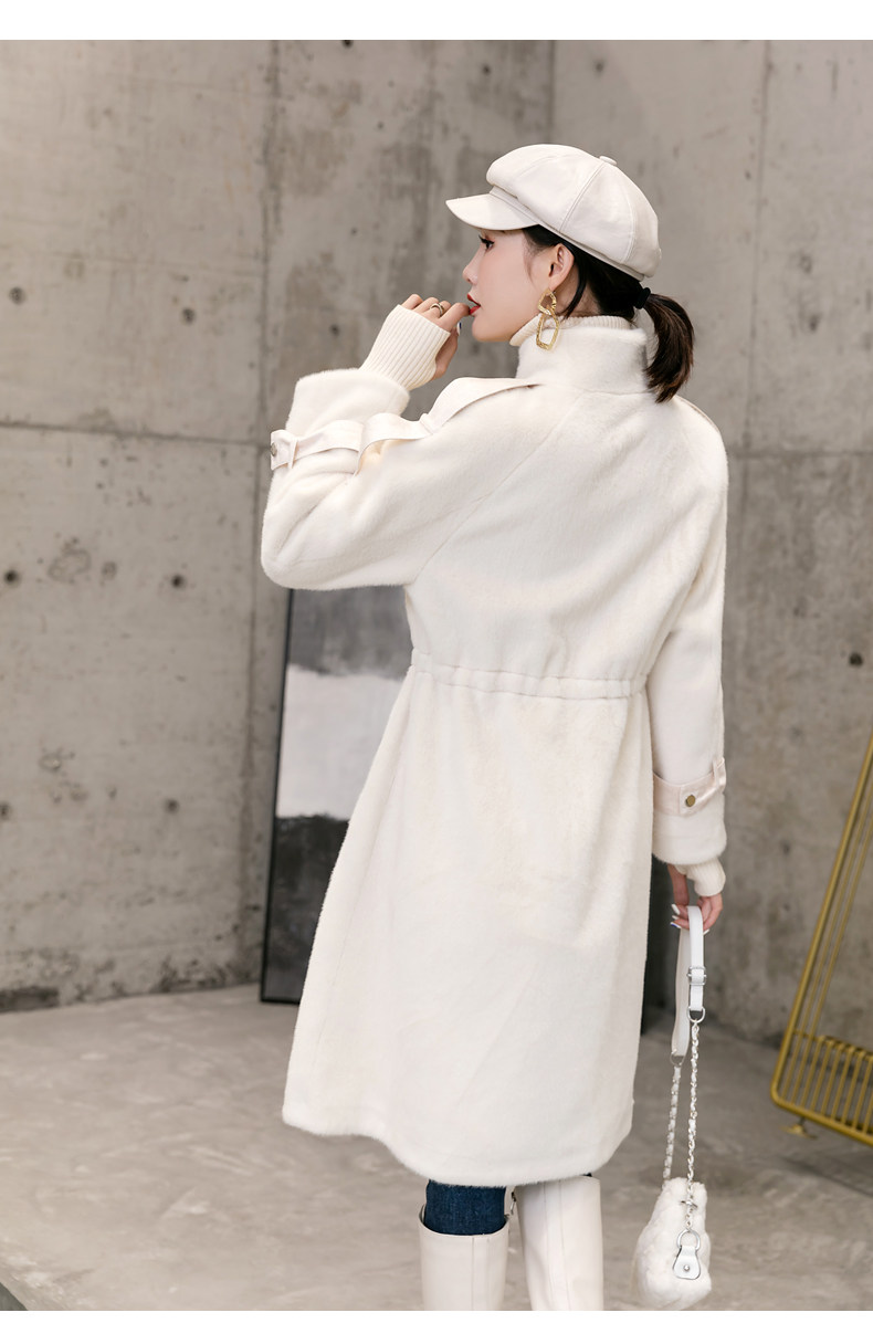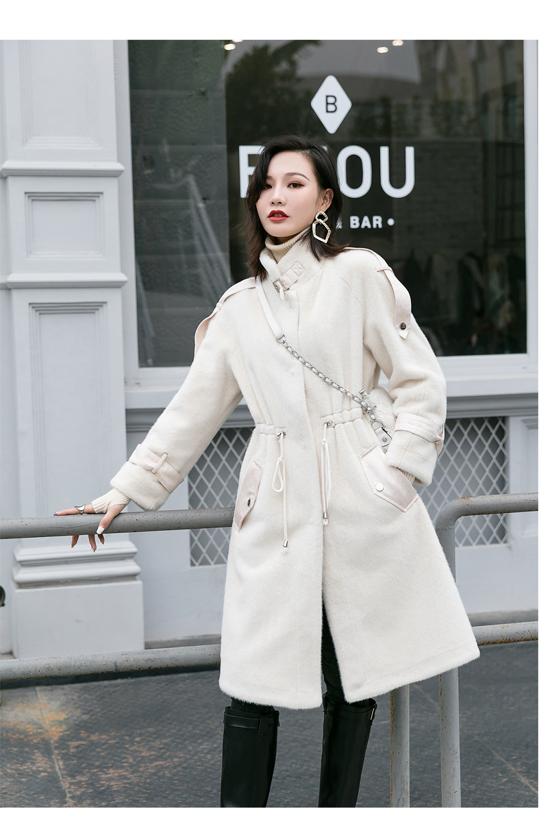 2020冬金水貂收腰立领复合皮毛一体中长款貂绒皮草大衣外套风衣女