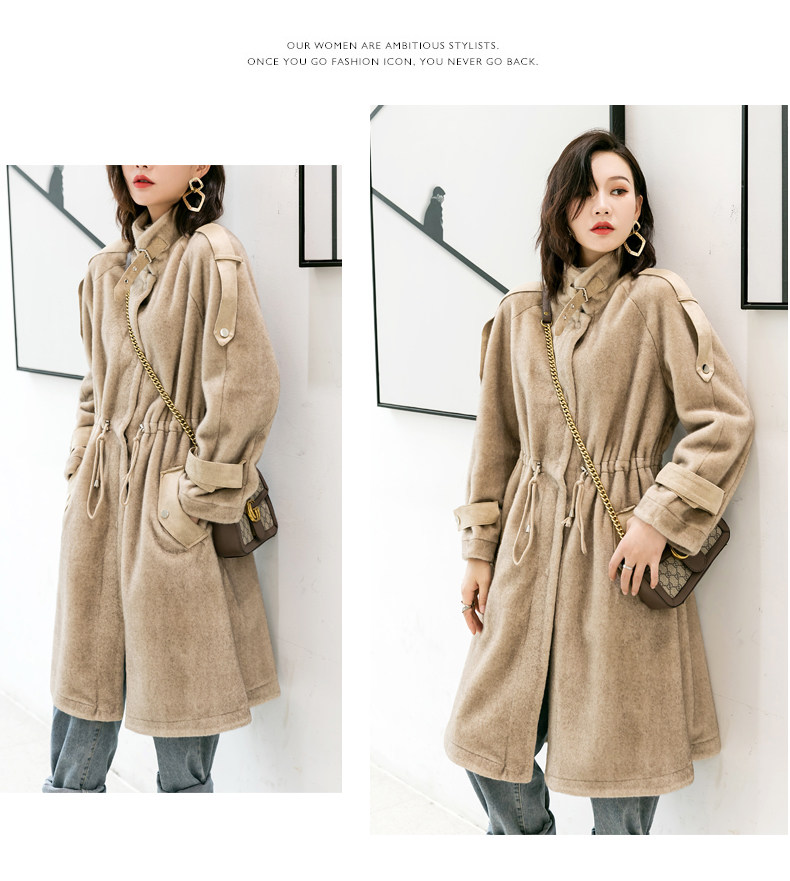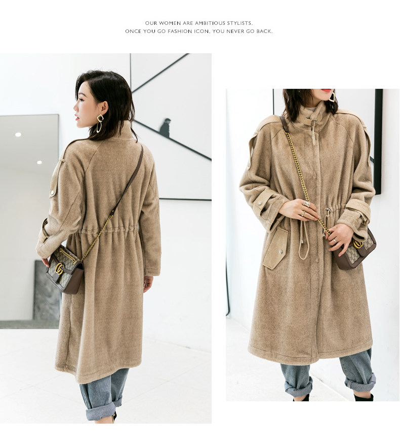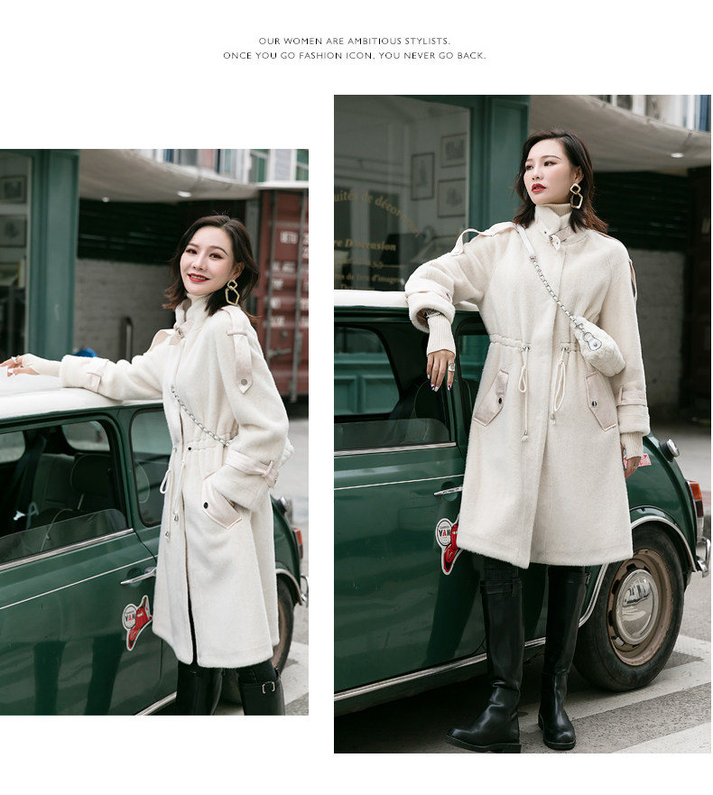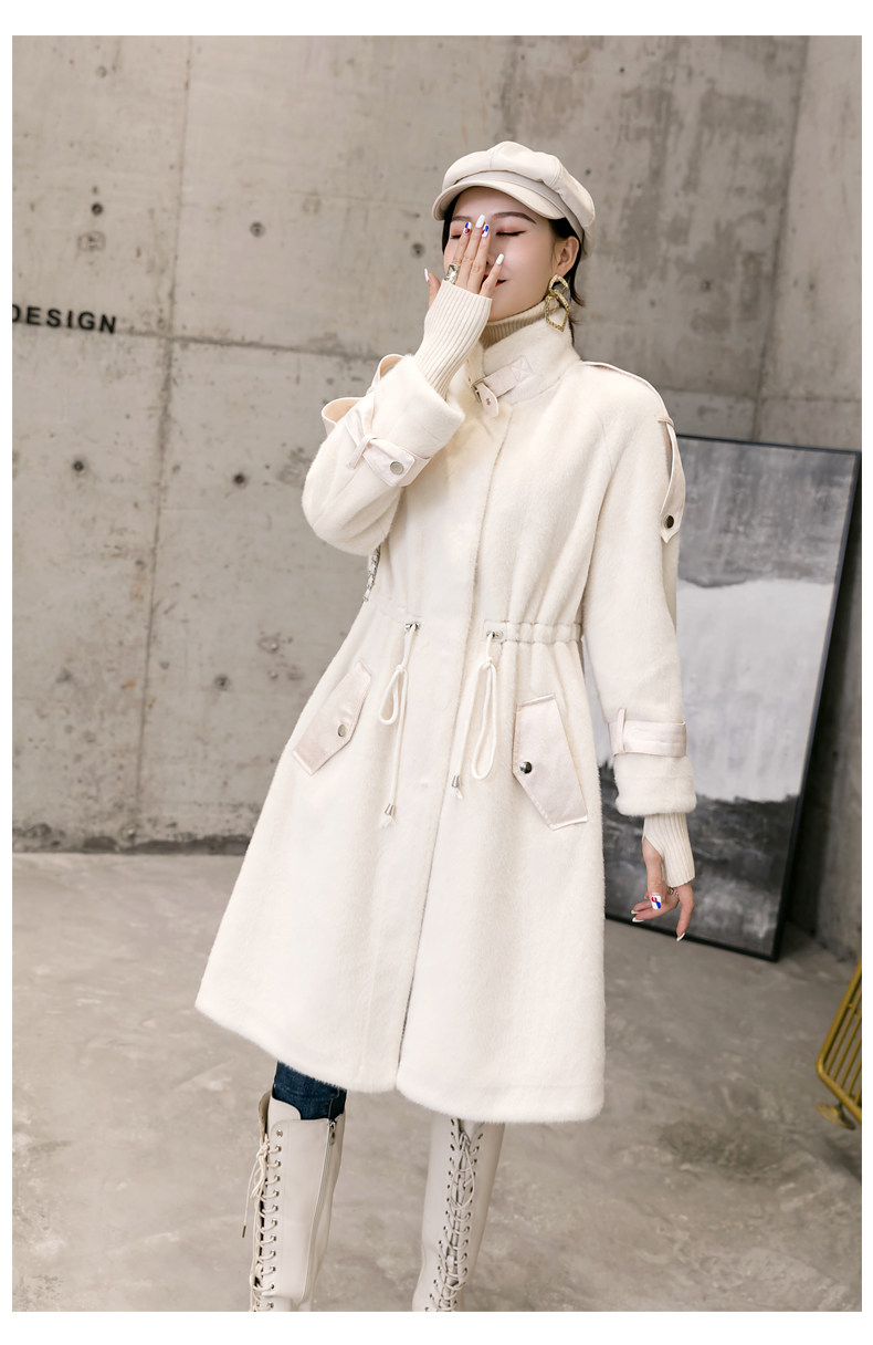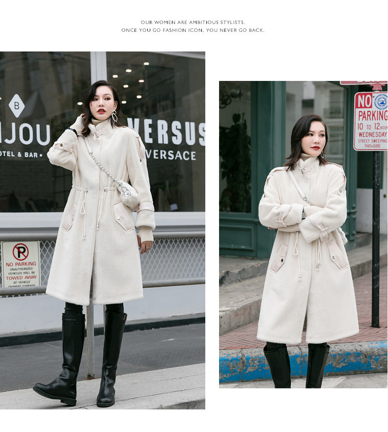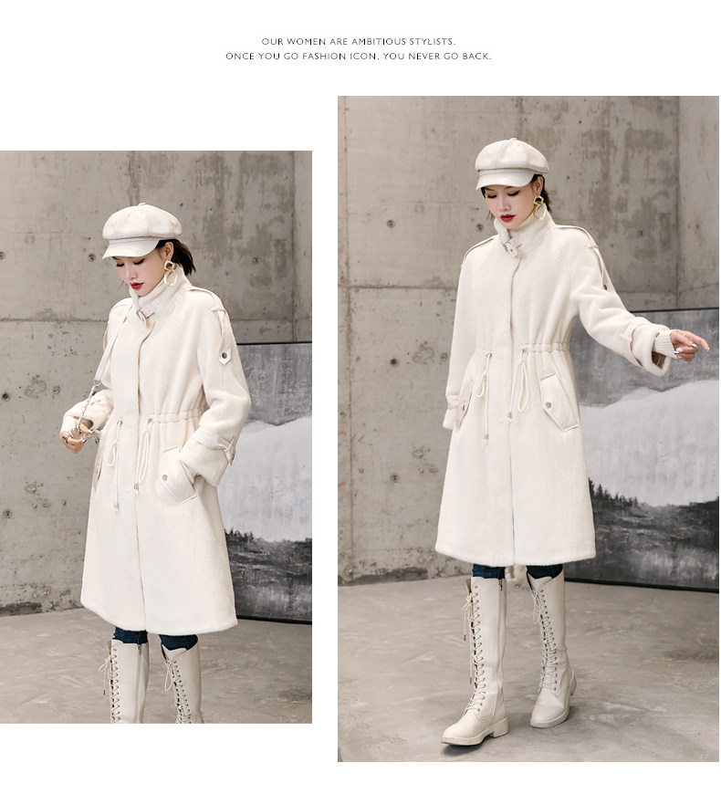 2020冬金水貂收腰立领复合皮毛一体中长款貂绒皮草大衣外套风衣女