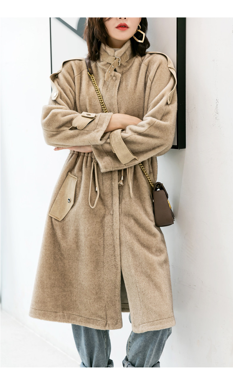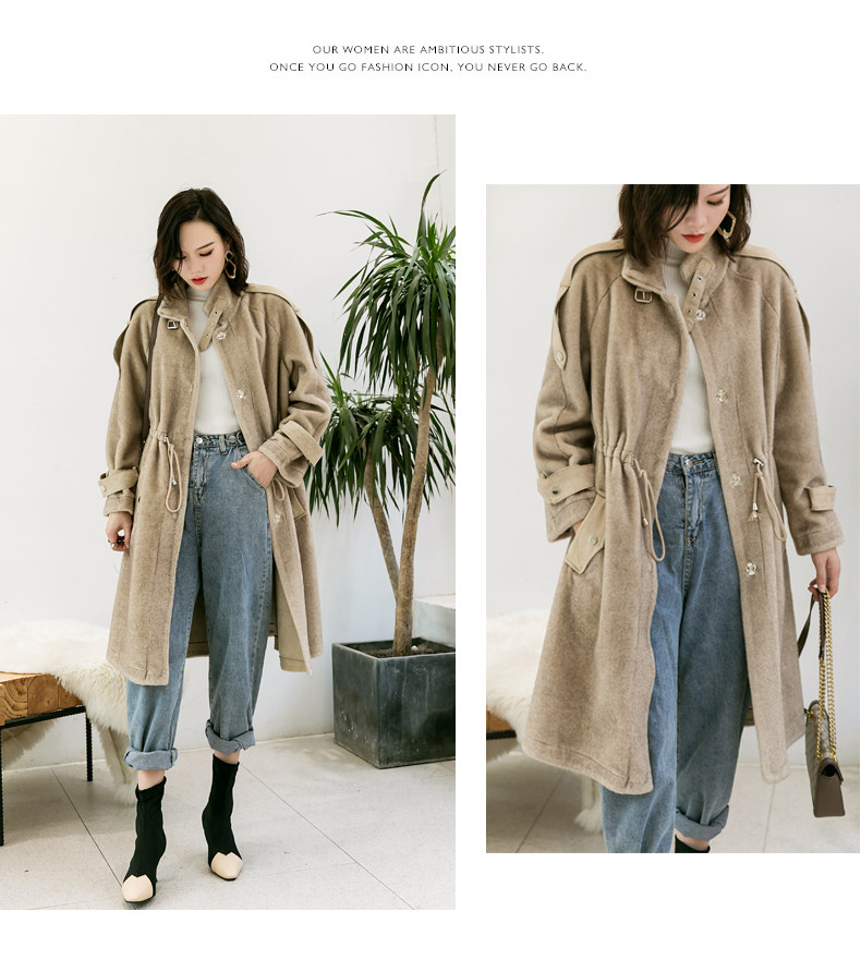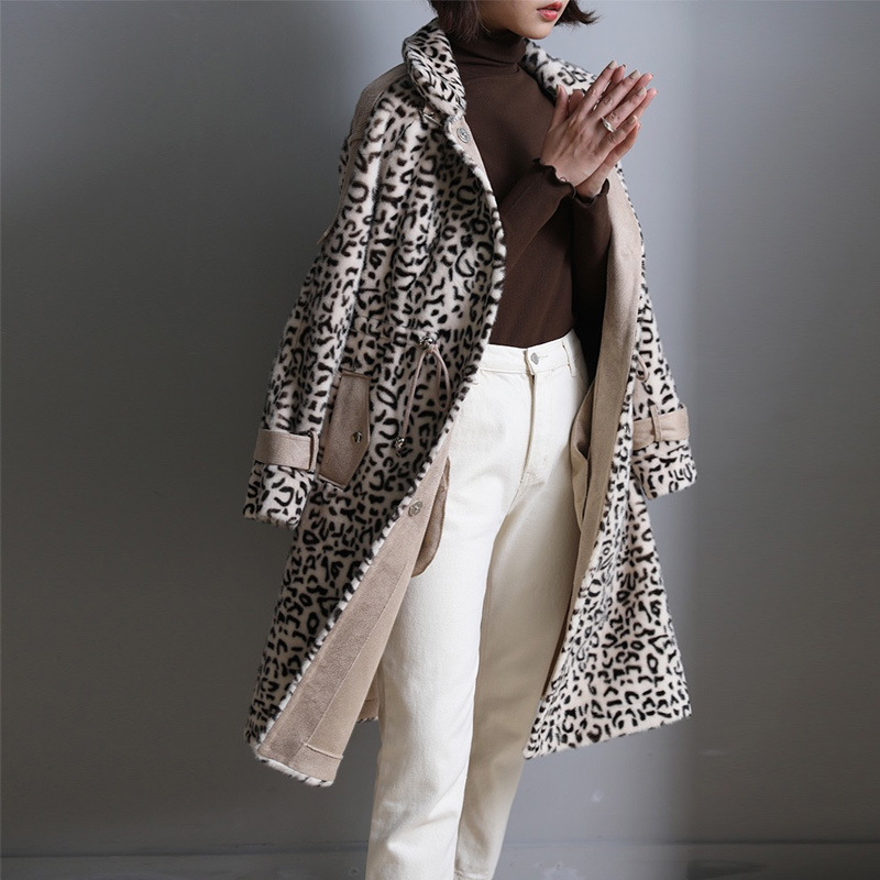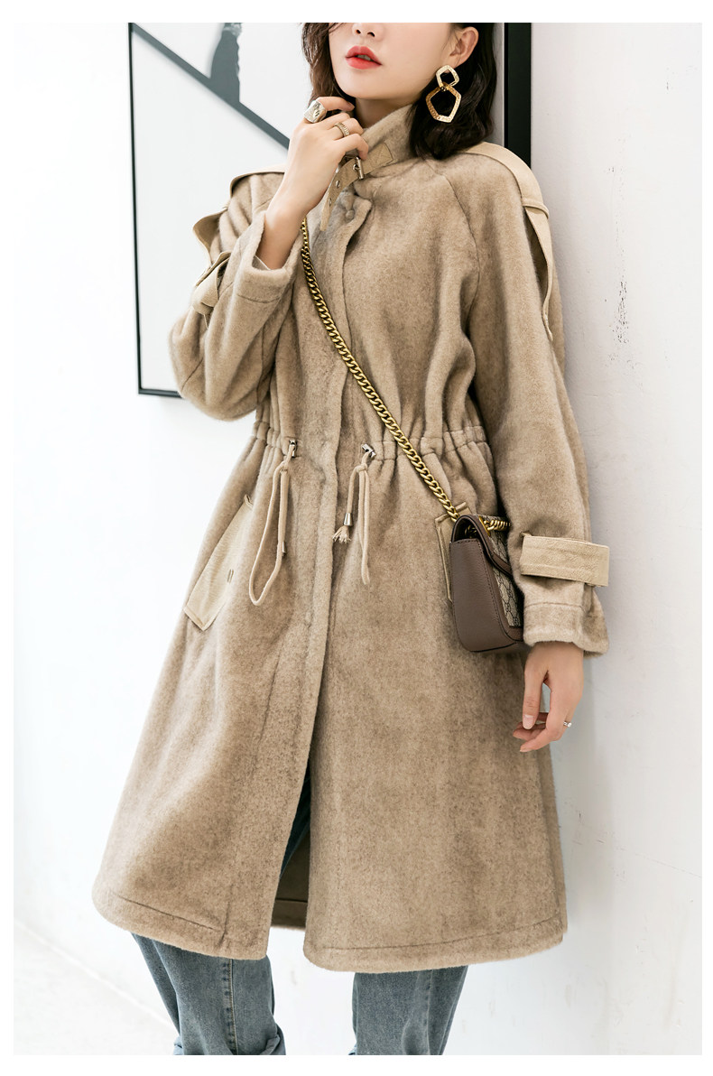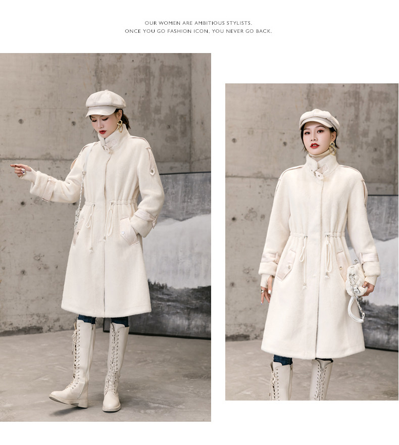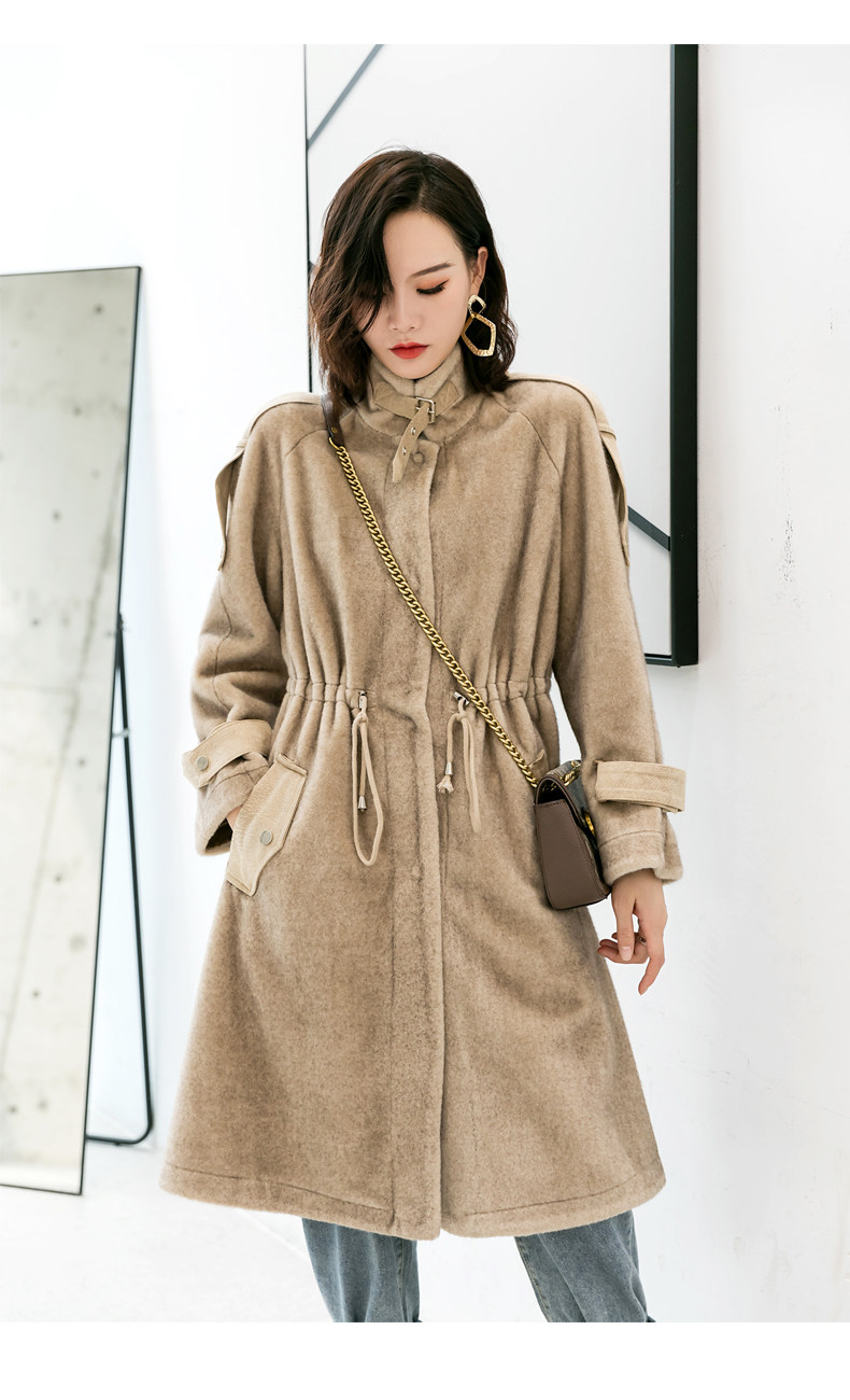 2020冬金水貂收腰立领复合皮毛一体中长款貂绒皮草大衣外套风衣女