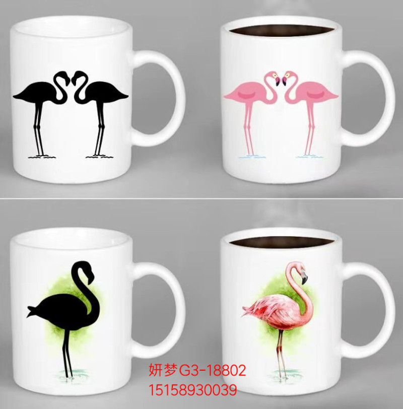 时尚创意变色马克杯 厂家直销现货礼品陶瓷杯火烈鸟变色批发杯子