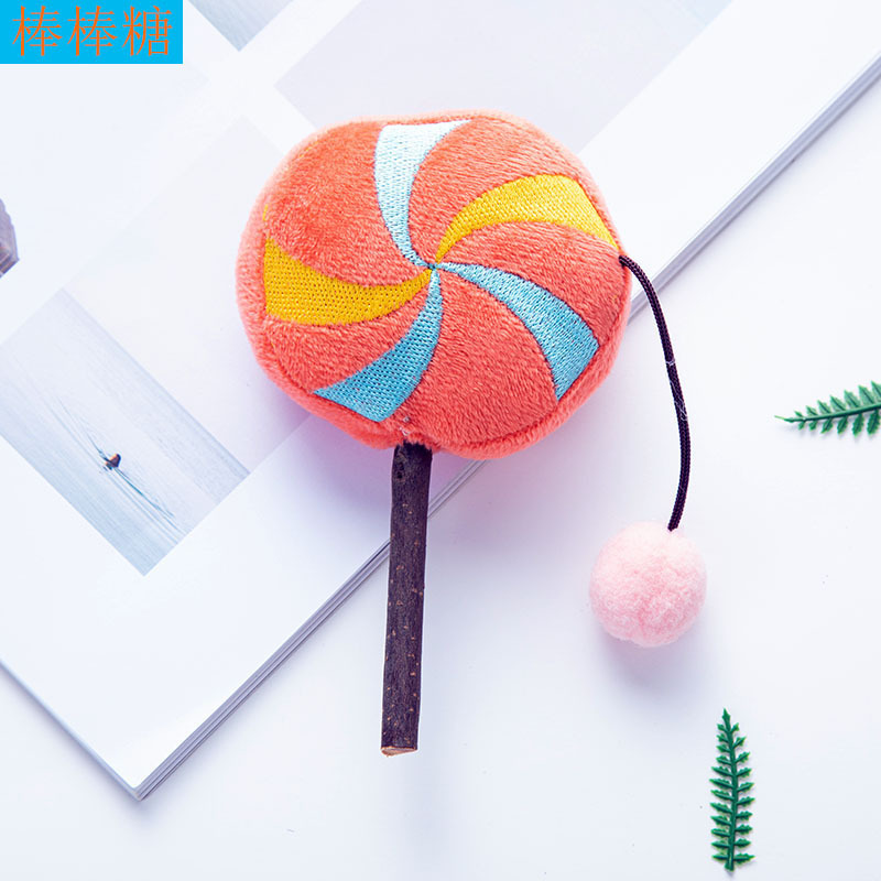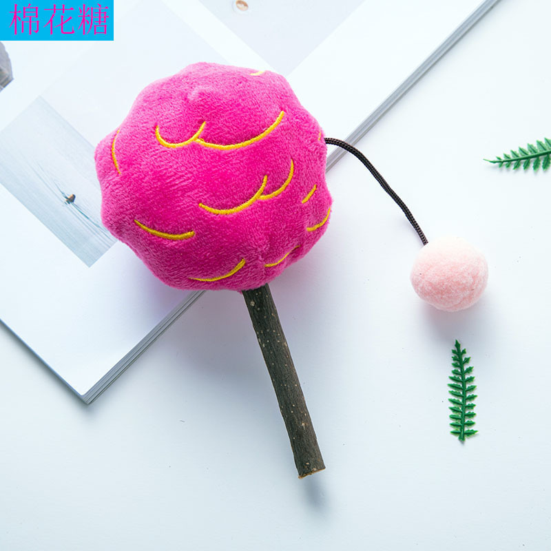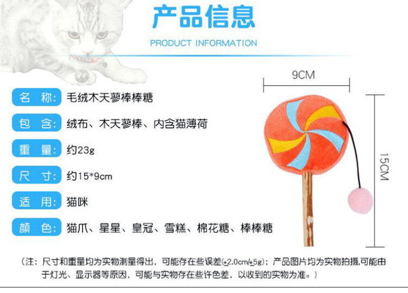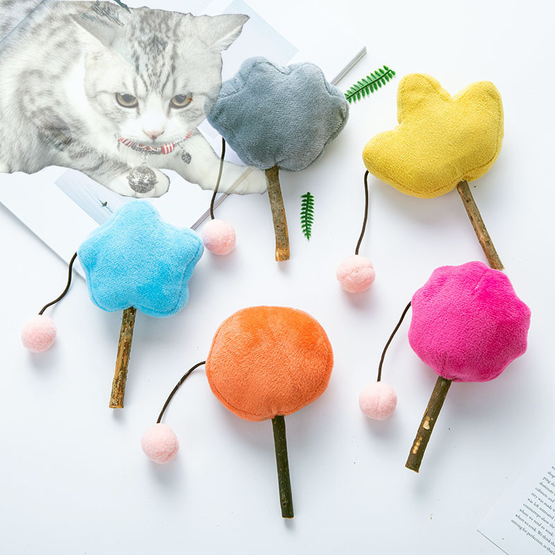 手工毛绒拨浪鼓木天蓼猫薄荷棒棒糖 猫咪磨牙逗猫棒玩具 厂家直销
