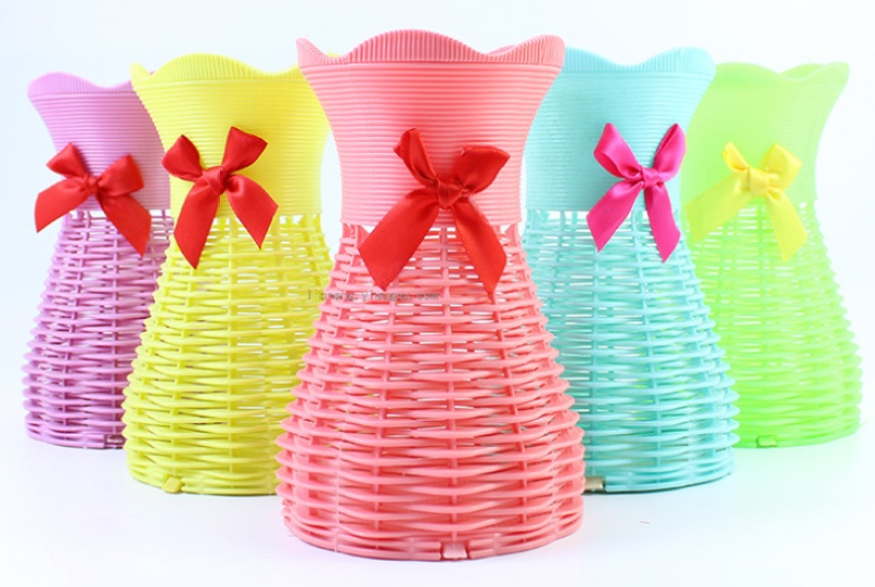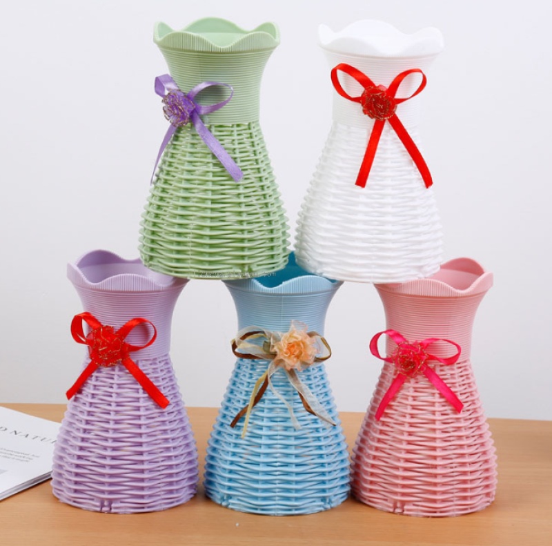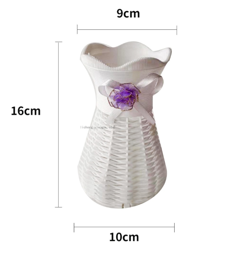 塑料花瓶 工艺品花器 白色仿藤编塑料花瓶