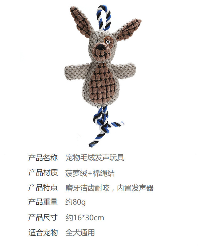 宠物玩具毛绒发声玩具磨牙耐咬棉绳玉米绒狗狗玩具益智耐咬狗玩具