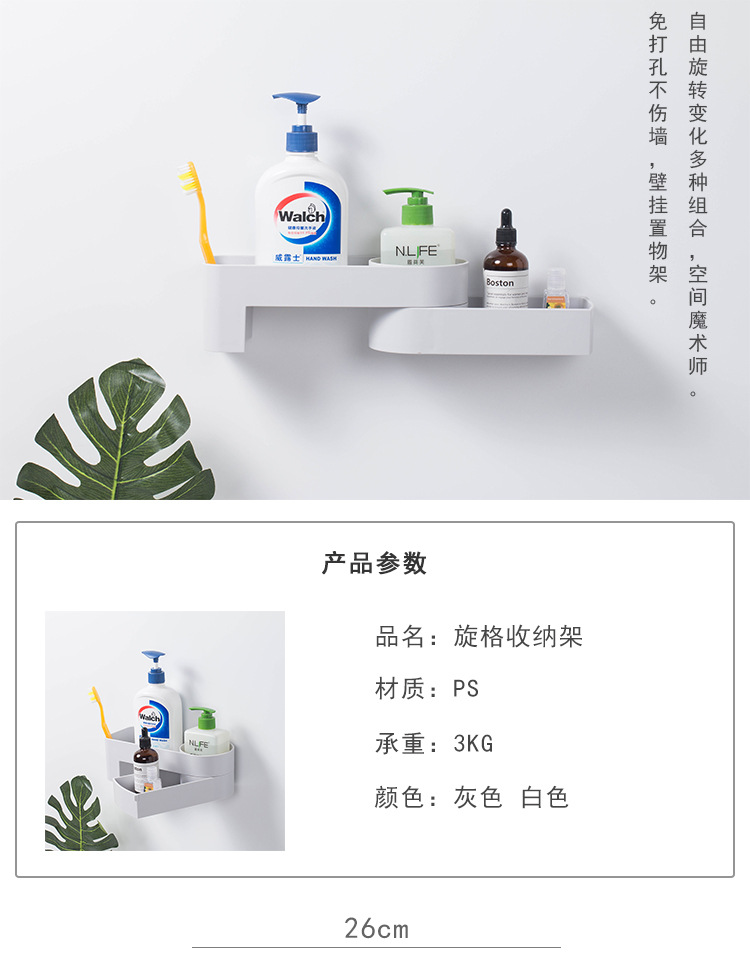 免打孔浴室旋转置物架 卫生间置物架 沐浴洗漱牙刷置物架收纳架