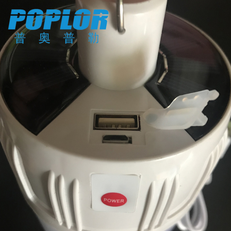 LED太阳能应急球泡 30W停电户外应急地摊灯3挡调节 可给手机充电
