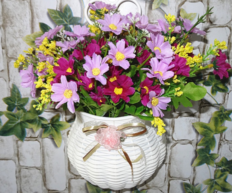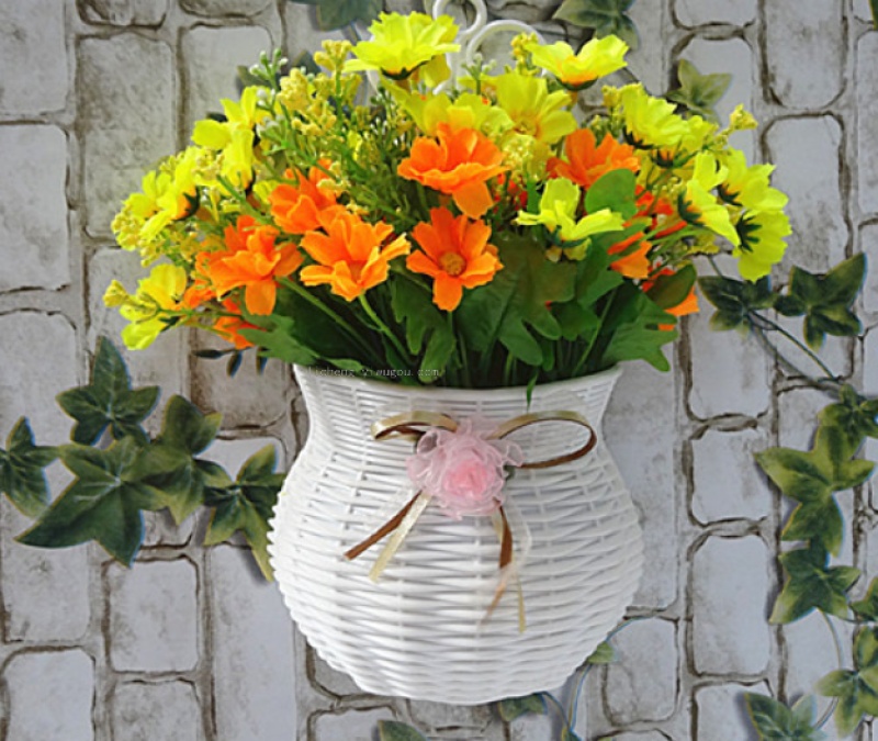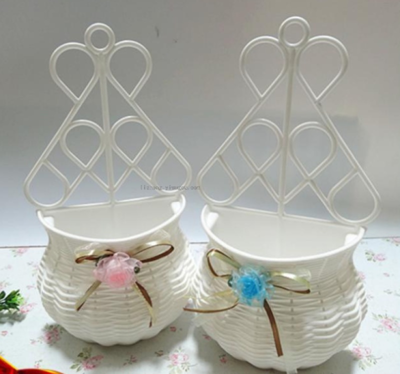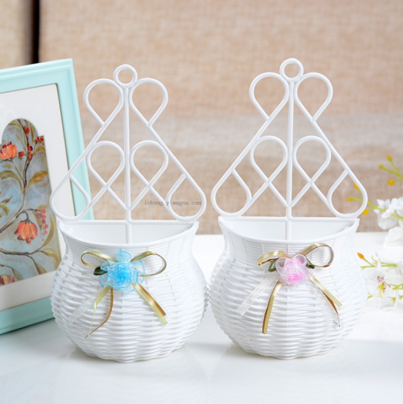壁挂花蓝塑料简约白色家居装饰仿真插花花器 墙挂花篓