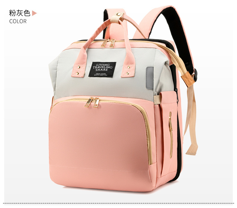外贸折叠可睡觉妈咪包母婴包妈妈包奶瓶双肩包尿布背包