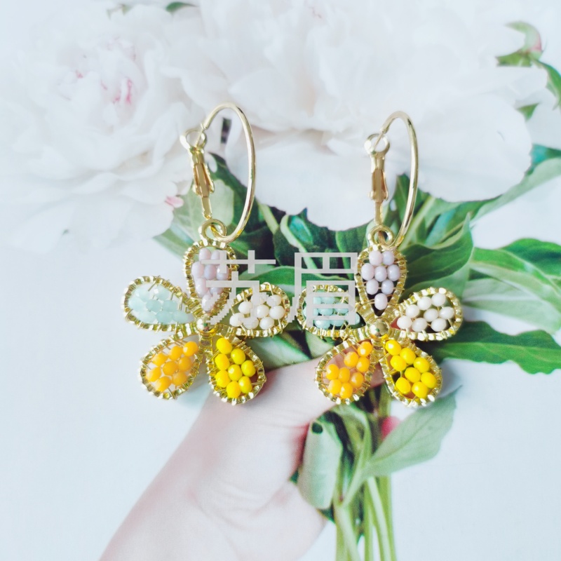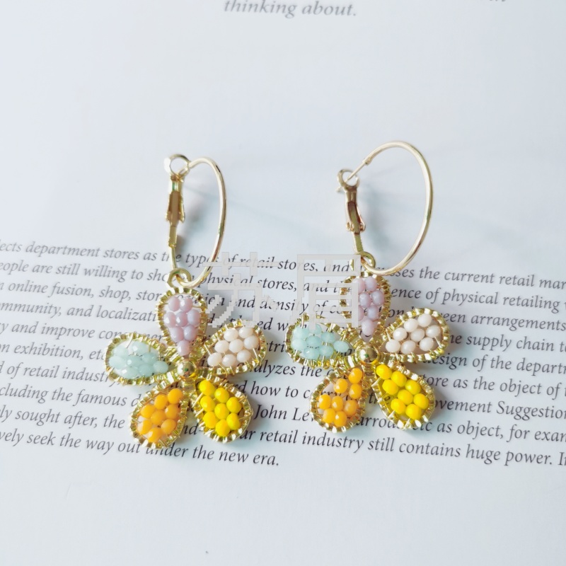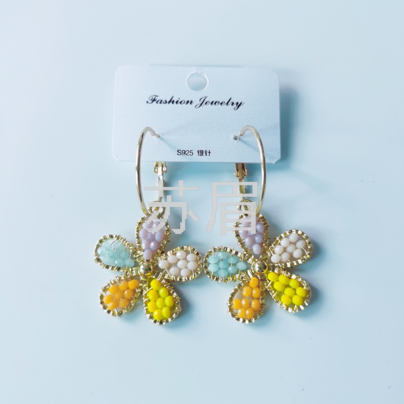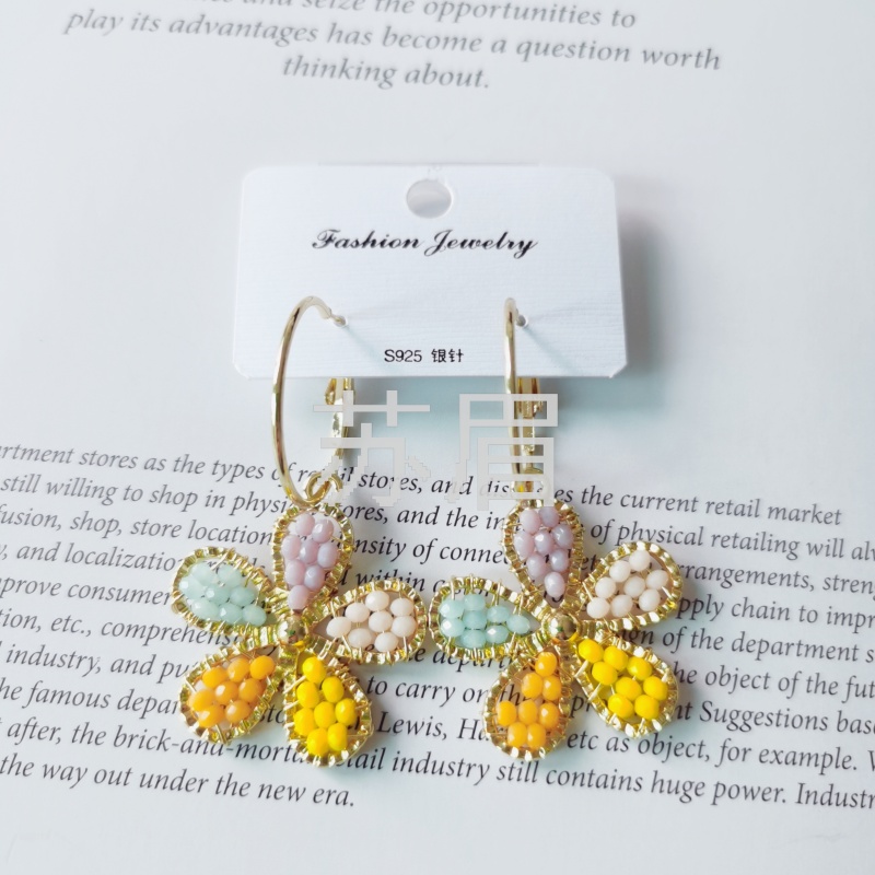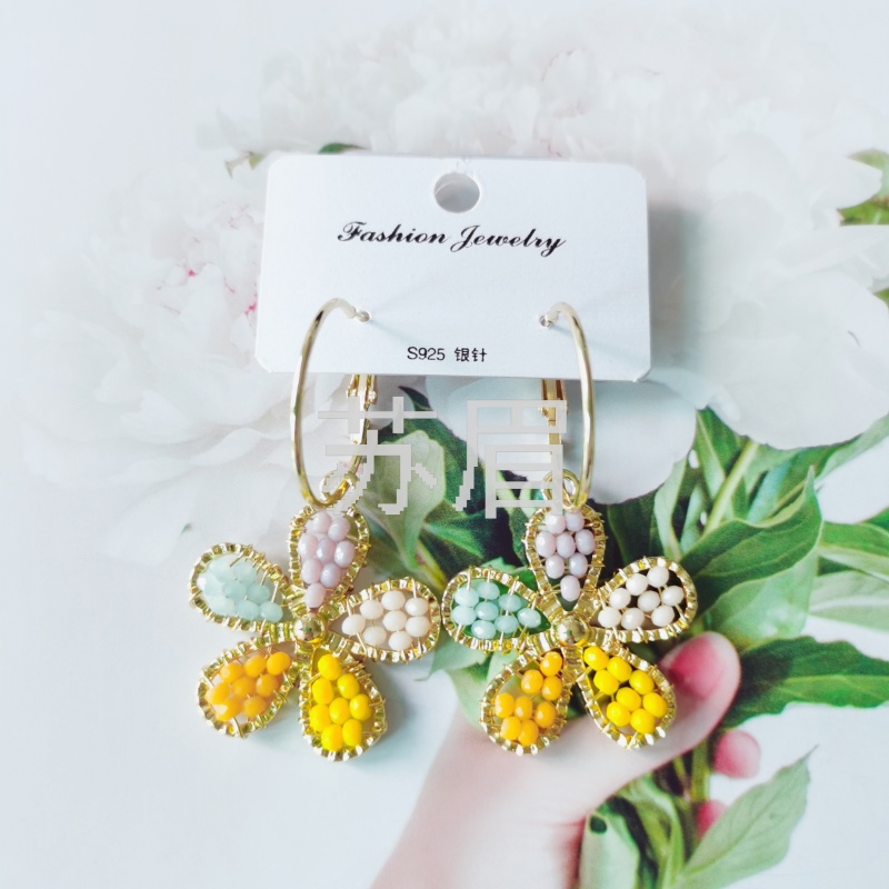 925银针新款韩国东大门彩色珠子耳圈 气质时尚青春感潮流时尚耳环