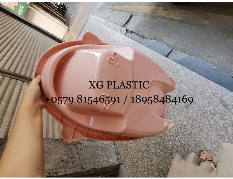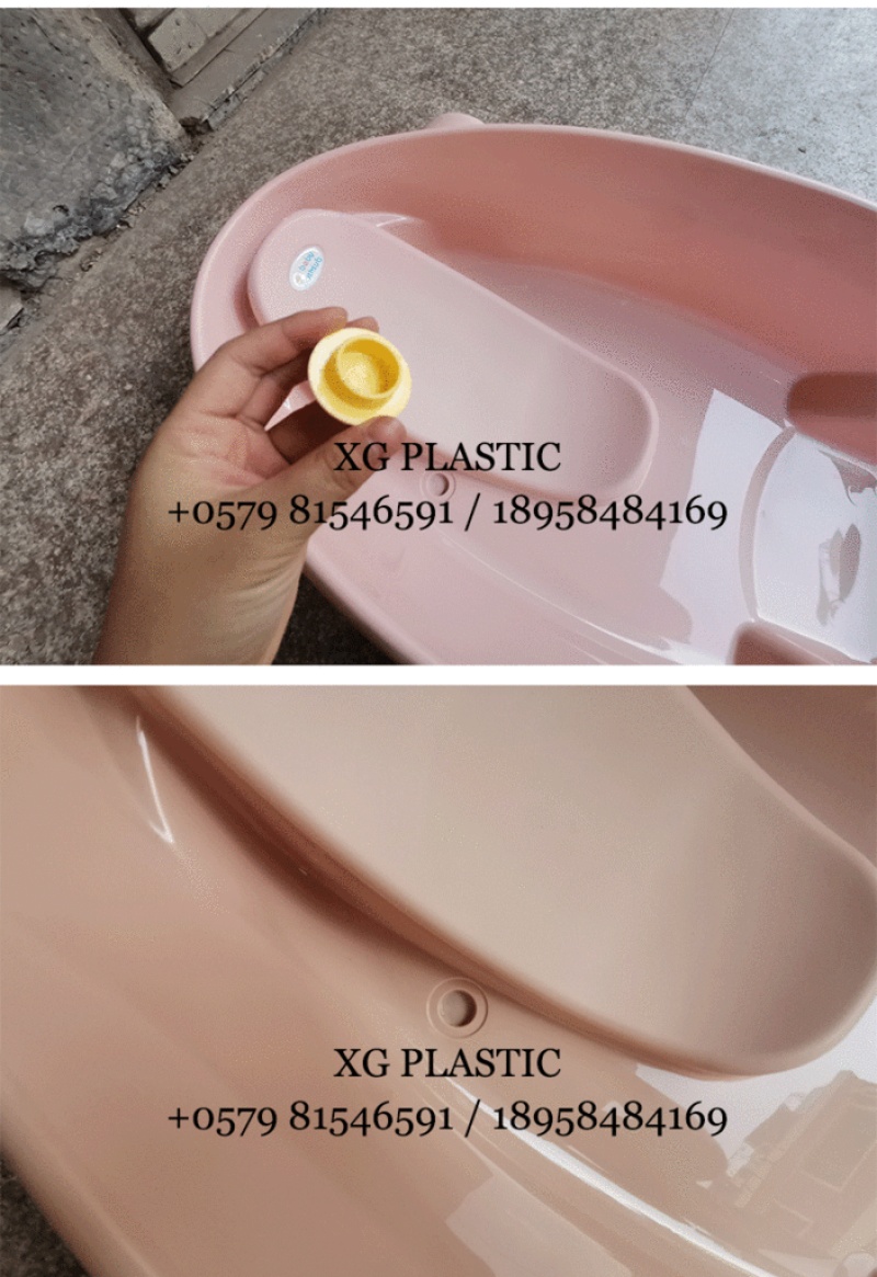 新款塑料婴幼儿浴盆带漏水孔耐用时尚篮粉白浴室宝宝澡盆儿童浴盆