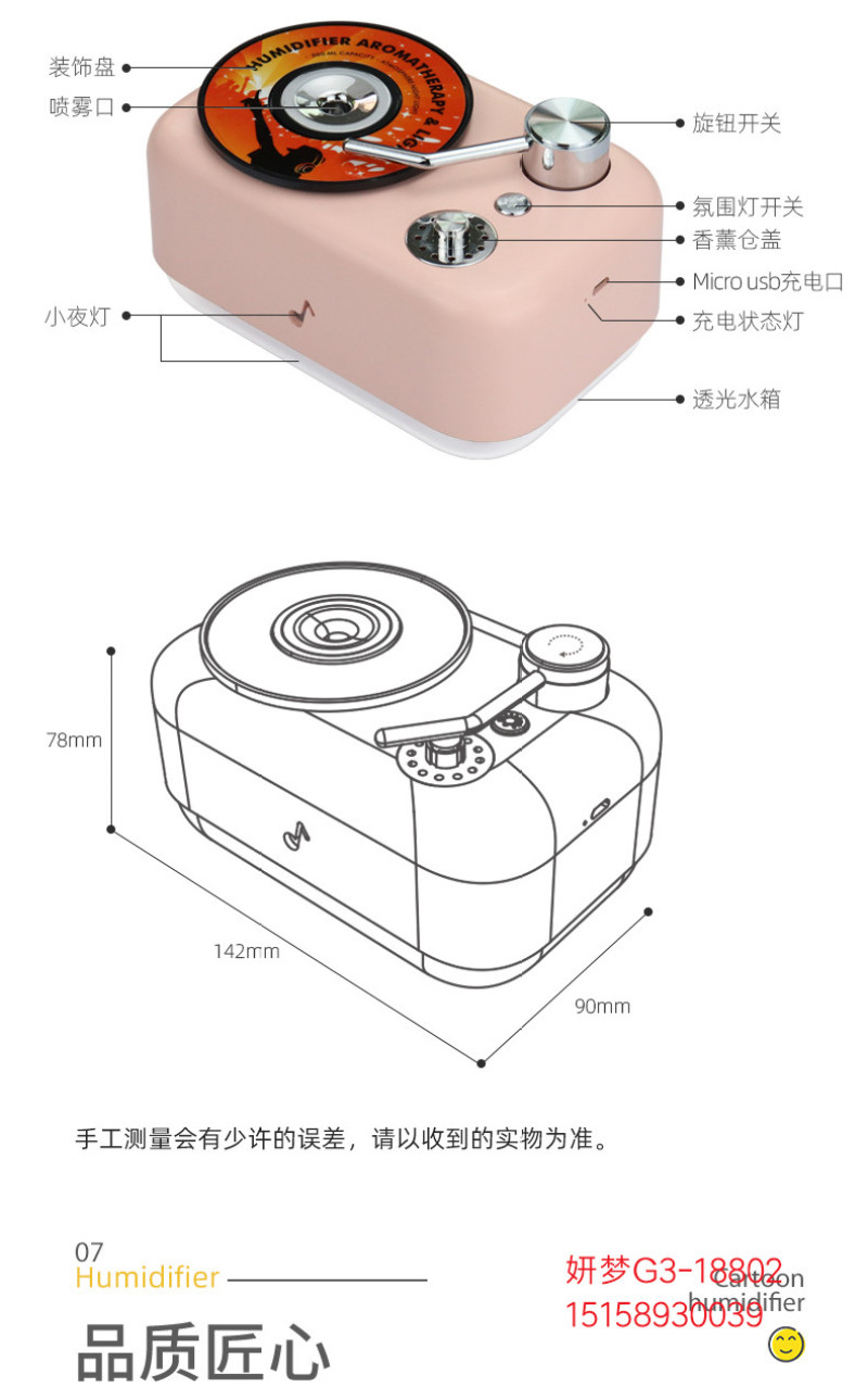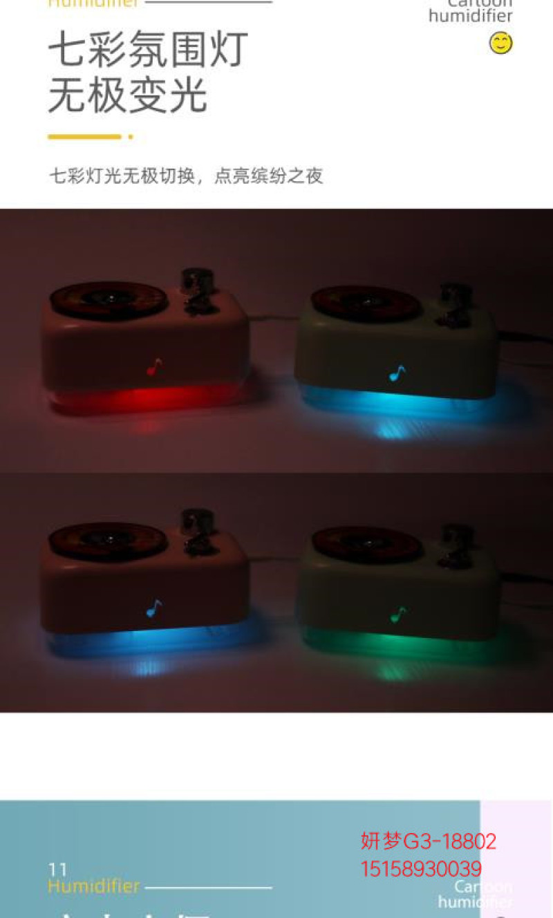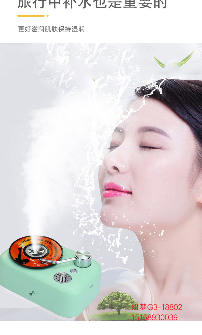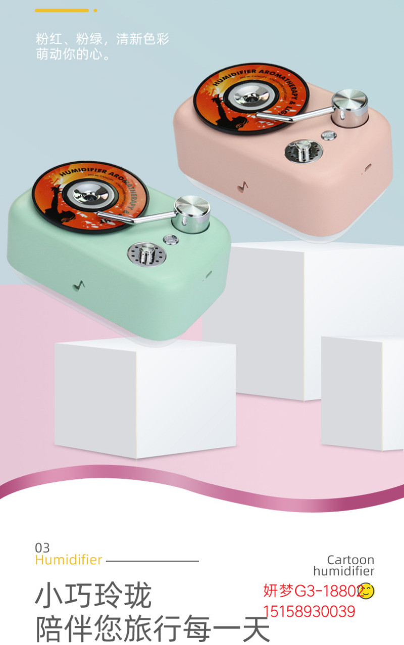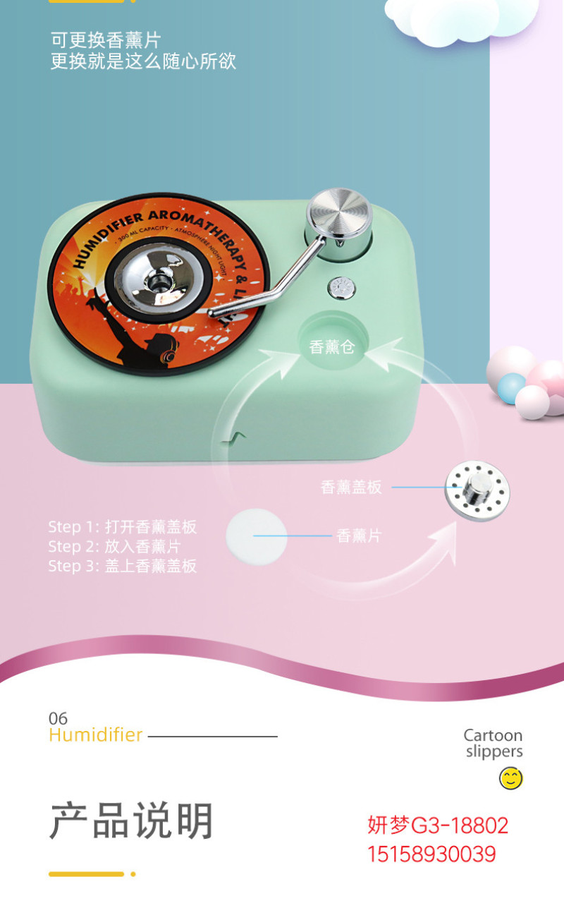 usb迷你加湿器香薰小夜灯喷雾器家用静音卧室空气净化唱片机造型