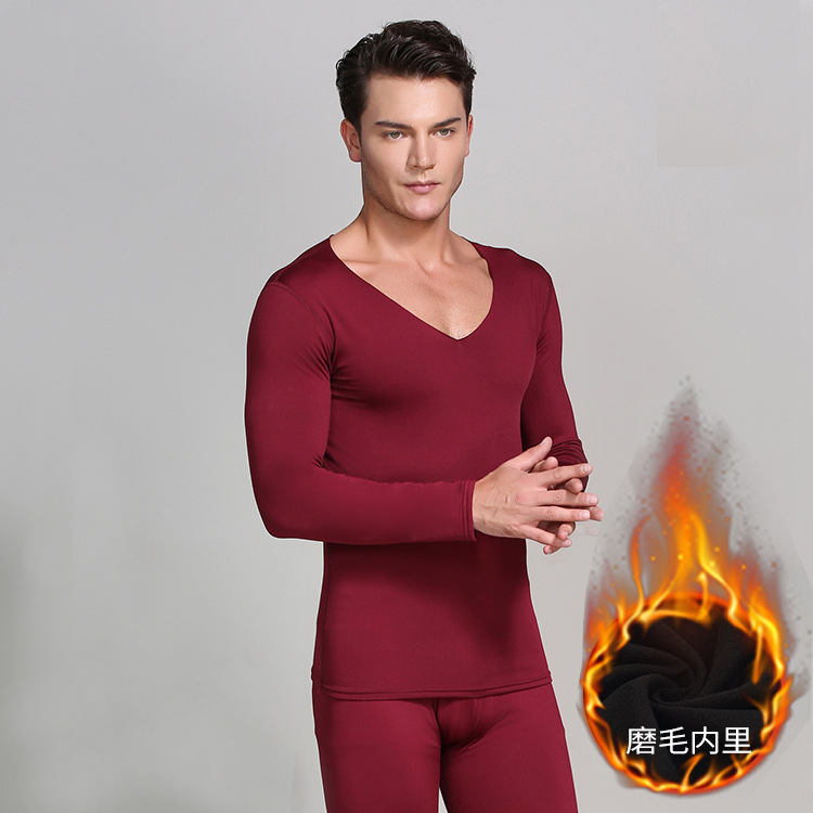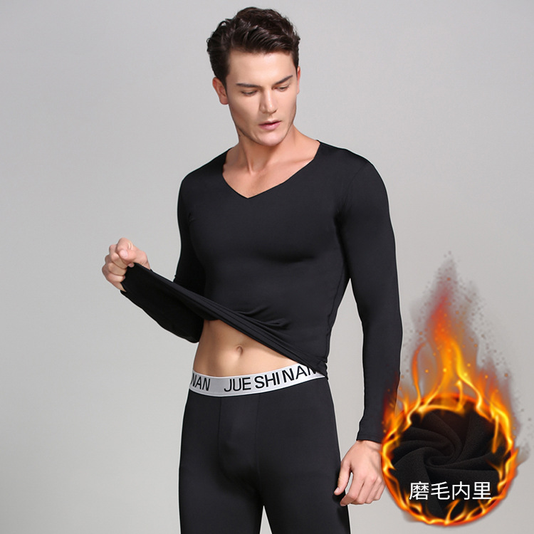 名字37度恒温自保暖内衣V领无痕男秋衣秋裤套装保暖衣打底秋冬衣