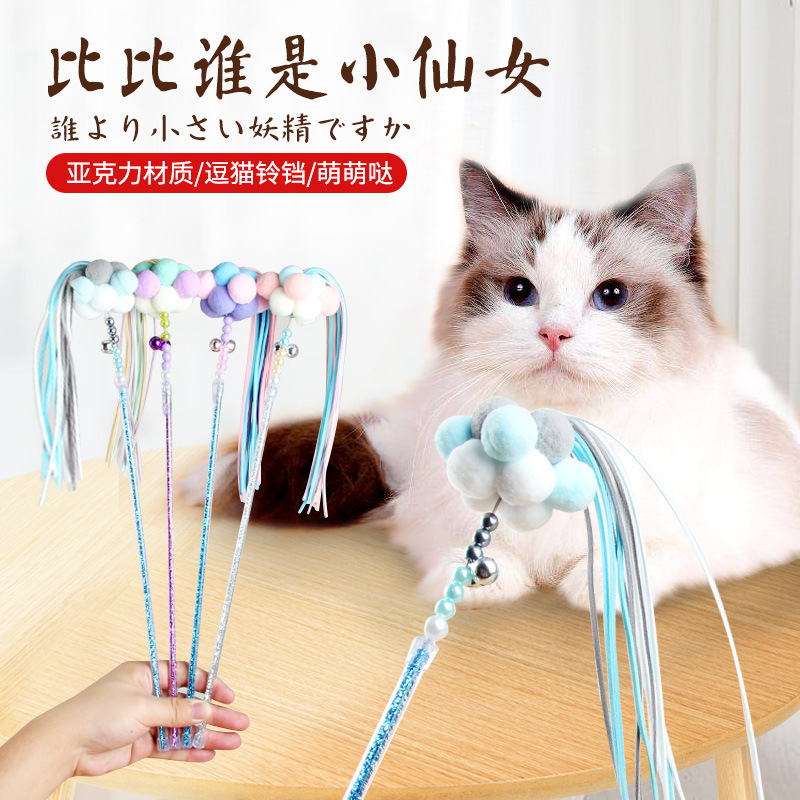厂家直销 猫咪毛球逗猫棒逗猫杆仙女棒毛绒小球新款小猫玩具批发