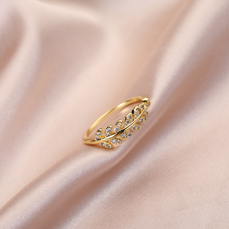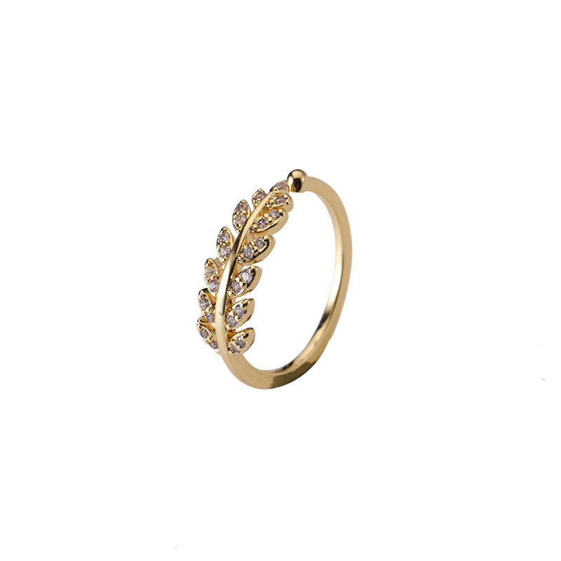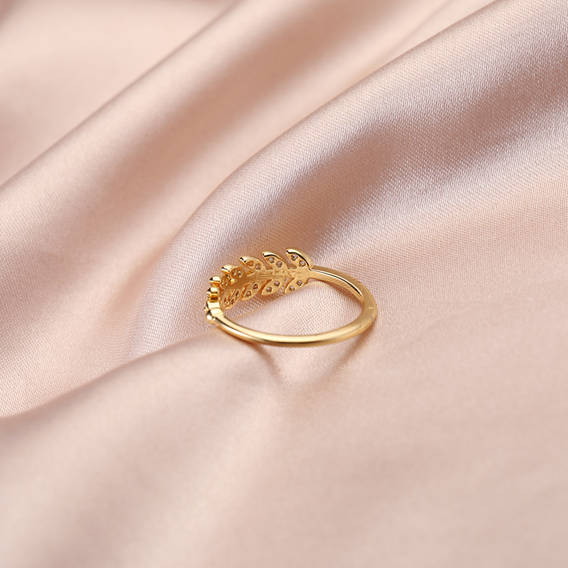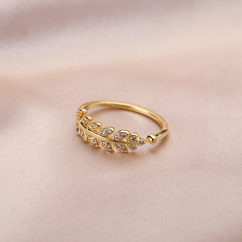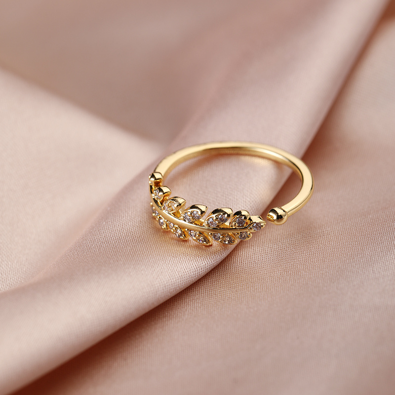允诺创意款时尚镶钻小清新树叶戒指女日韩叶子小女生开口指环批发