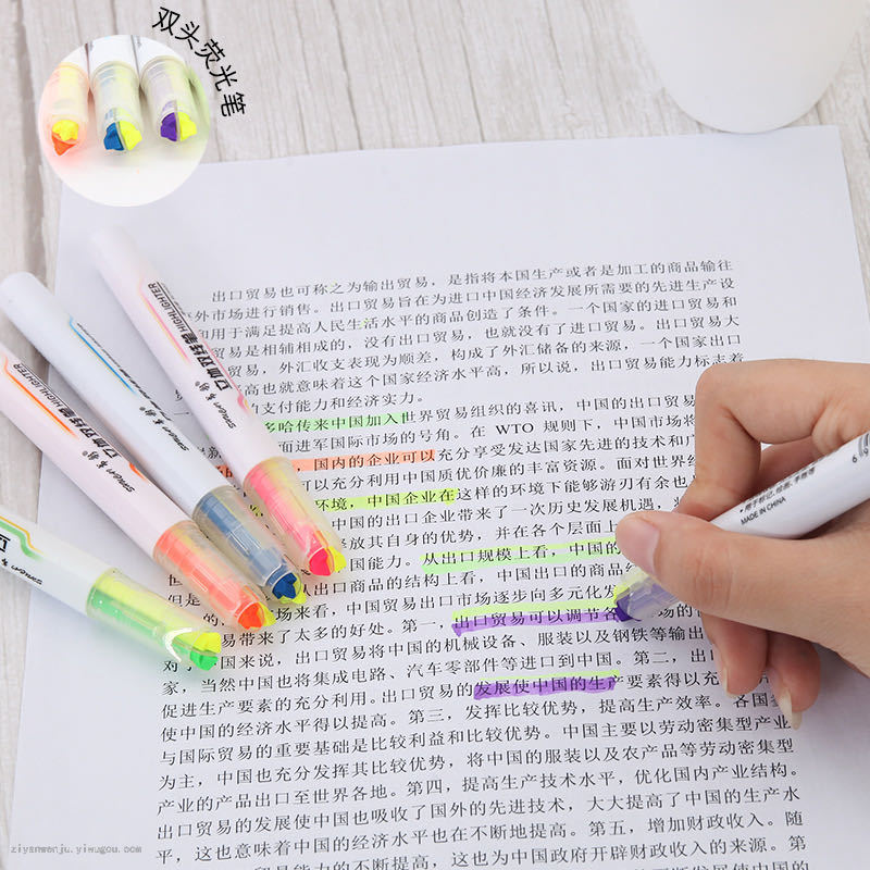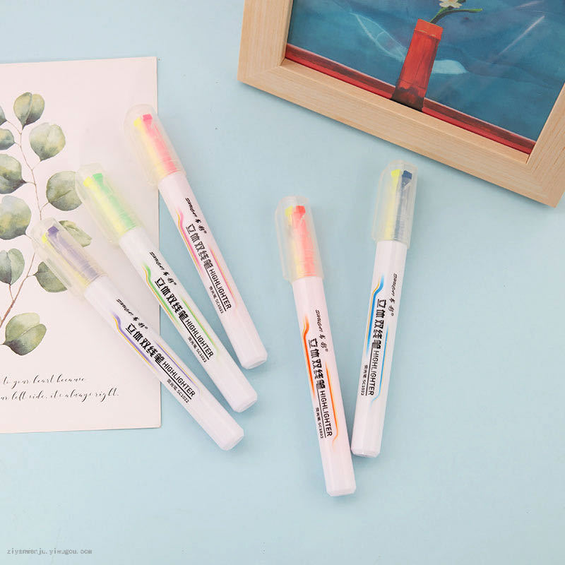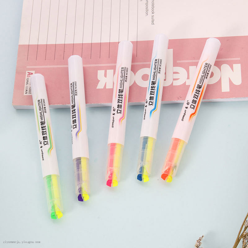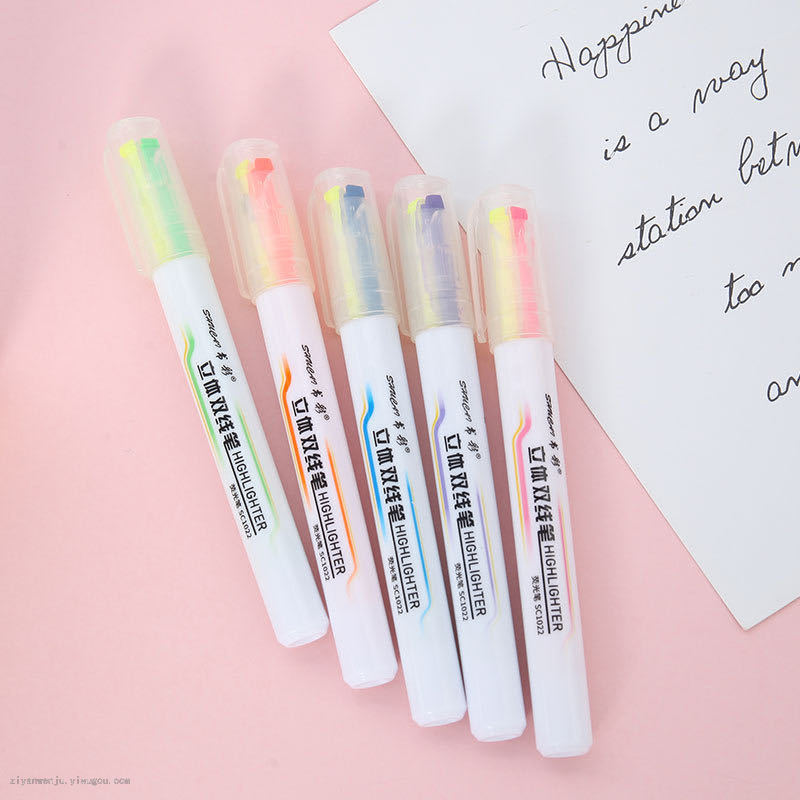 5支装双头双线双色创意韩国荧光笔套装学生标记绘画荧光笔