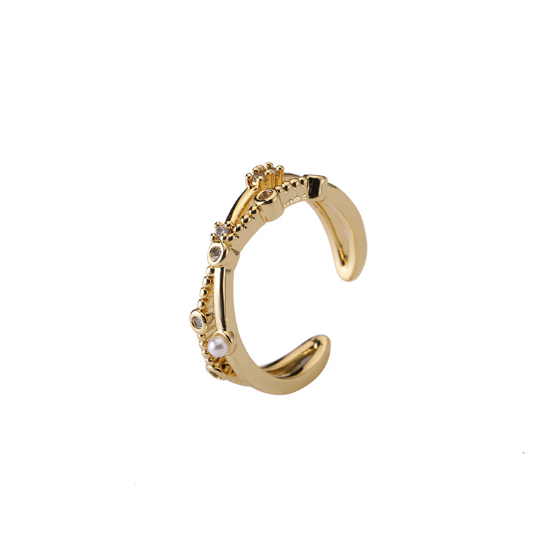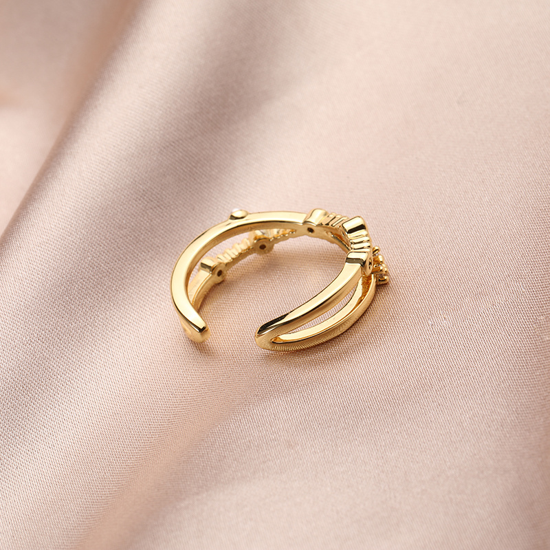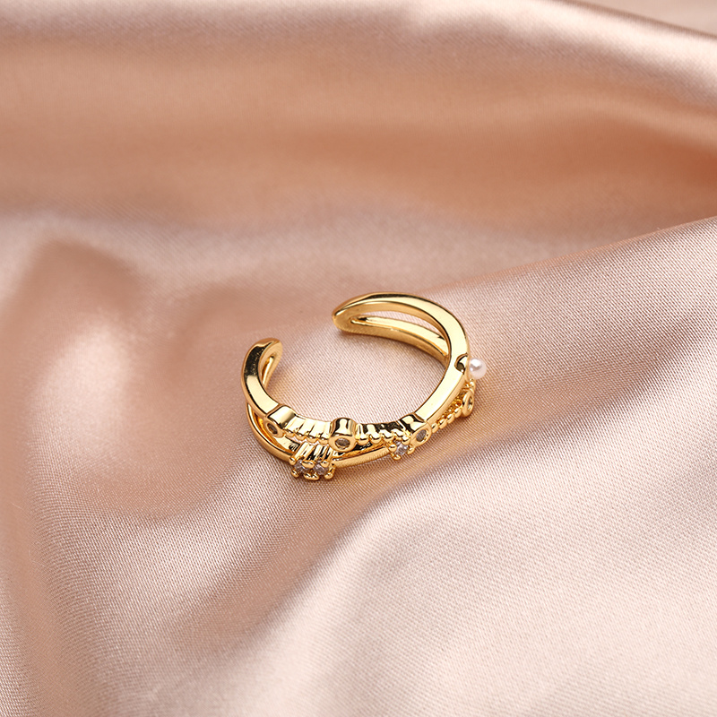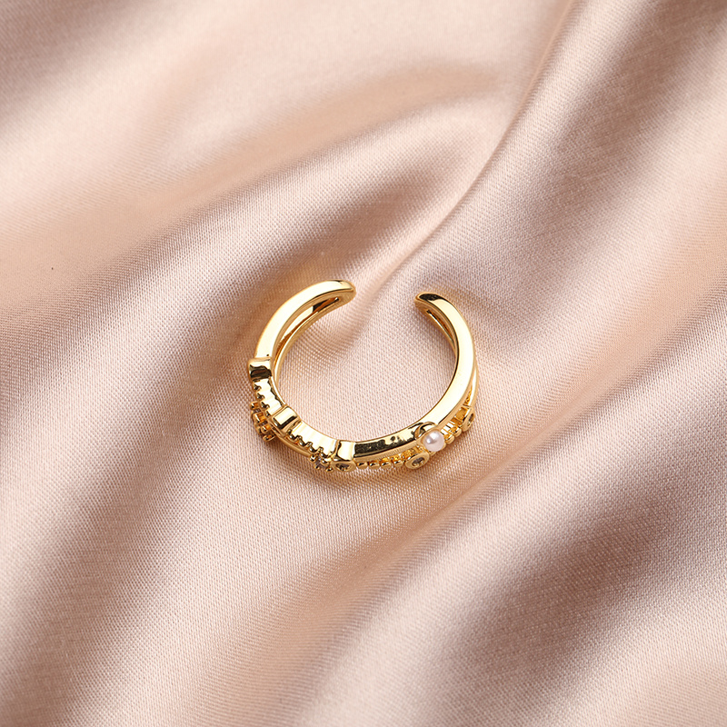 欧美几何型开口调节戒指跨境个性镂空珍珠简约镶钻食指戒首饰批发