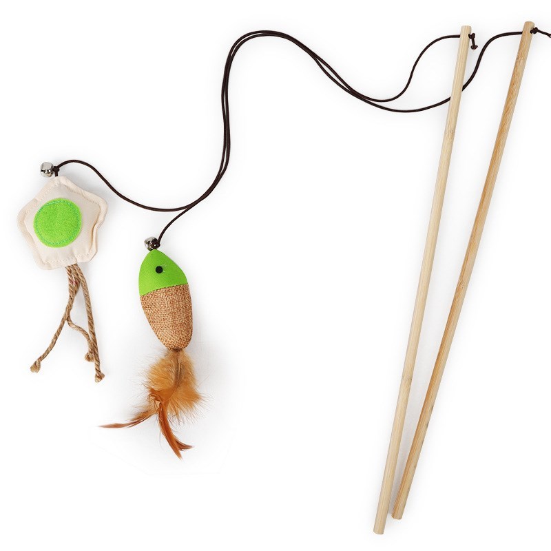 猫玩具猫咪益智逗猫棒铃铛麻布小鱼五角星成幼猫咪竹杆弹力绳玩具
