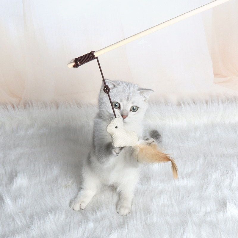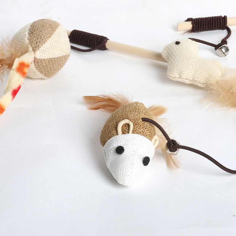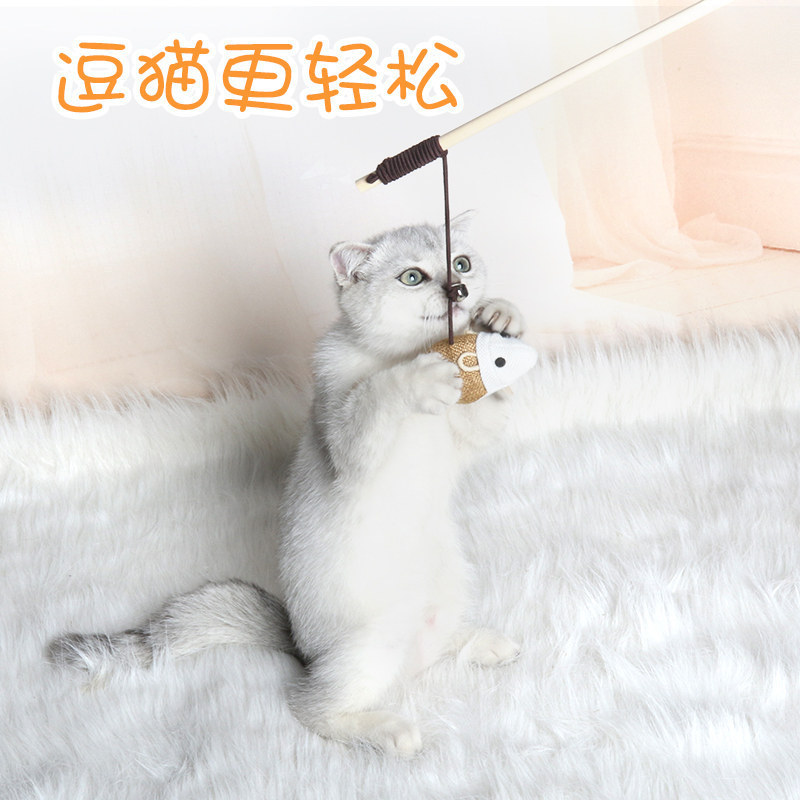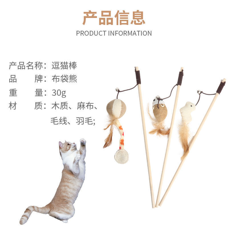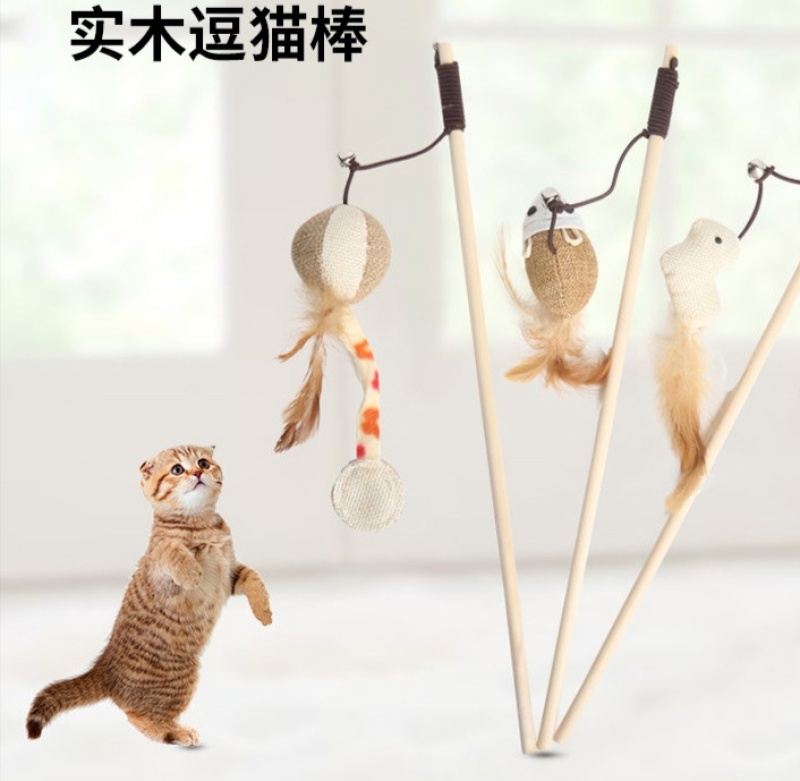 实木逗猫棒弹力绳铃铛麻布诱饵逗猫猫玩具