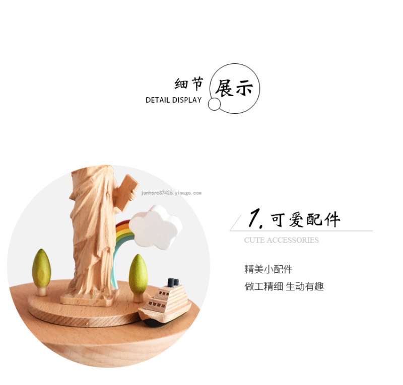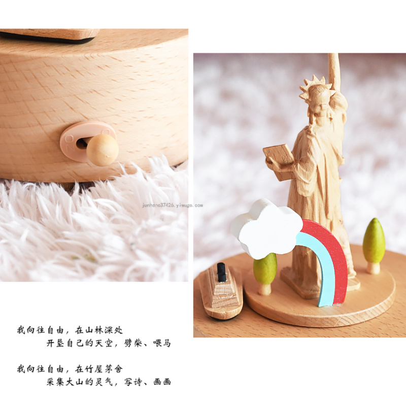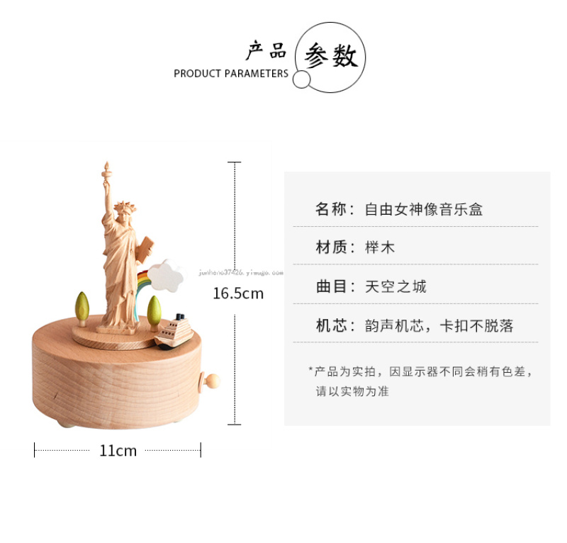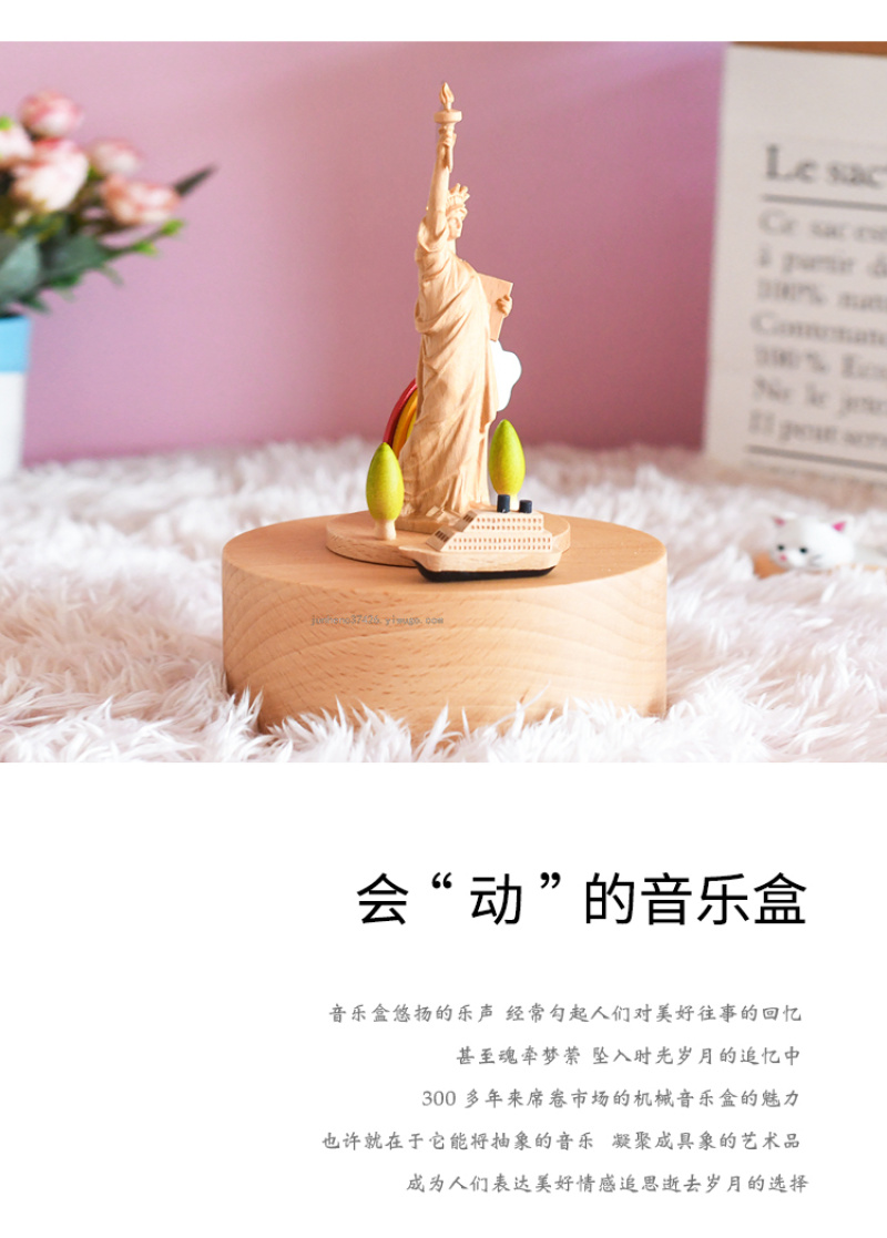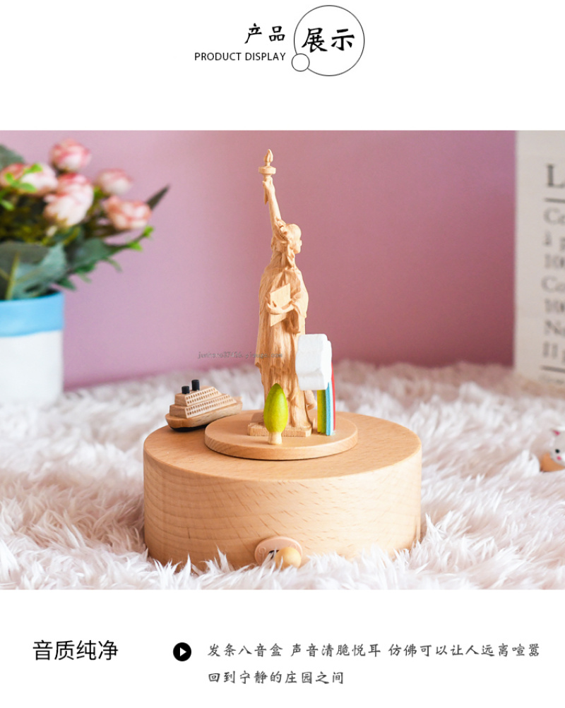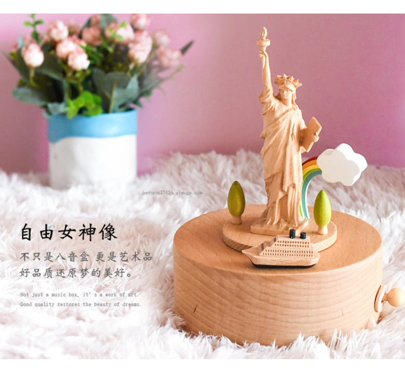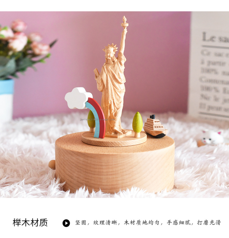 俊恒工艺美式自由女神像音乐盒木质3D立体创意圣诞礼品家居摆件