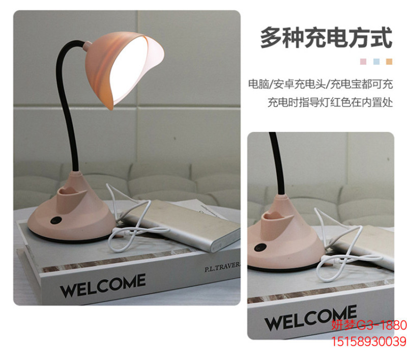 男生女生学习台灯LED护眼可充电USB书桌写字小台灯卧室小夜灯笔筒