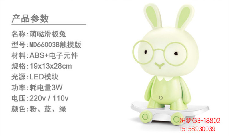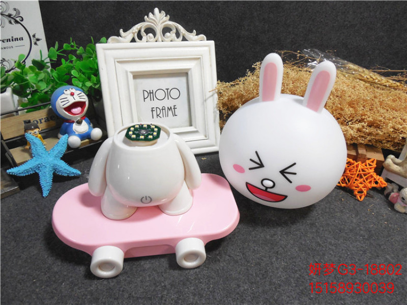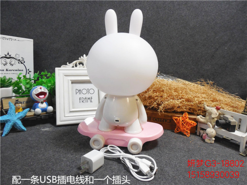 迷你可爱插电卡通兔子小夜灯可调光卧室床头台灯少女心创意氛围灯