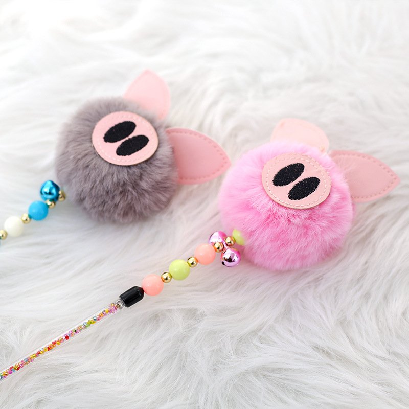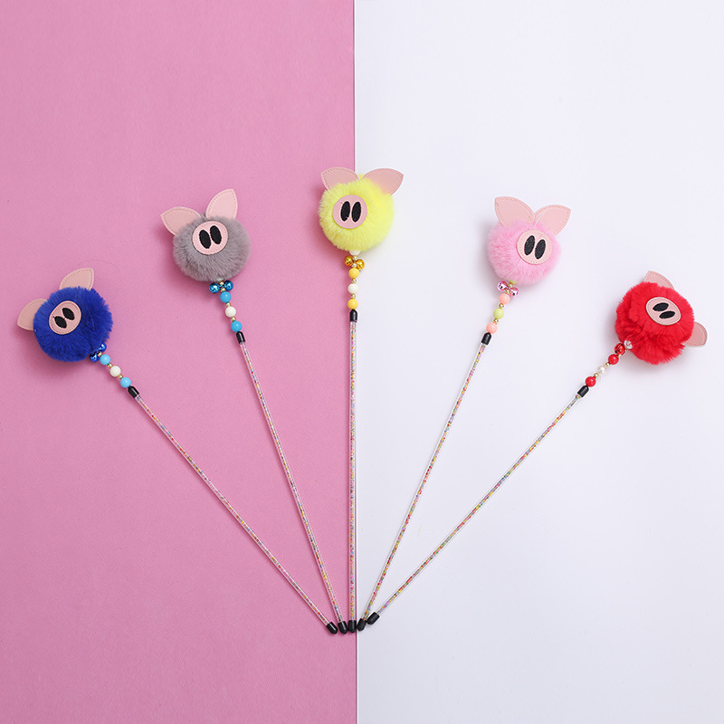 小猪逗猫棒新款亚克力管珍珠3D卡通逗猫杆厂家直销宠物用品猫玩具