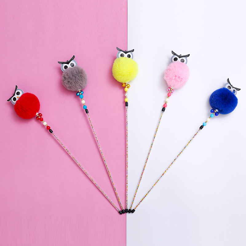 猫头鹰逗猫棒新款亚克力管珍珠3D卡通逗猫杆厂家直销宠物用品