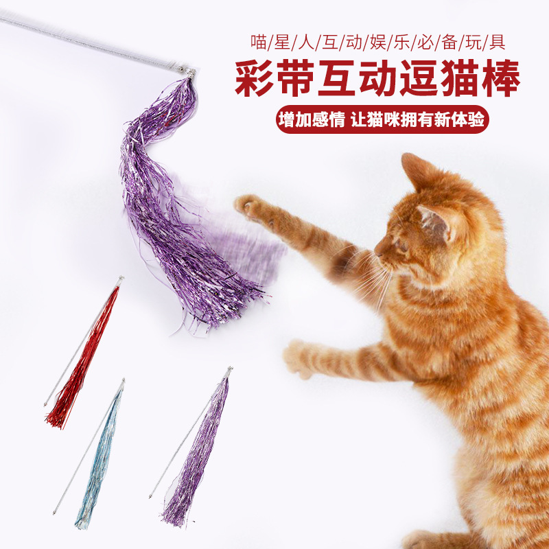 宠物猫咪玩具新款彩带仙女棒彩色穗穗响纸逗猫棒跨境工厂现货批发