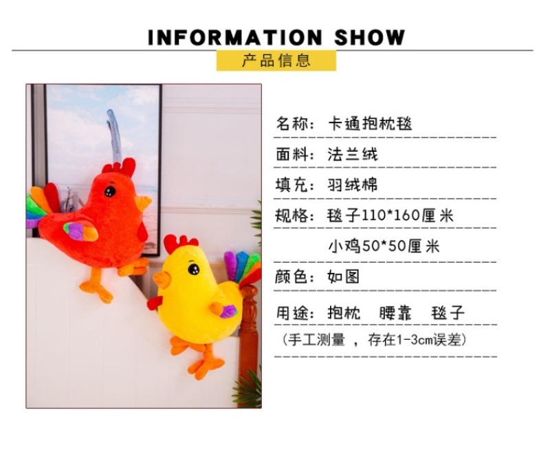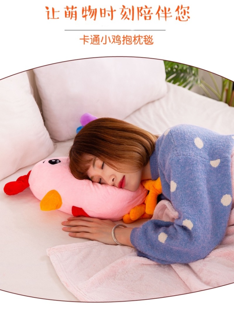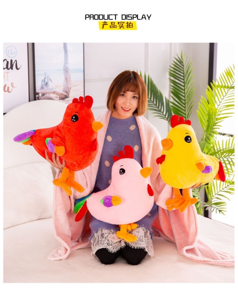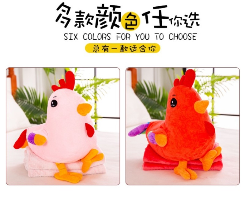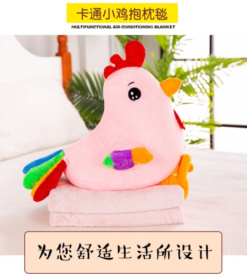 新款五彩鸡毛绒玩具抱枕毯空调毯汽车沙发靠垫儿童午睡空调被