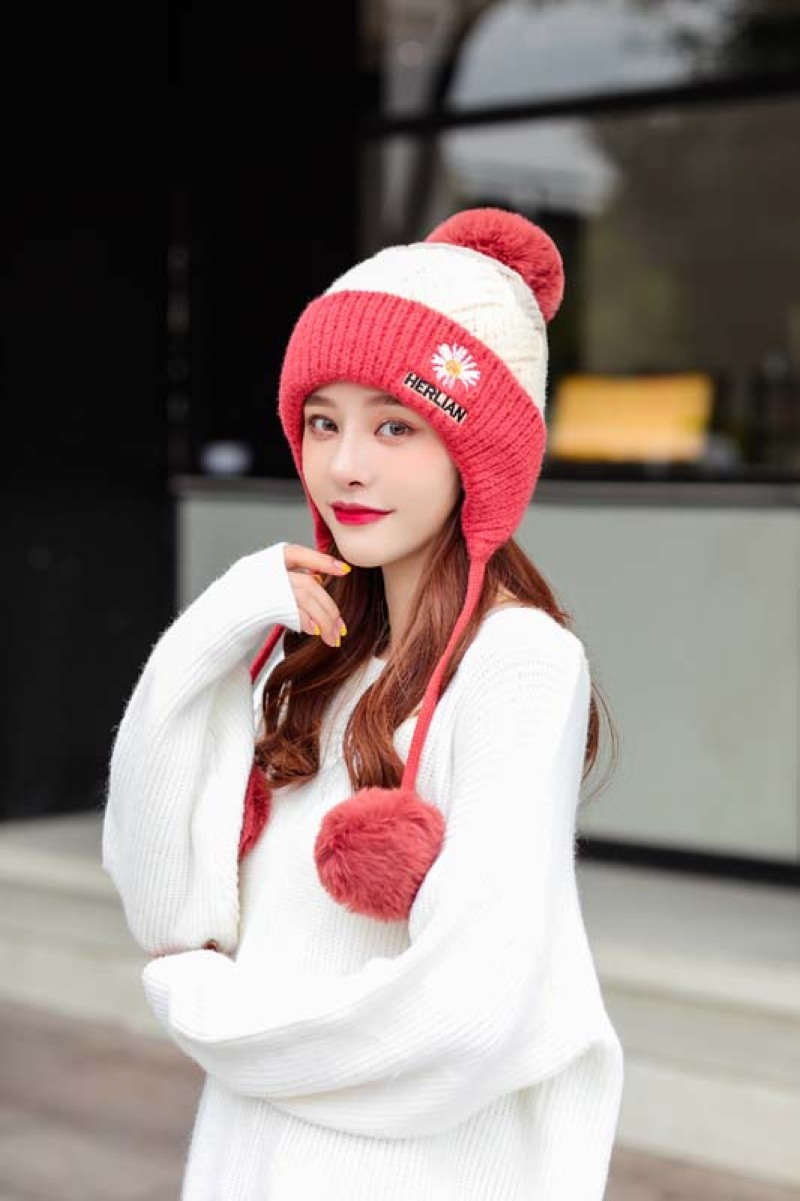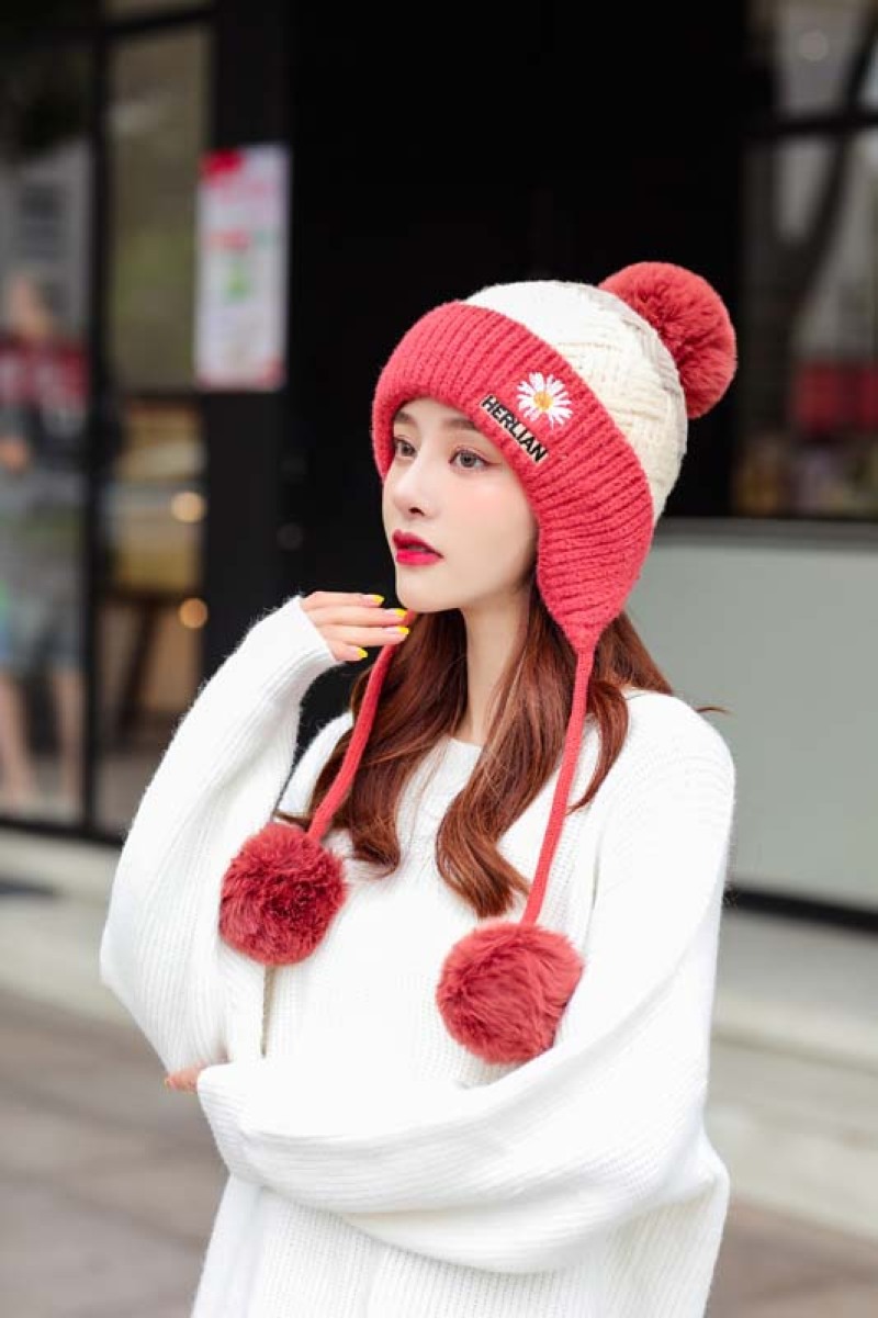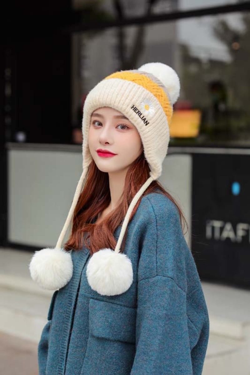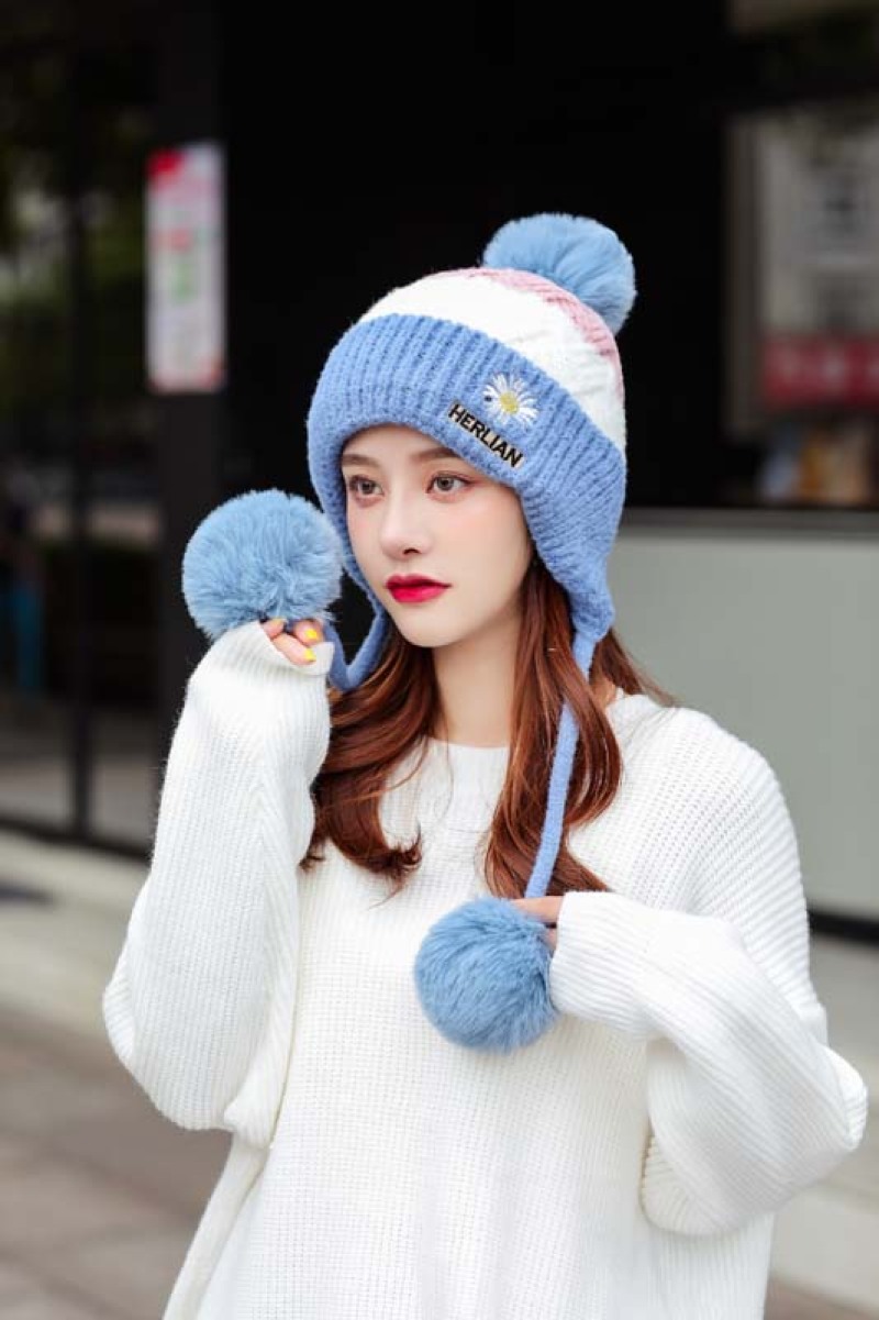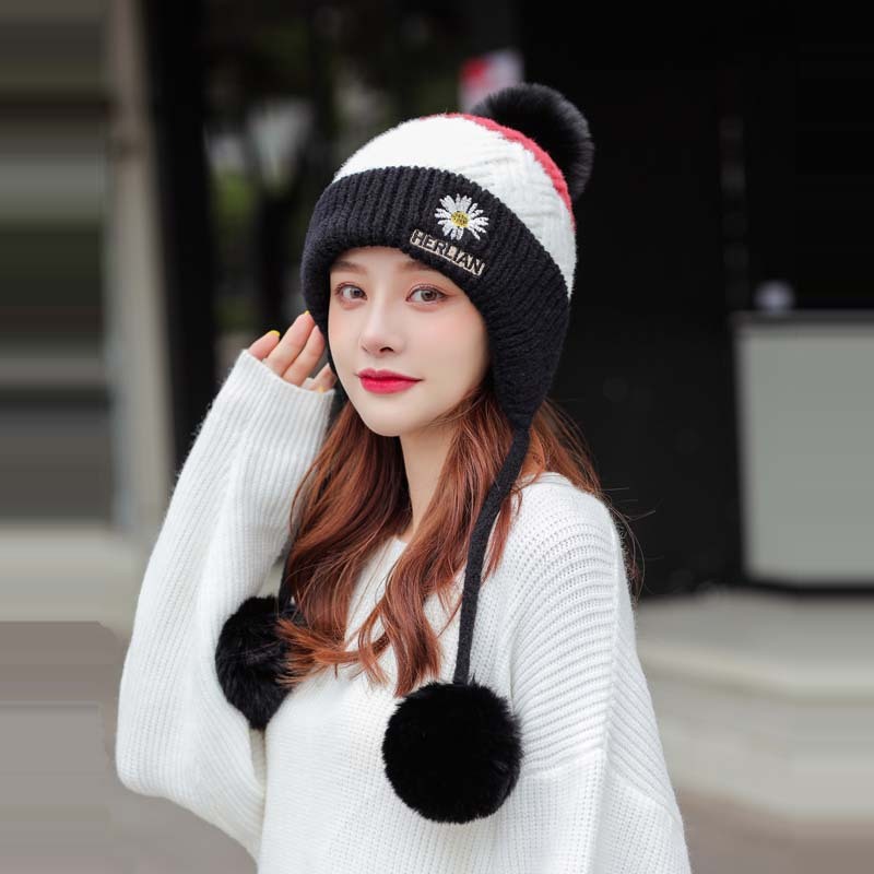 帽子女秋冬天韩版潮耳三毛球围脖加绒保暖帽防风骑车毛线帽