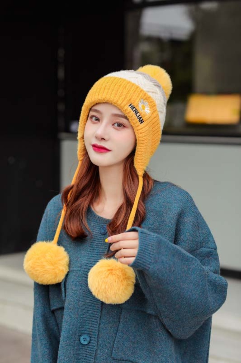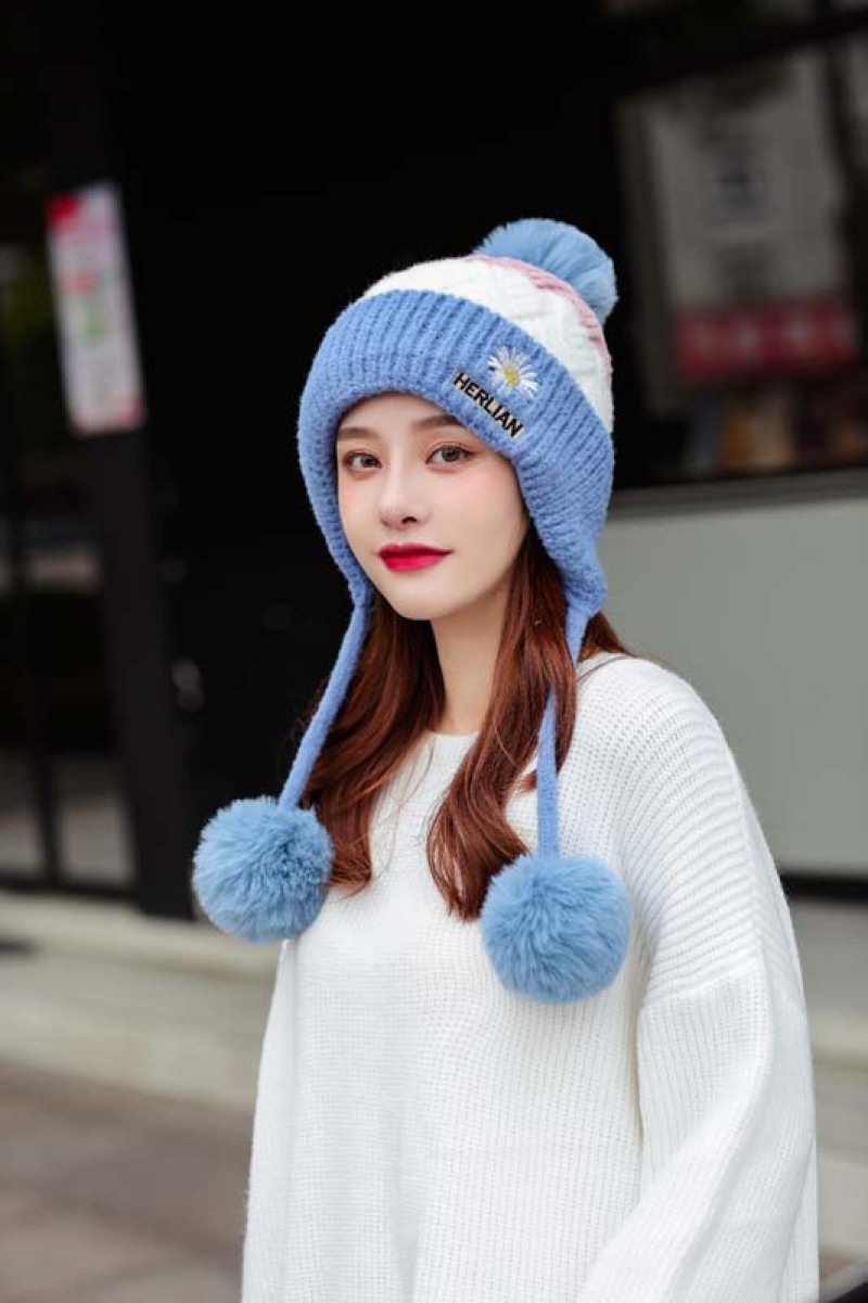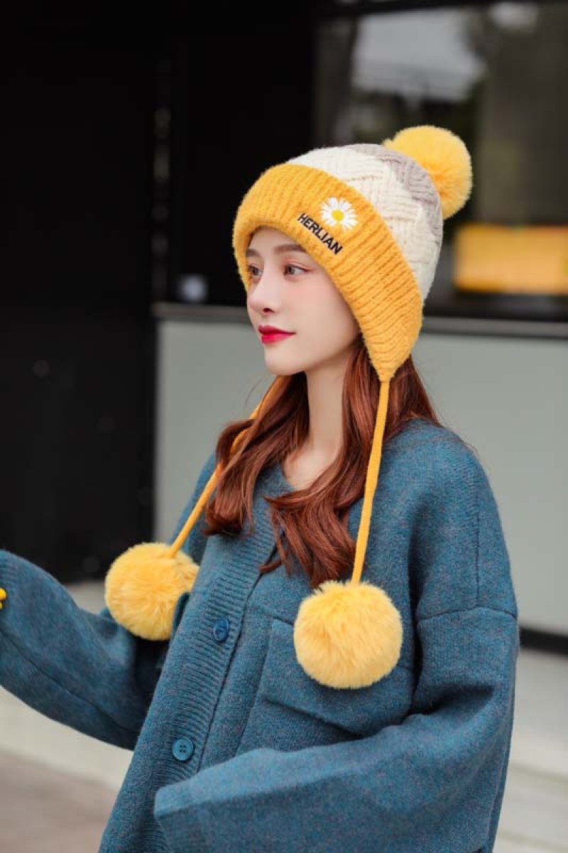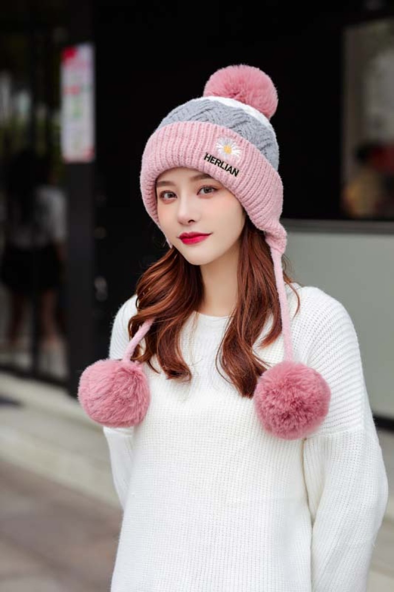 帽子女秋冬天韩版潮耳三毛球围脖加绒保暖帽防风骑车毛线帽