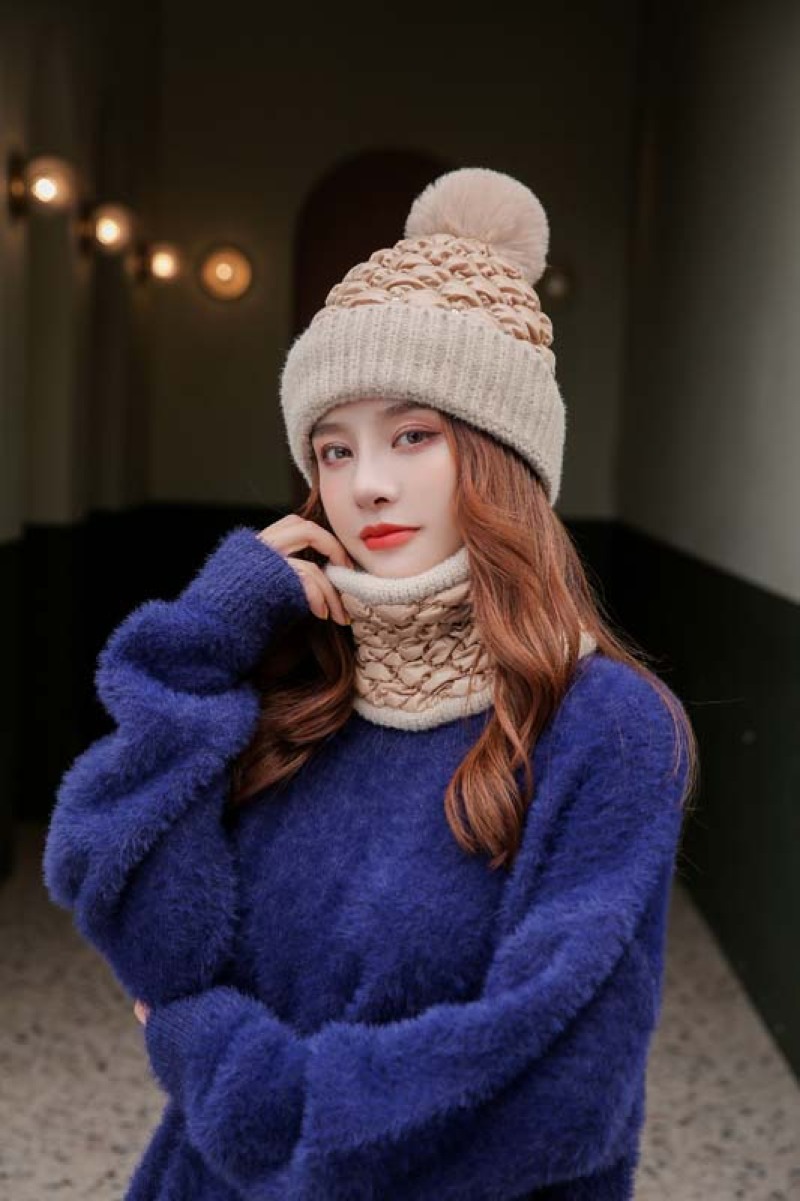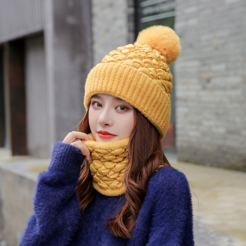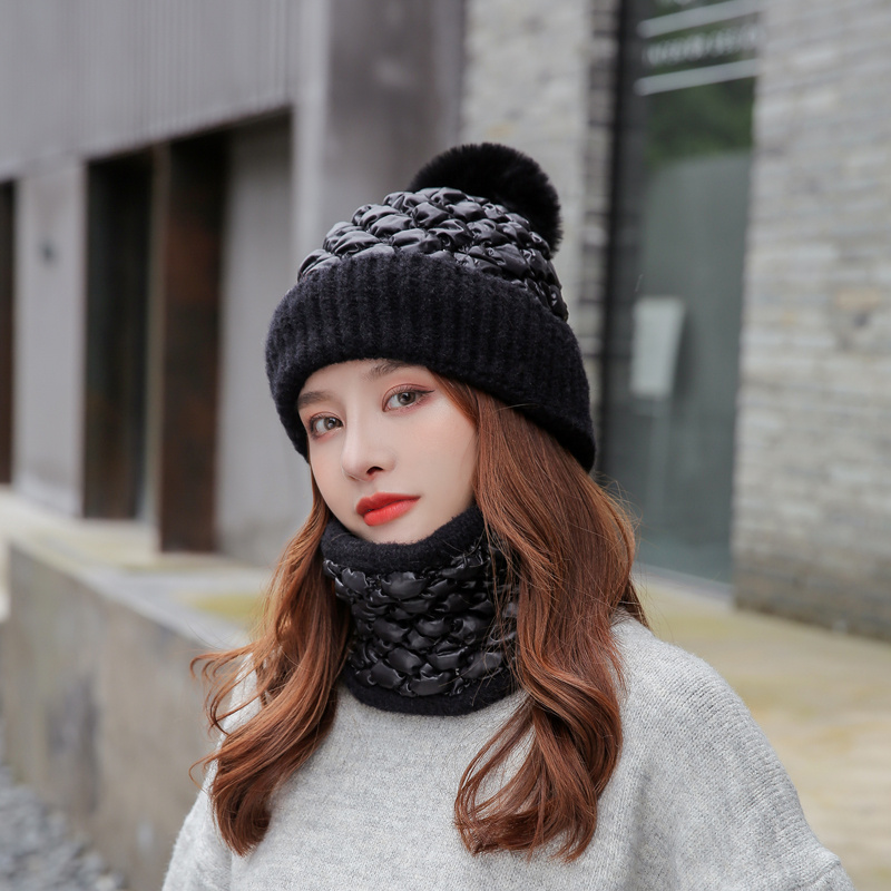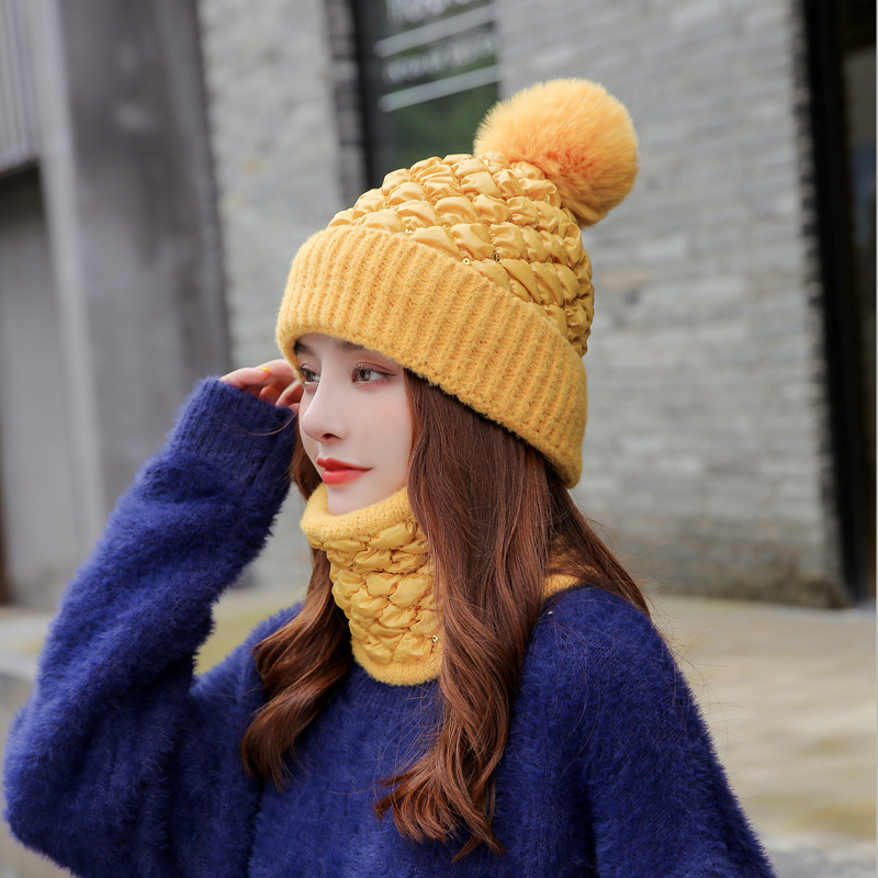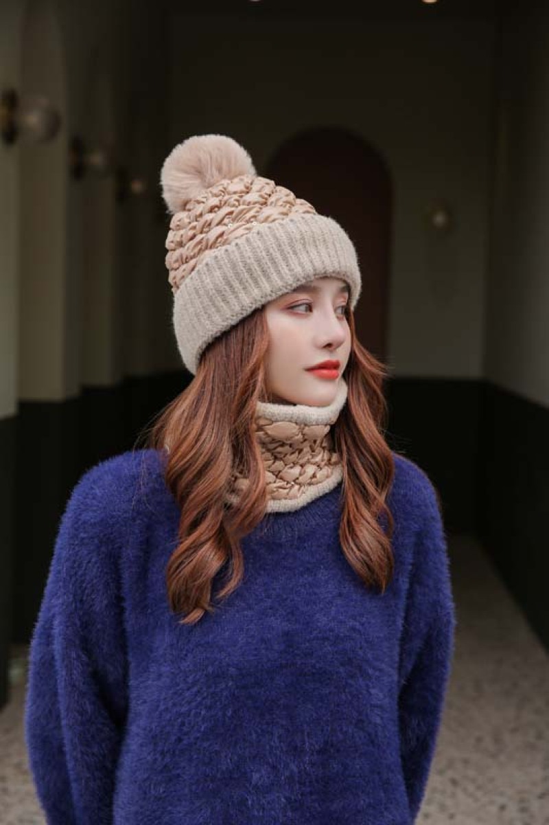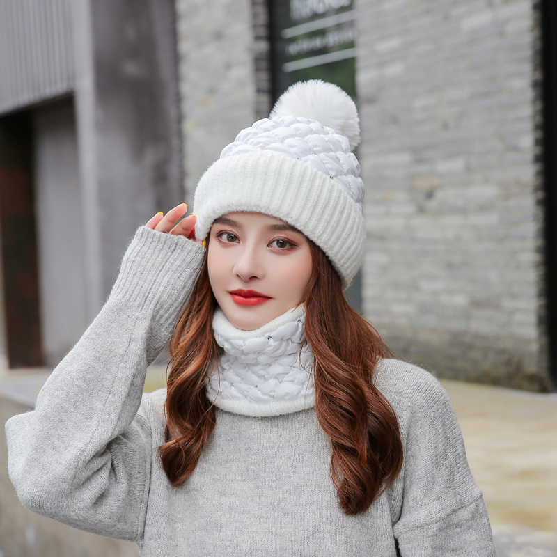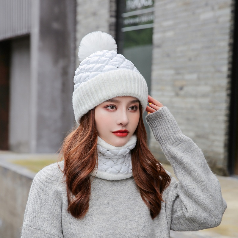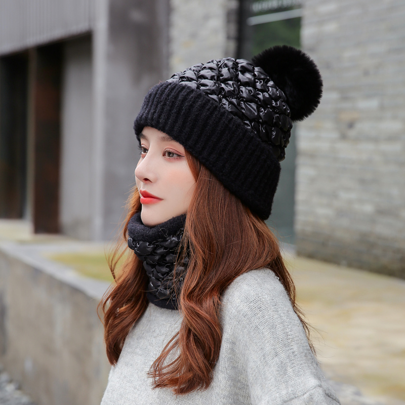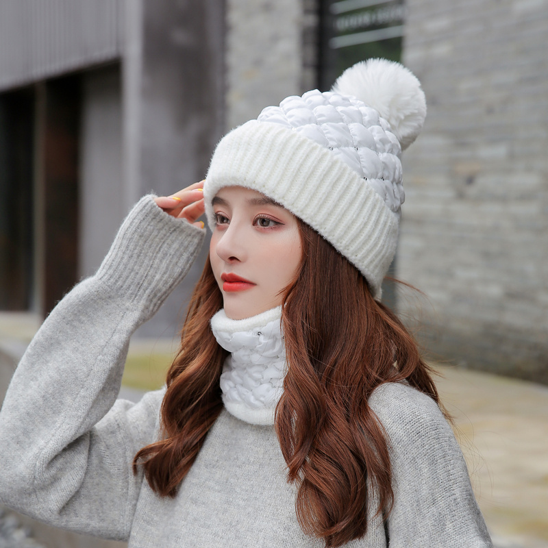 帽子女秋冬羽绒棉帽户外骑行加绒加厚韩版保暖帽围脖套装防寒护耳