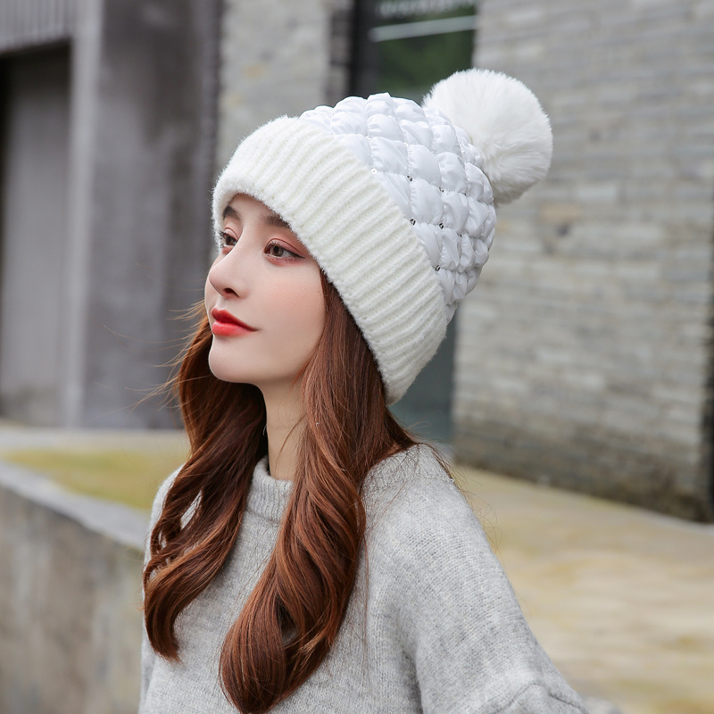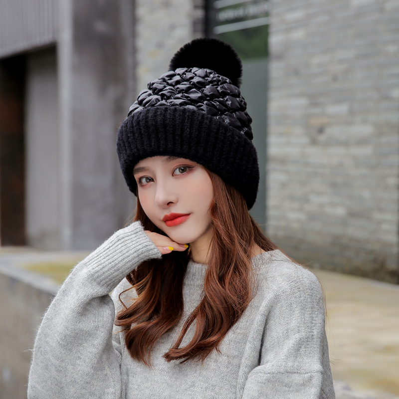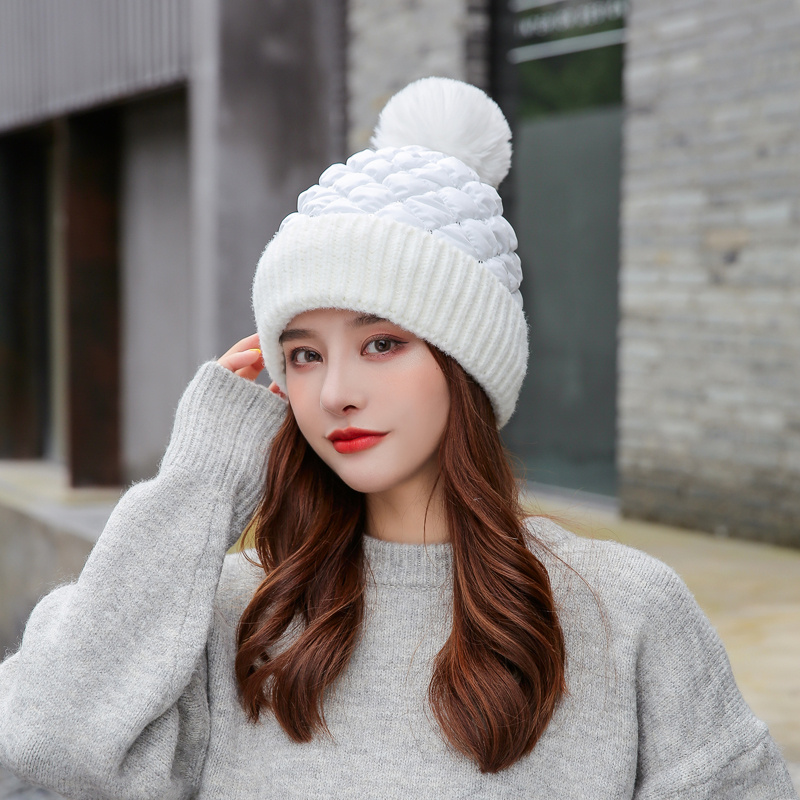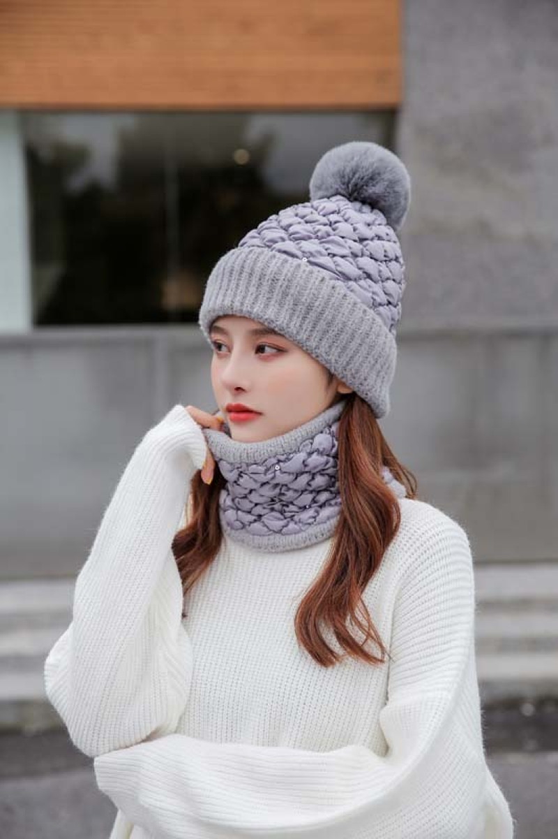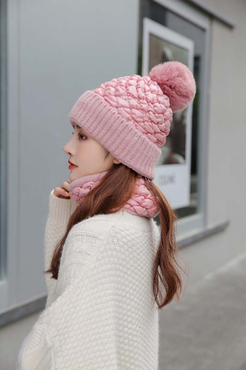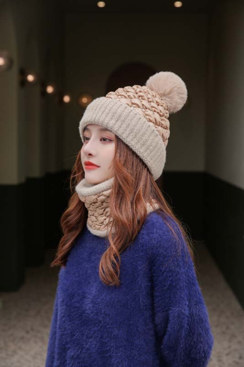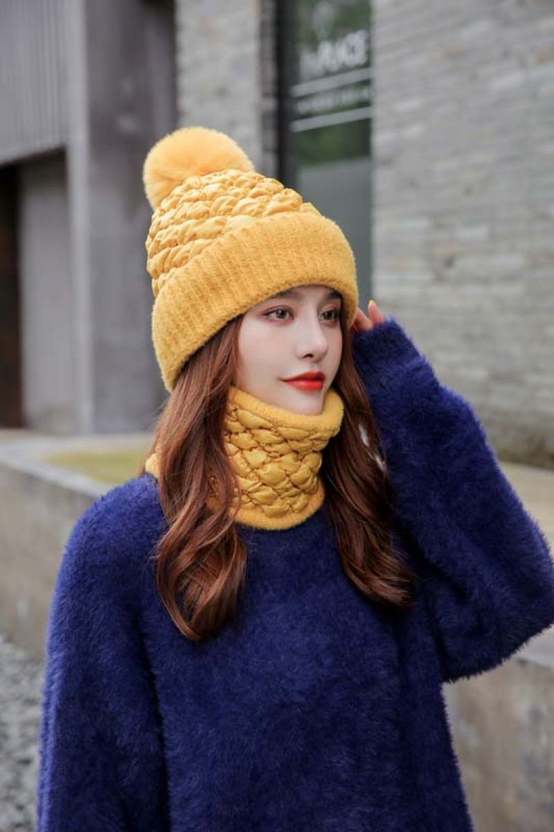 帽子女秋冬羽绒棉帽户外骑行加绒加厚韩版保暖帽围脖套装防寒护耳